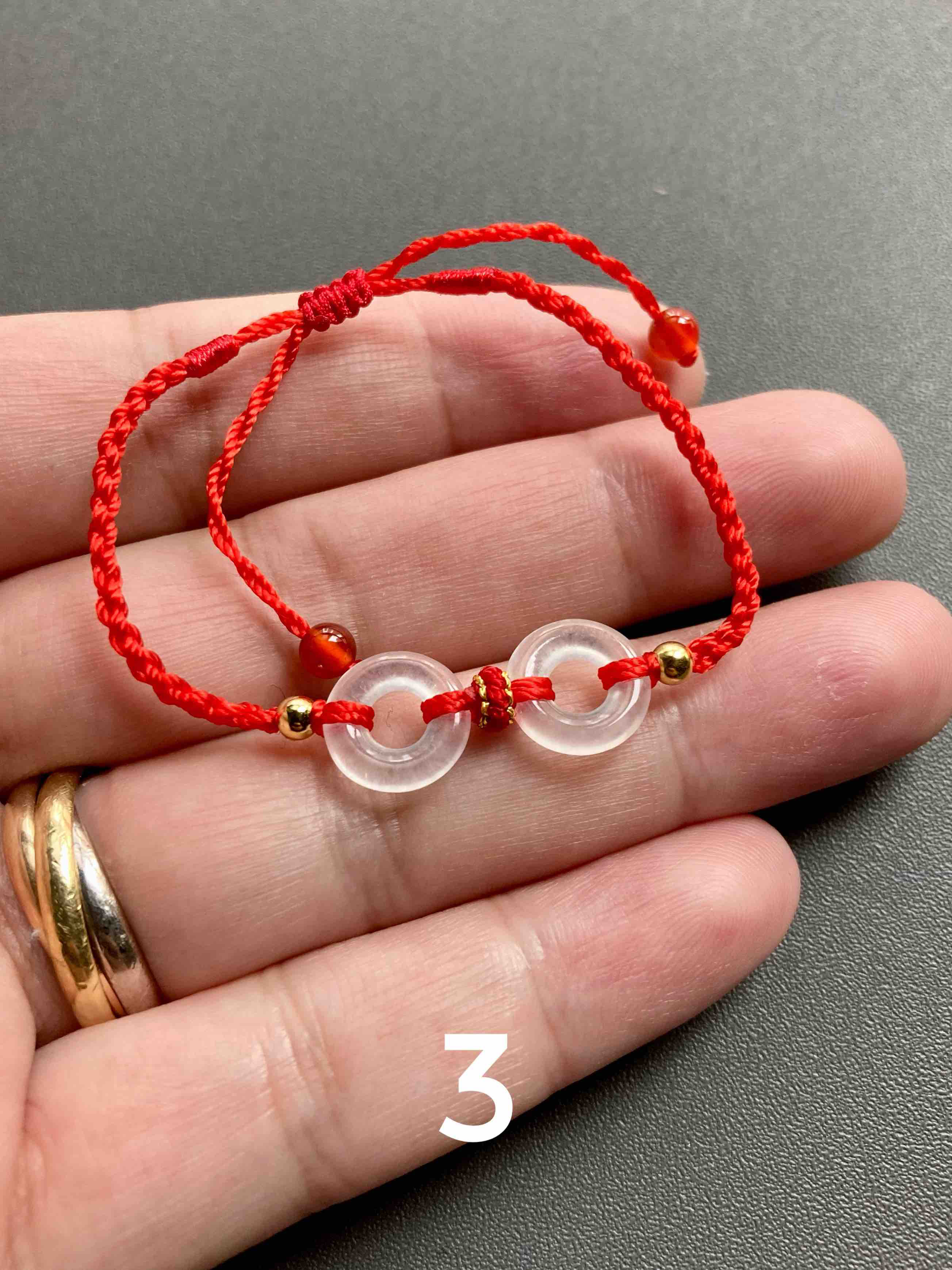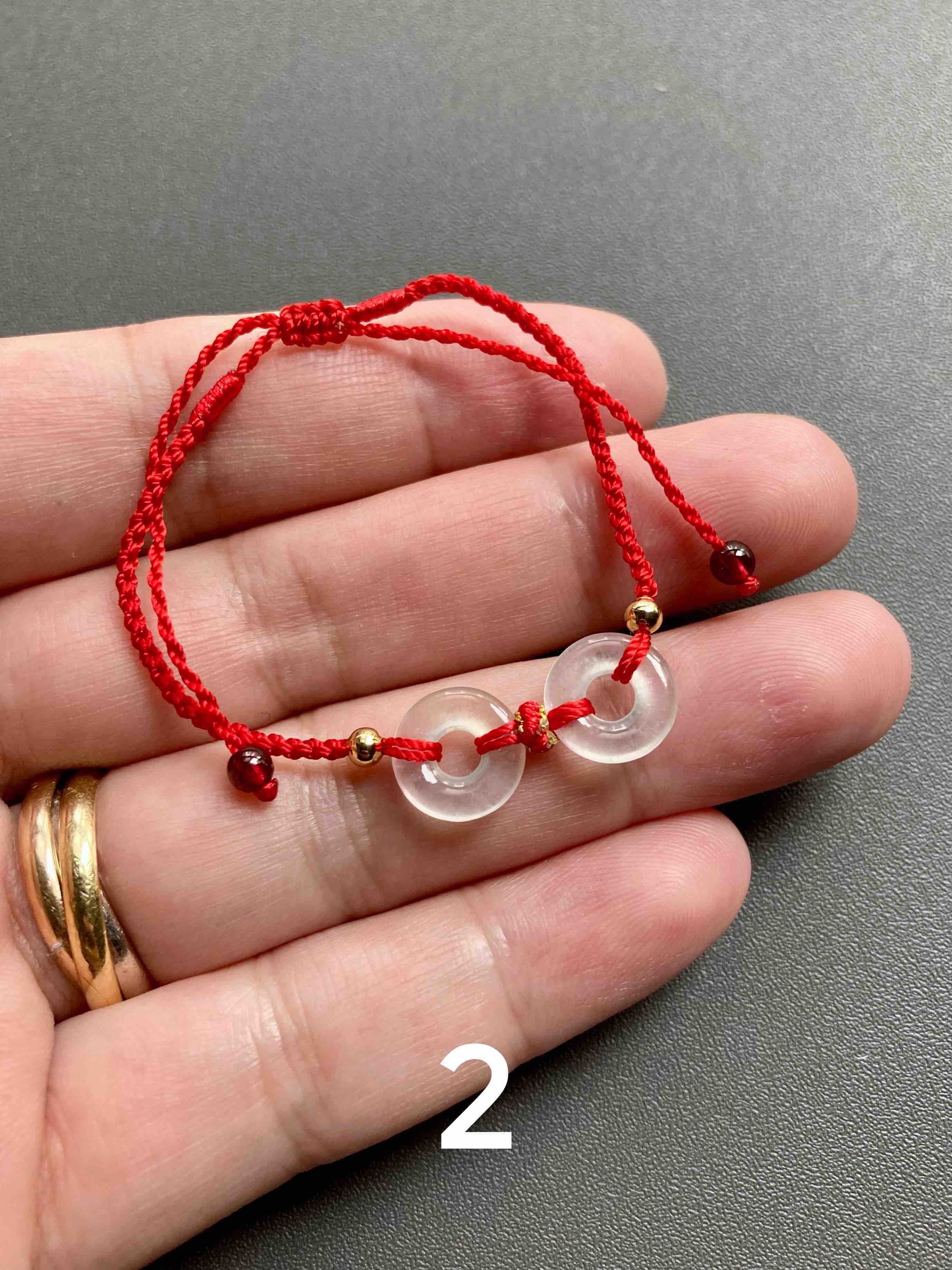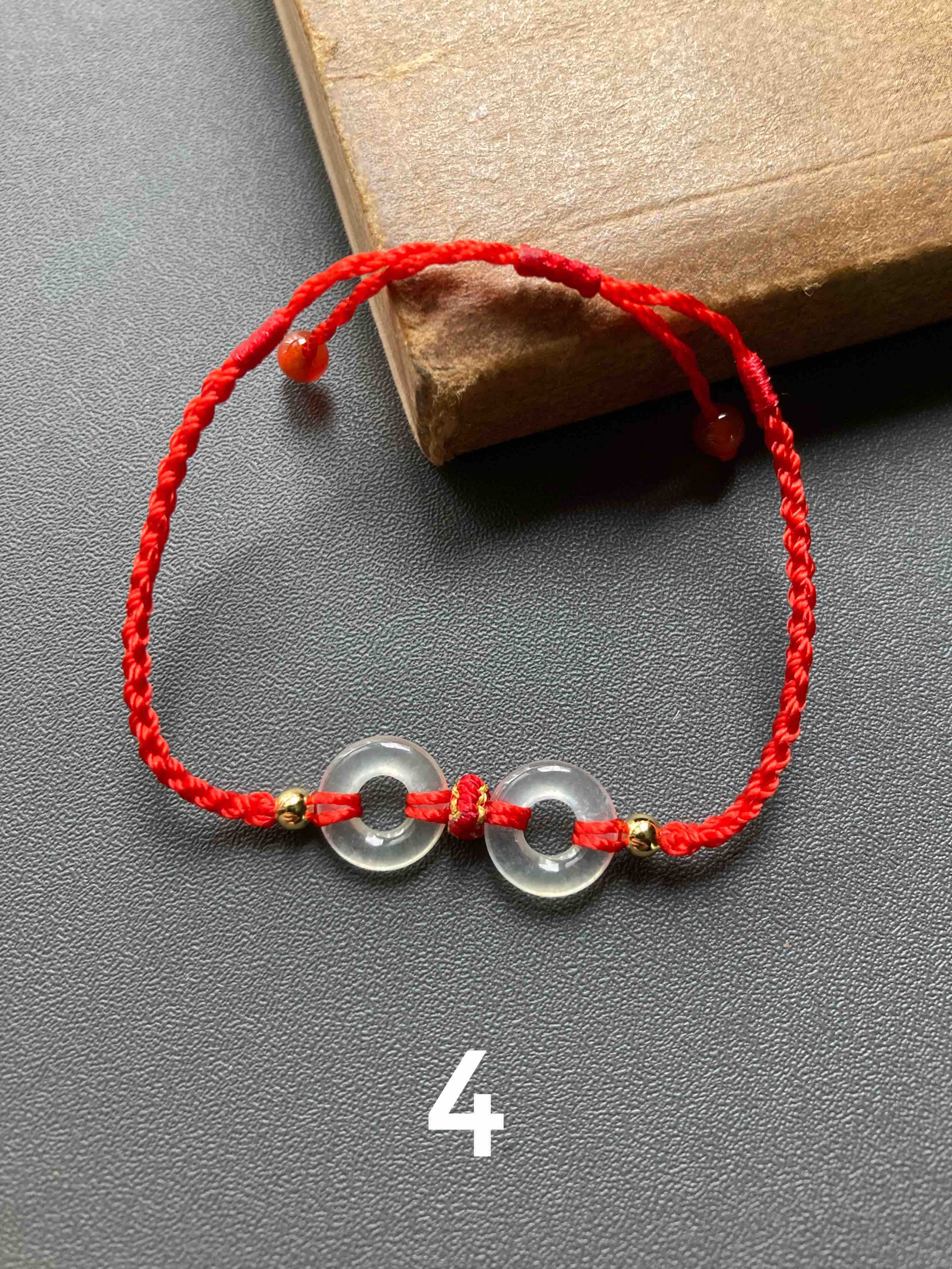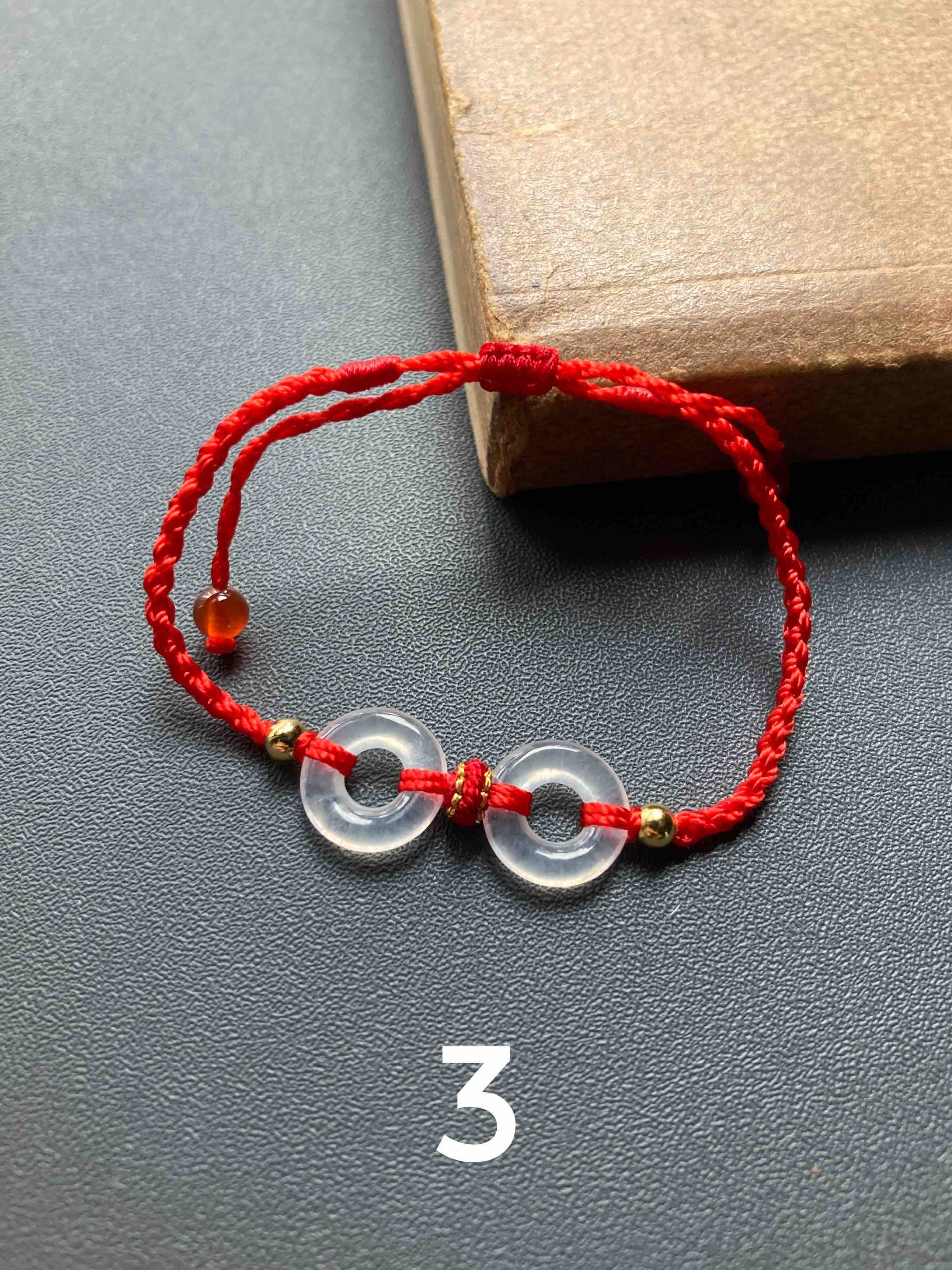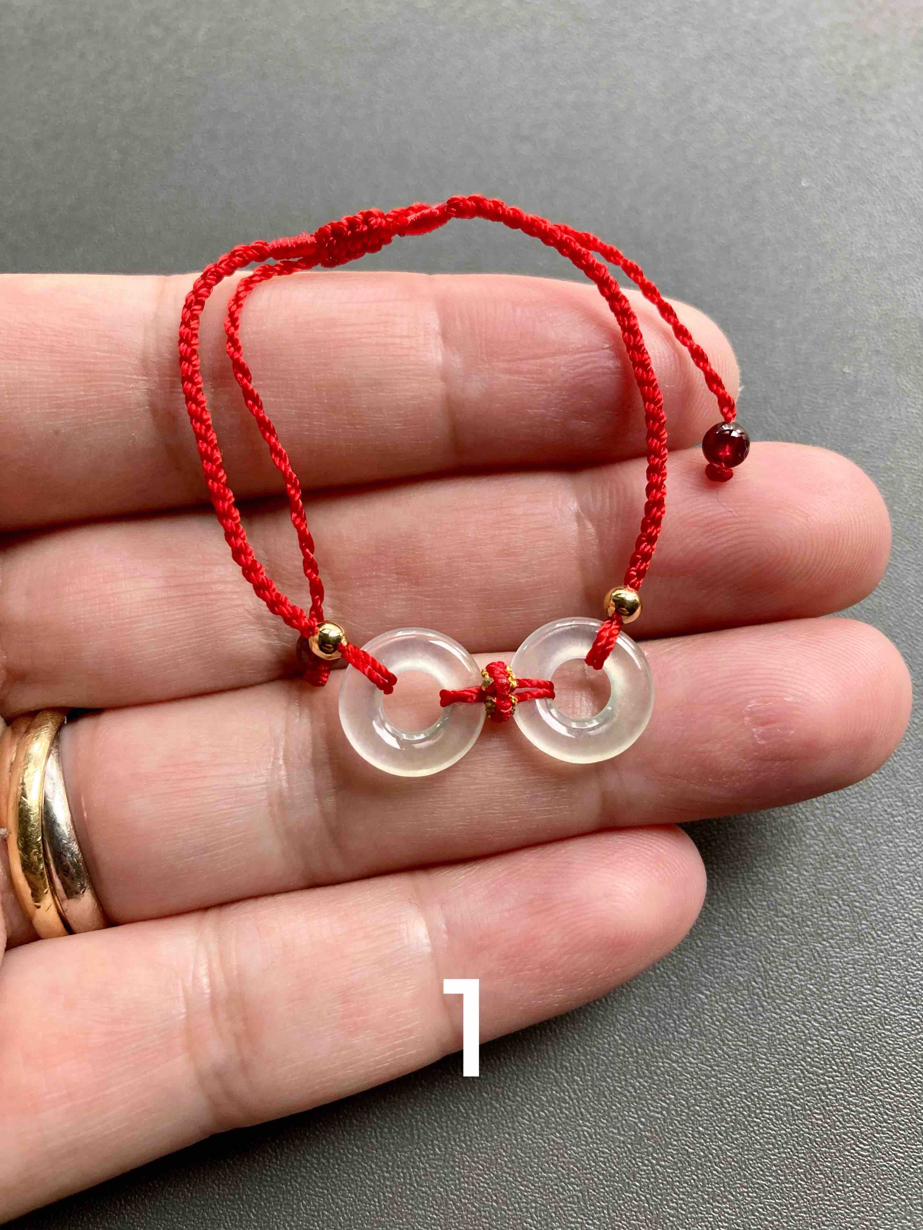 新年保平安之物,翡翠平安扣手绳,一共四条,稀有玻璃种,荧光四射,品质吊打网上的普通货色,寓意平安喜乐,好事成双。本命年戴一条,或者给家里的孩子戴上,那都是极好的,物美价廉,上次没抢到的这次手要快,目前手绳长度是按孩子的手编的,成人戴不进,如果需要成人佩戴请联系客服改长度。1号平安扣10.9mm,2号9.9mm,3号10.3mm,4号9.6mm。