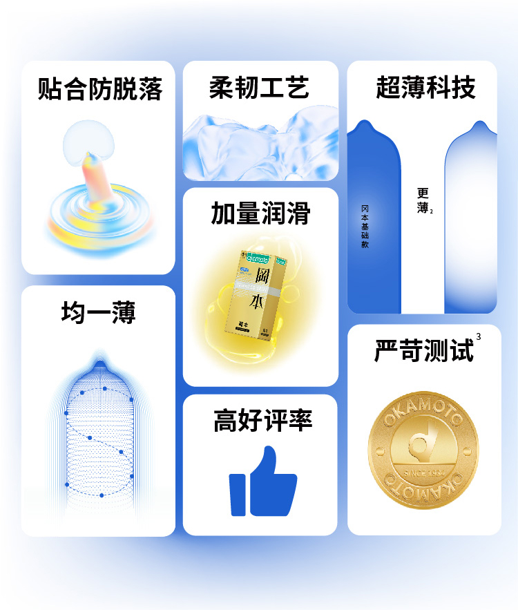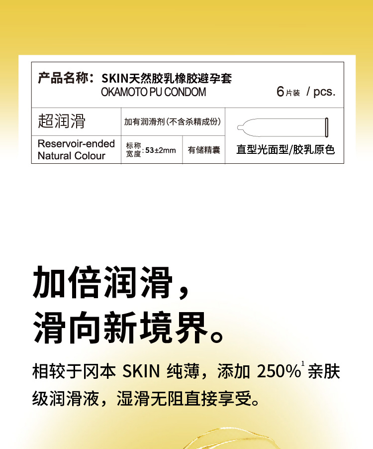【3D贴身薄】黄金无储精囊安全套润3500颗香草前端紧缩 OKAMOTO冈本官方商城