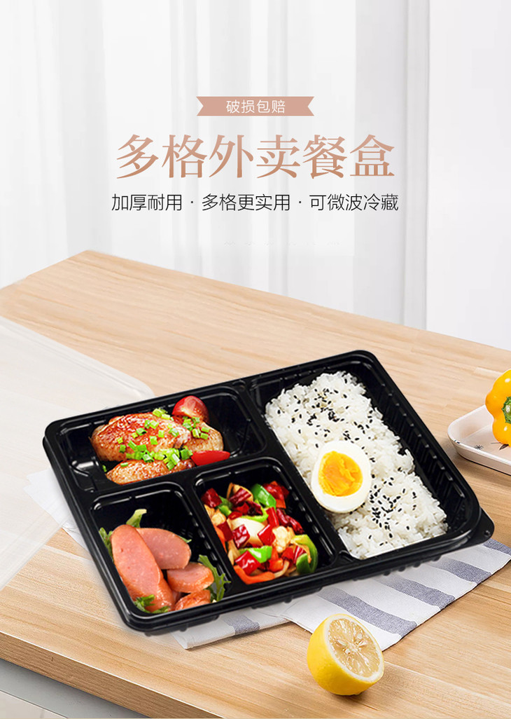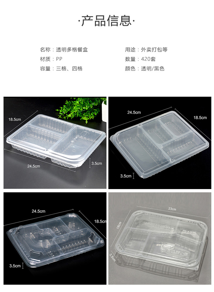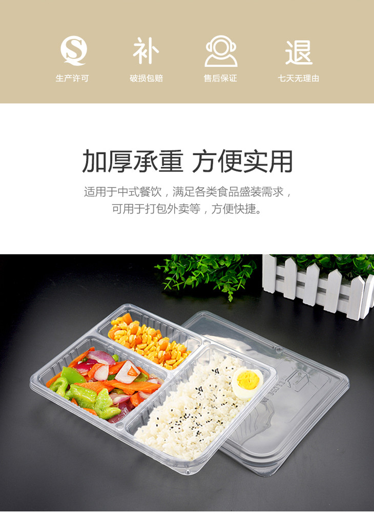 喇叭花一次性餐盒三格四格便当盒外卖盒一次性打包盒分格420套