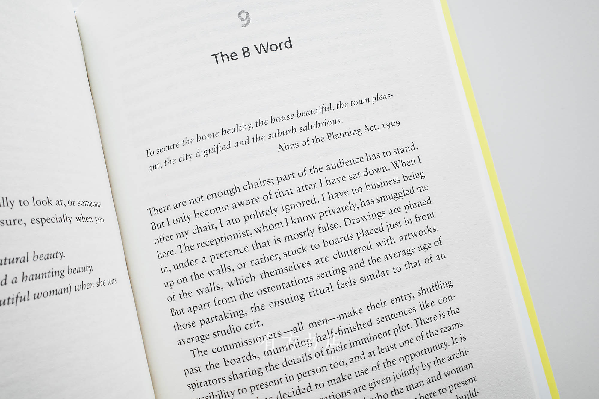 这本书还收录了一本“专业术语”(Profspeak)的讽刺词典,这里的“专业术语”指代顾问、开发商和规划人员的企业语言,从“积极倾听”到“迅速做好准备”。