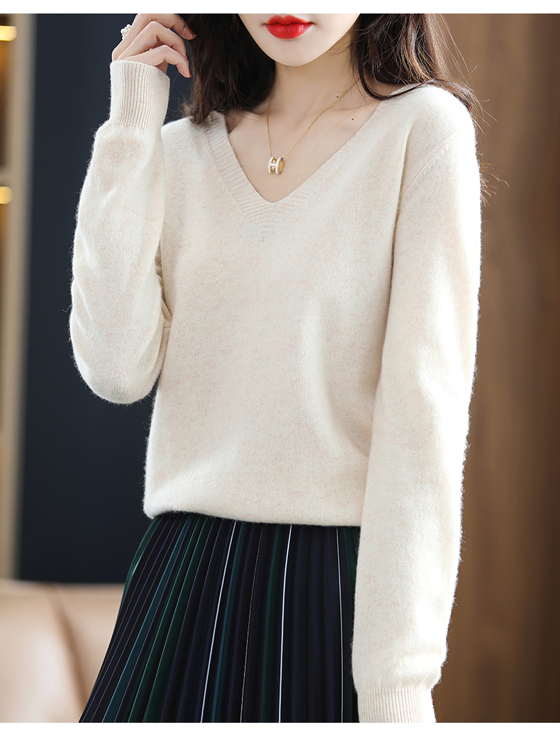 奥伊米初秋女士新款百搭圆领针织衫修身显瘦纯色V领针织上衣 商品图6