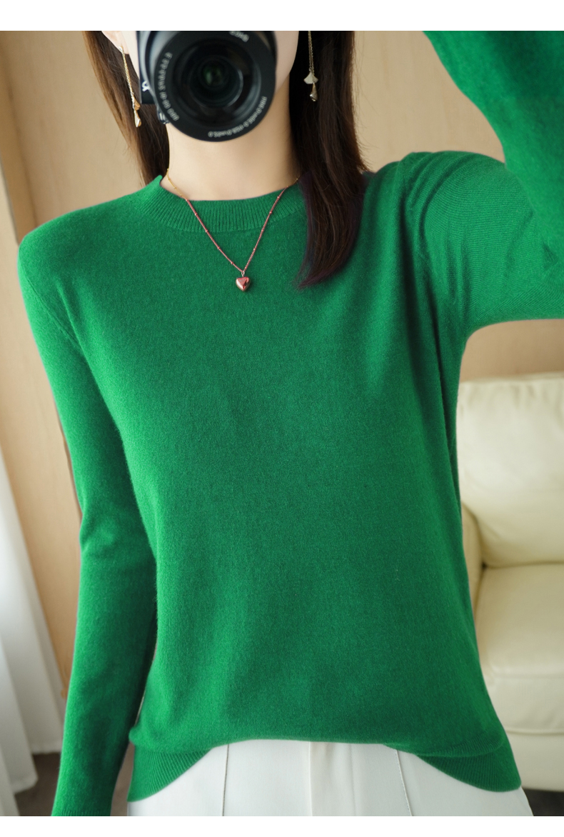 奥伊米初秋女士新款百搭圆领针织衫修身显瘦纯色V领针织上衣 商品图4