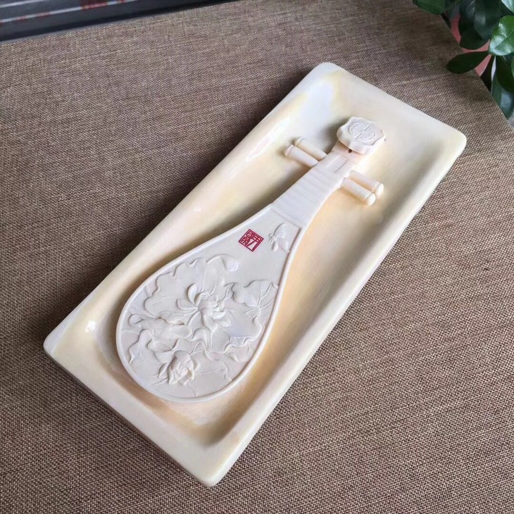 【47801】猛犸象牙【一曲琵琶倾城梦】一壶清酒沁心脾,大师手工香插原创设计,立体浮雕图案,比例恰好,精美原皮,收藏佳作,一品世家。 尺寸152×65×17mm,克重185g结缘价6666