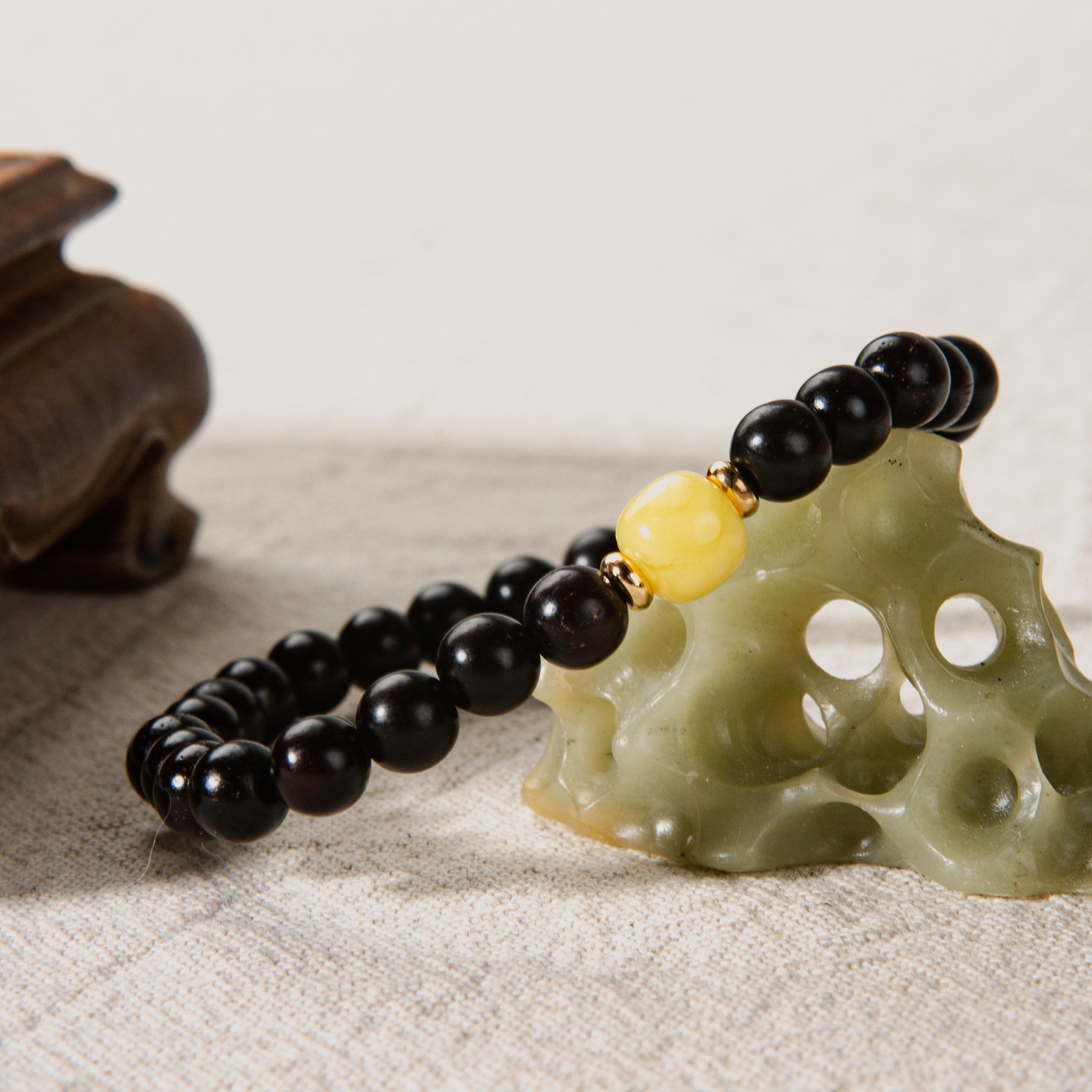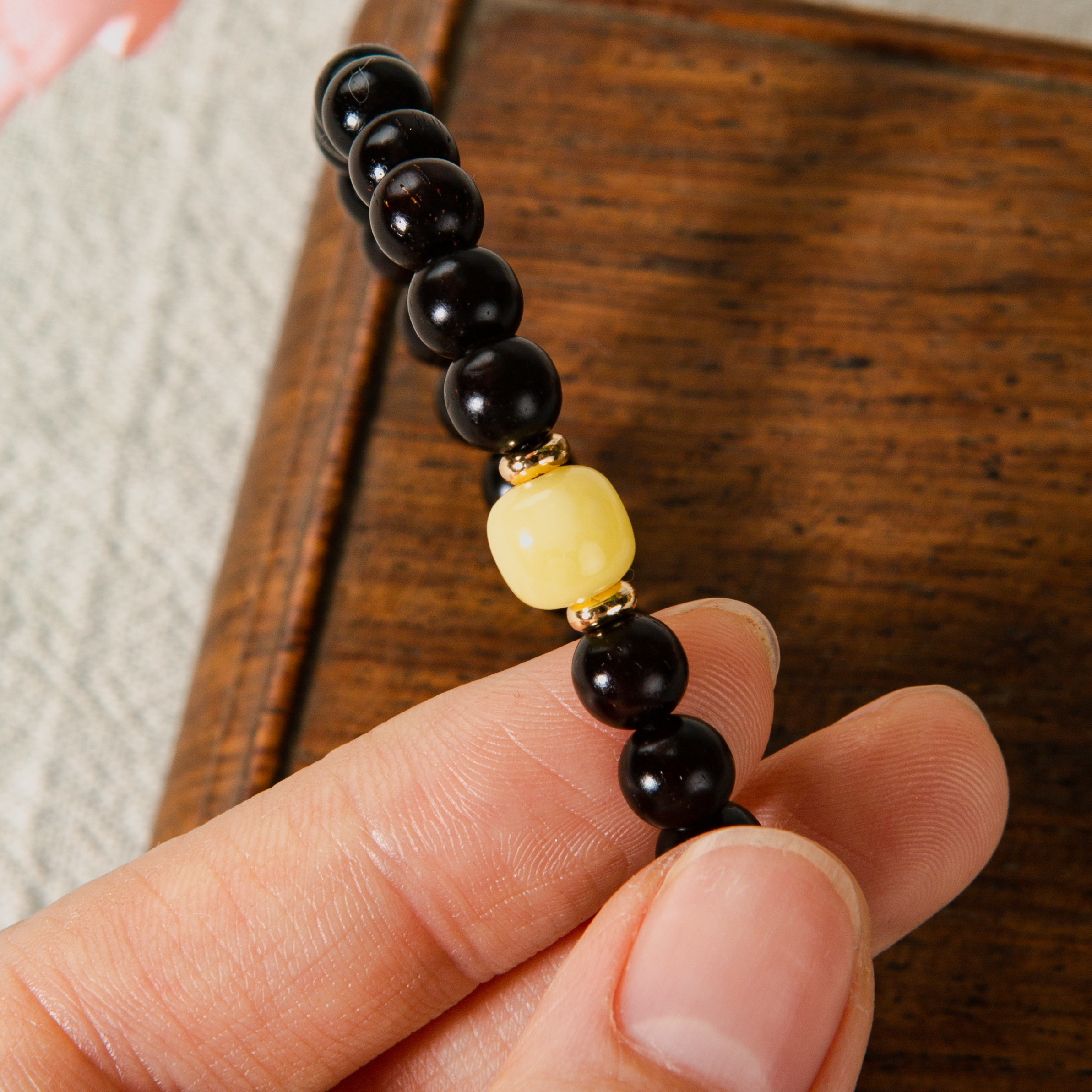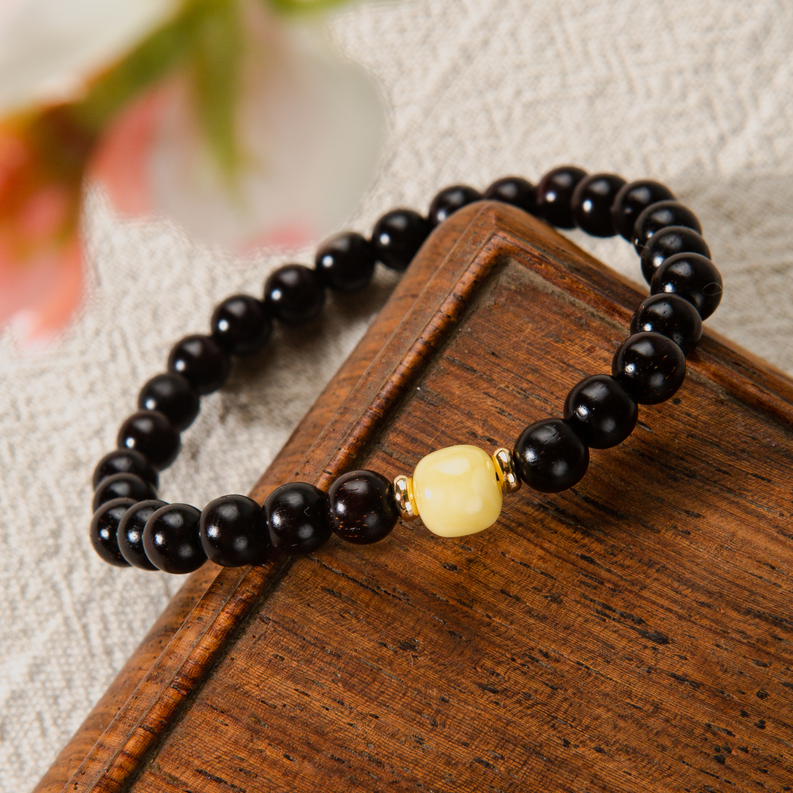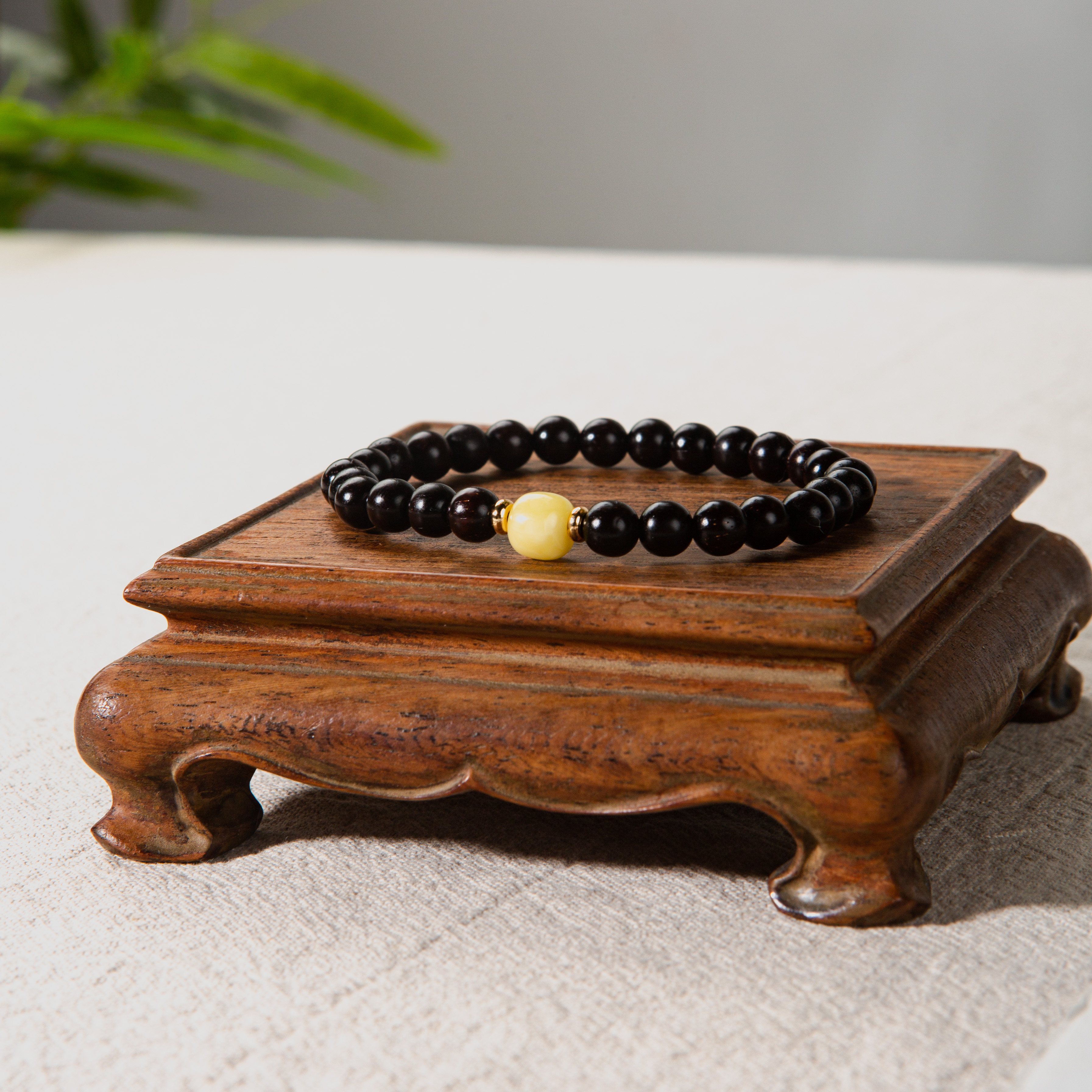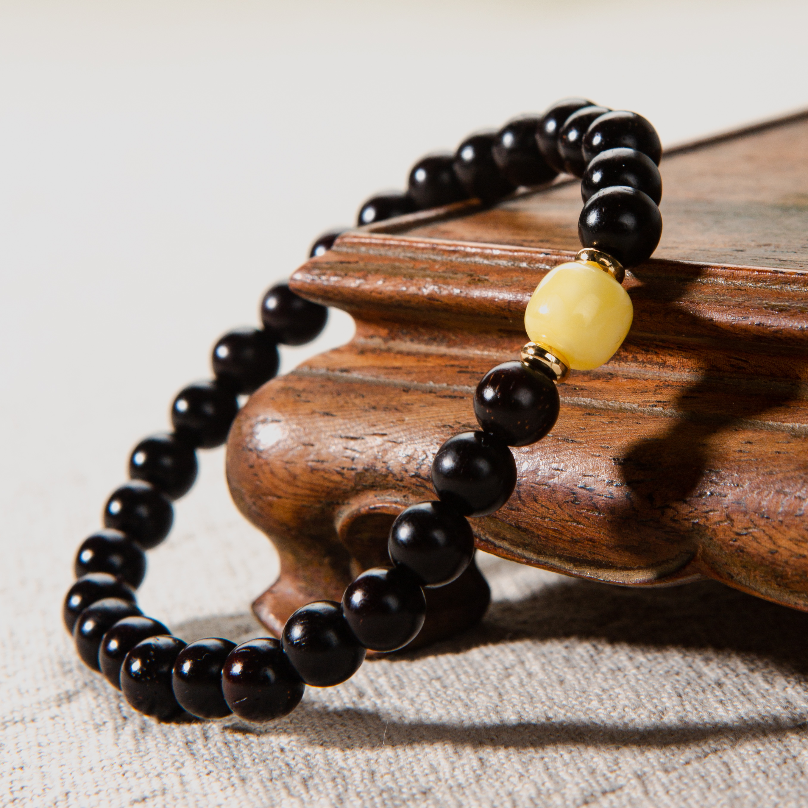 蜜蜡顶珠清代檀香紫檀家居老料制手串直径0.6cm