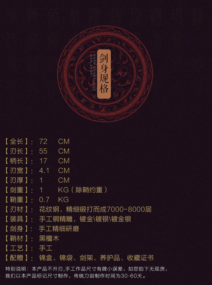 大明永乐剑 沈州作品 龙泉沈广隆宝剑 传统剑 工艺品 未开刃