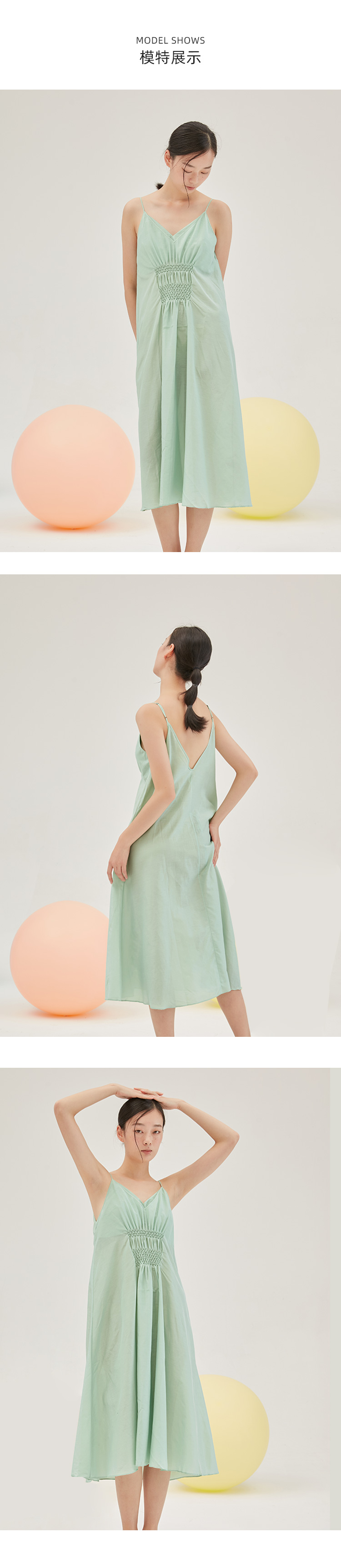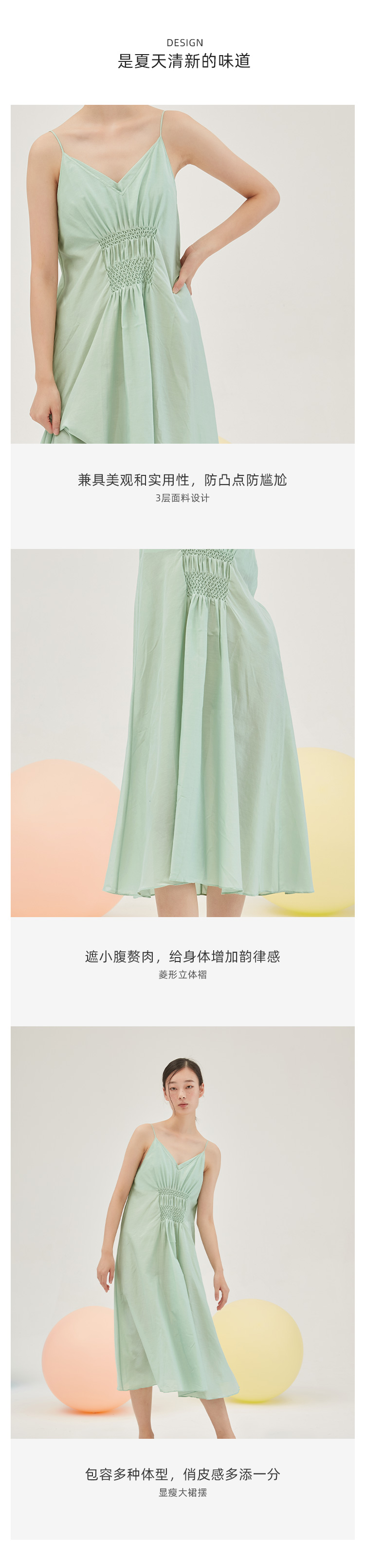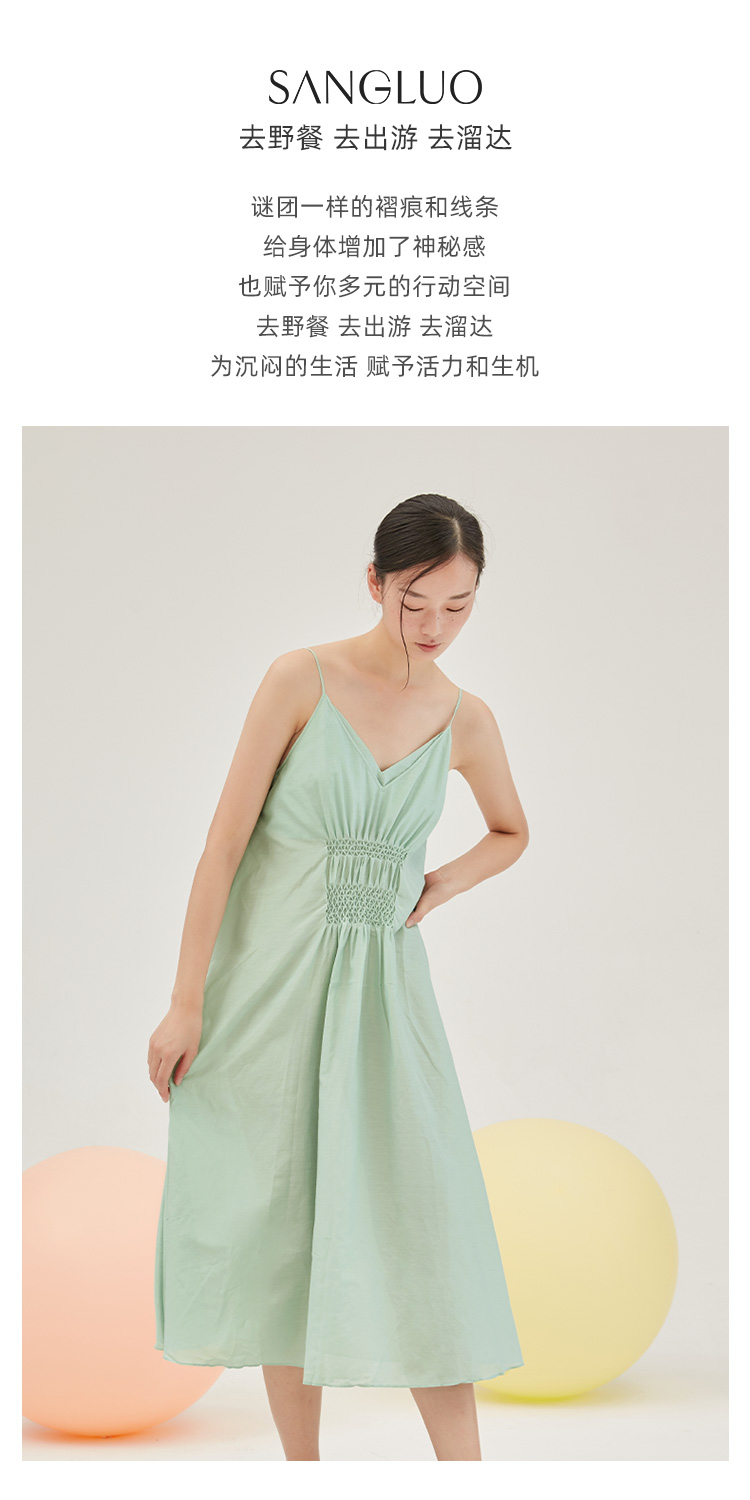 SANGLUO桑蚕丝丝绵豆绿色吊带睡裙长款侘寂风大裙摆家居服睡衣