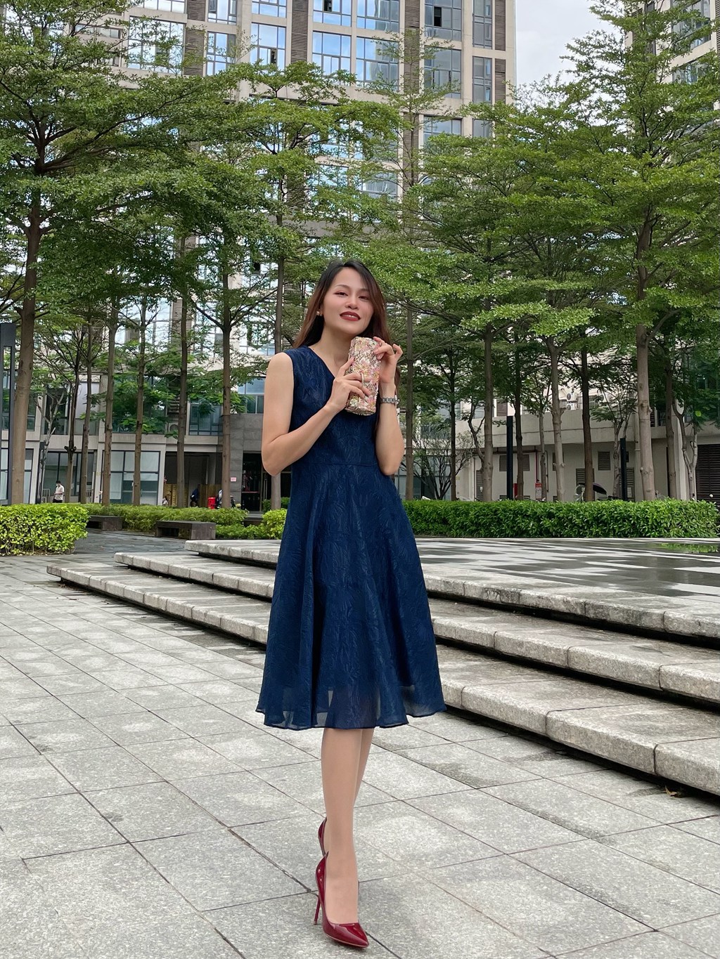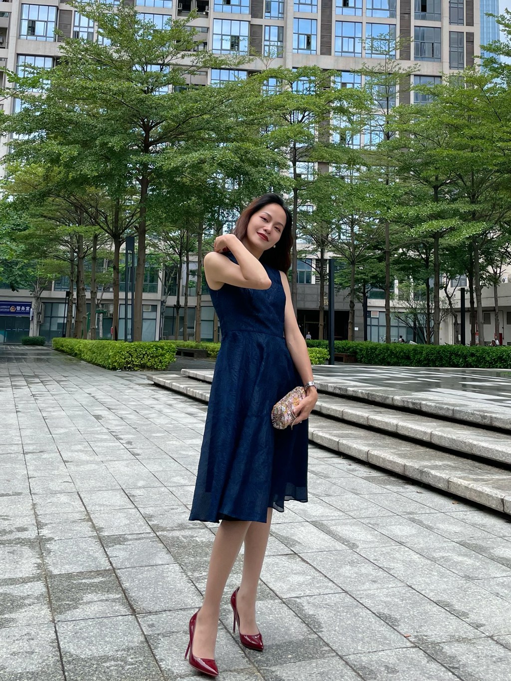 【伯妮斯茵】2S5183--黛蓝色连衣裙
