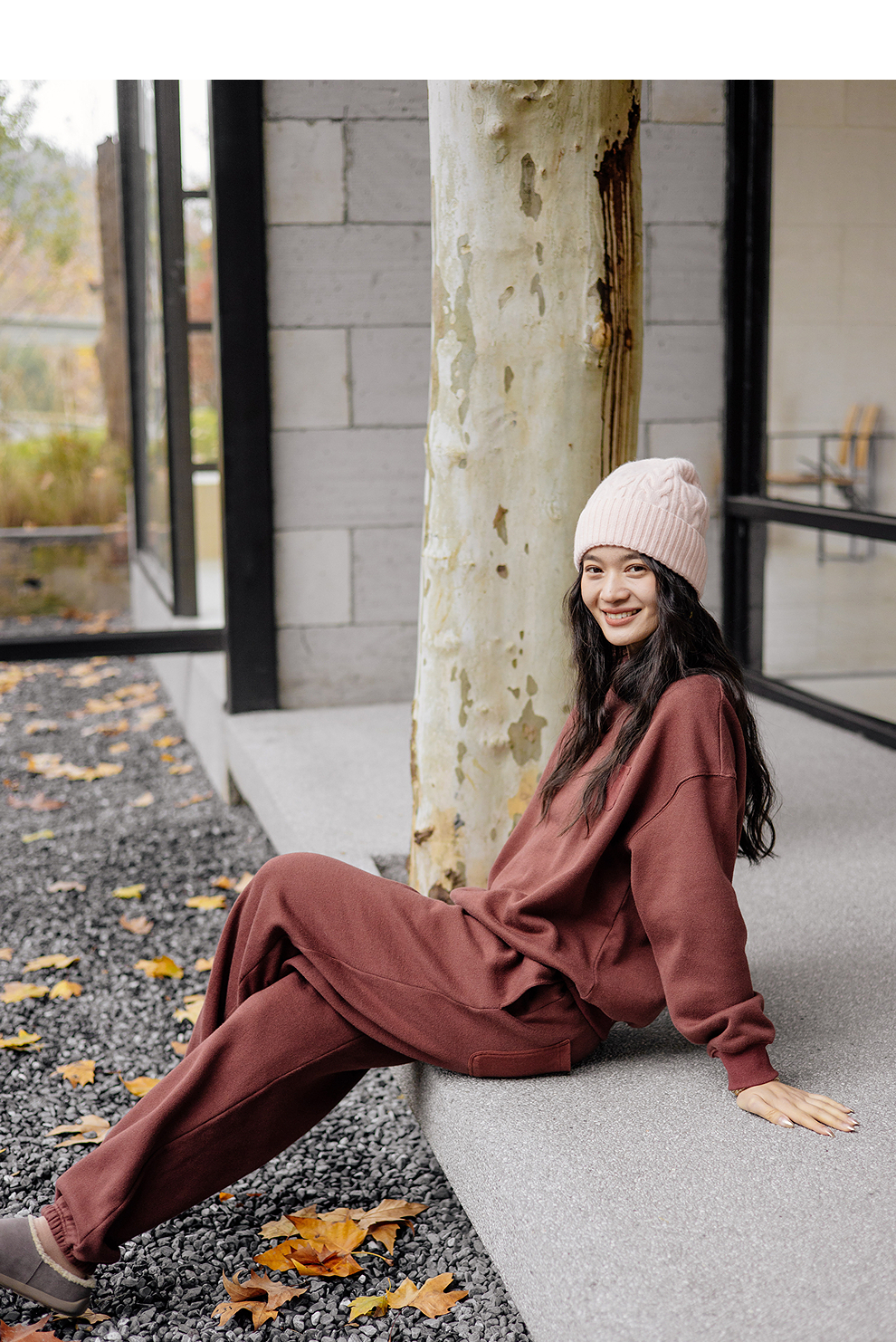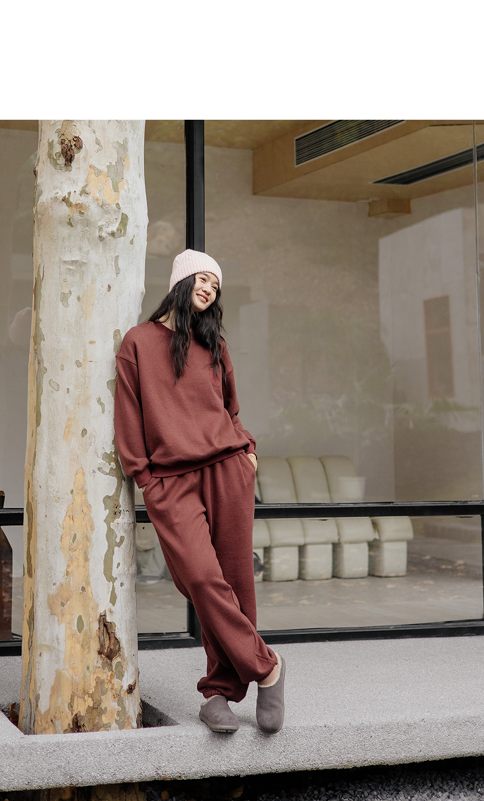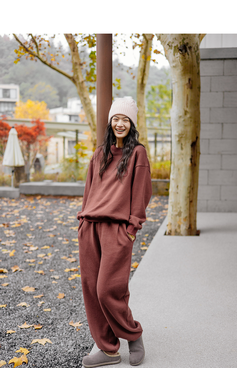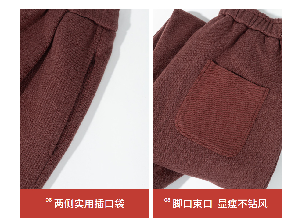 绽放007-008朵/羊毛棉摇粒绒全腰松紧加抽绳脚口收口卫裤卫衣套装