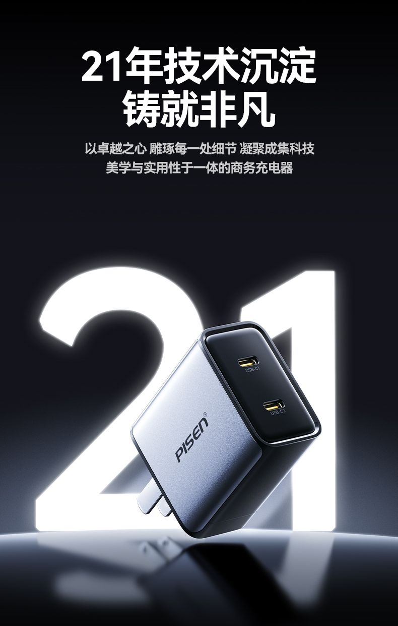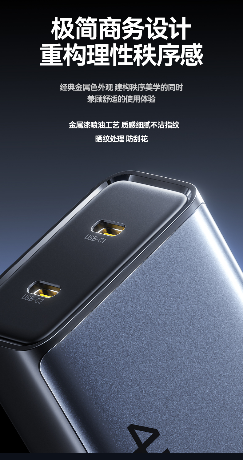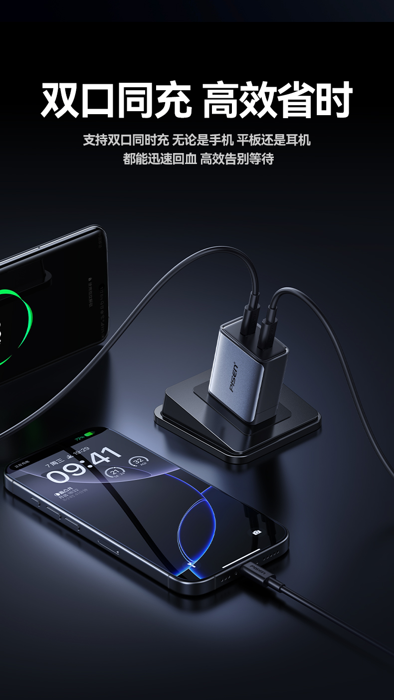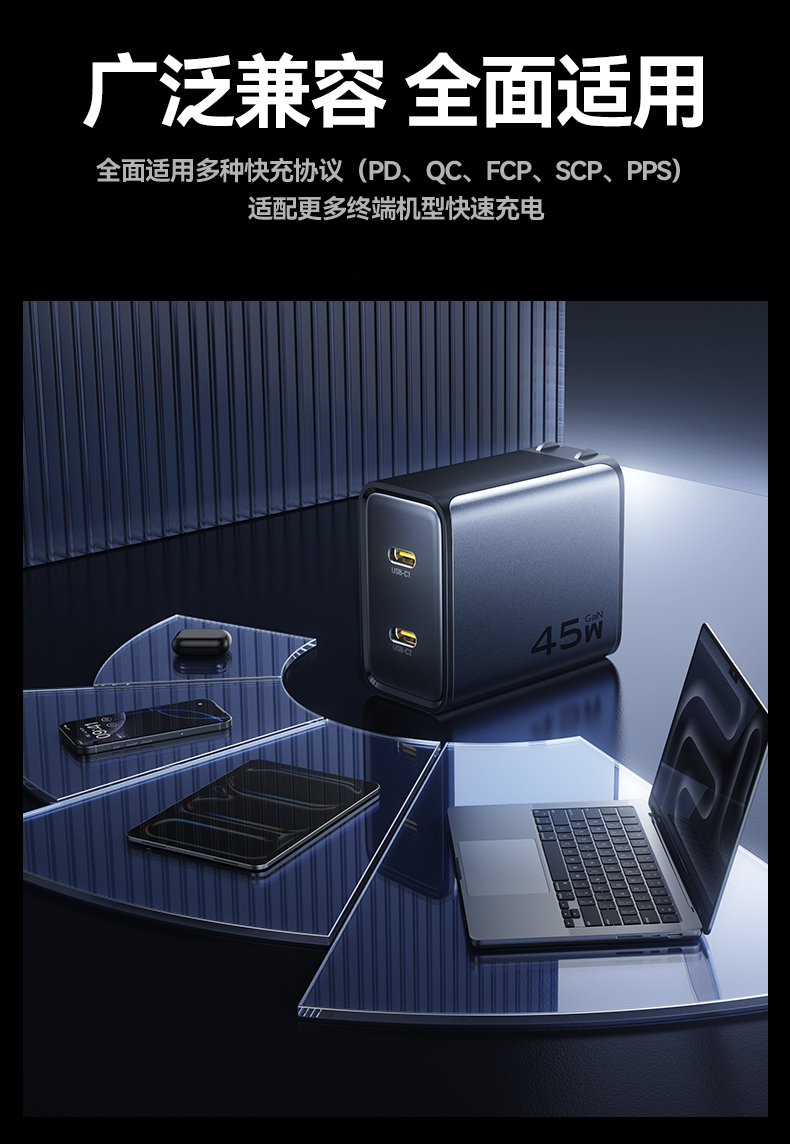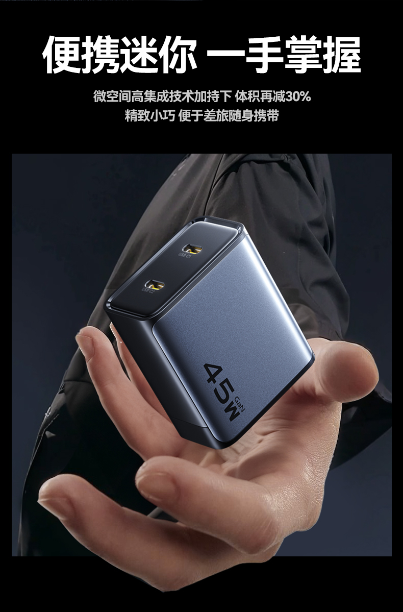 品胜 45W氮化镓闪电湃双口快速充电器2C 手机快充支持华为/小米/苹果设备