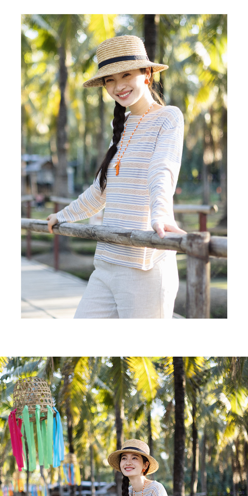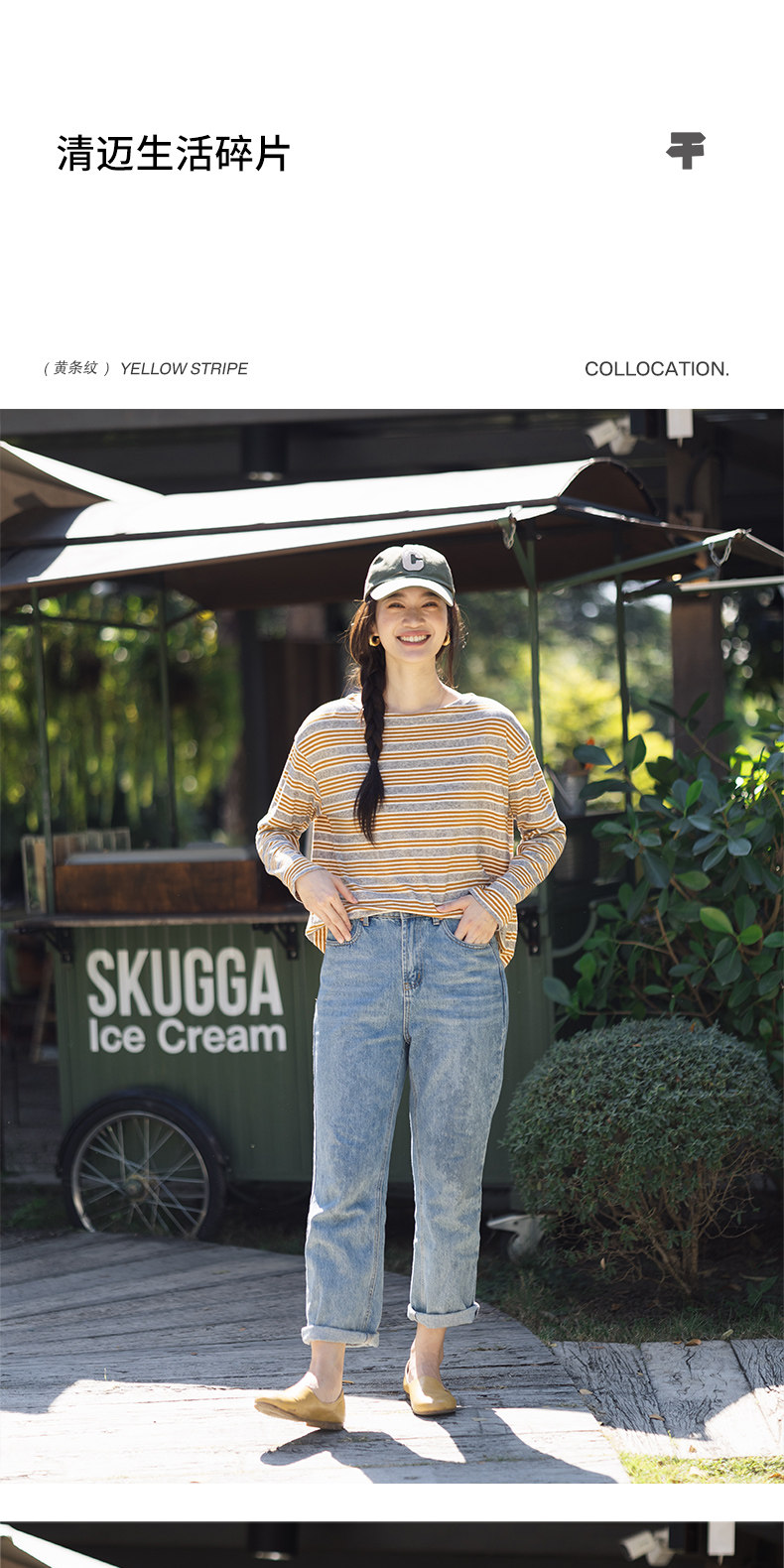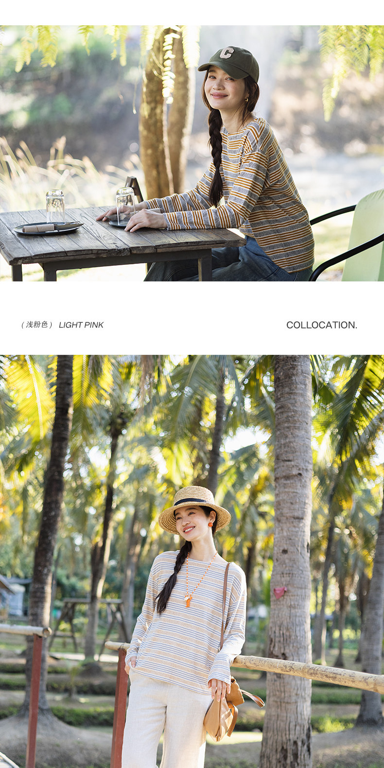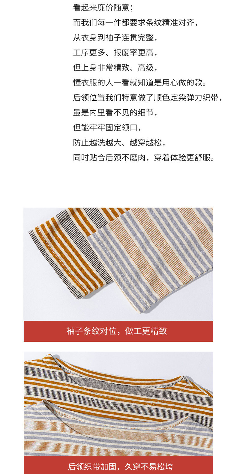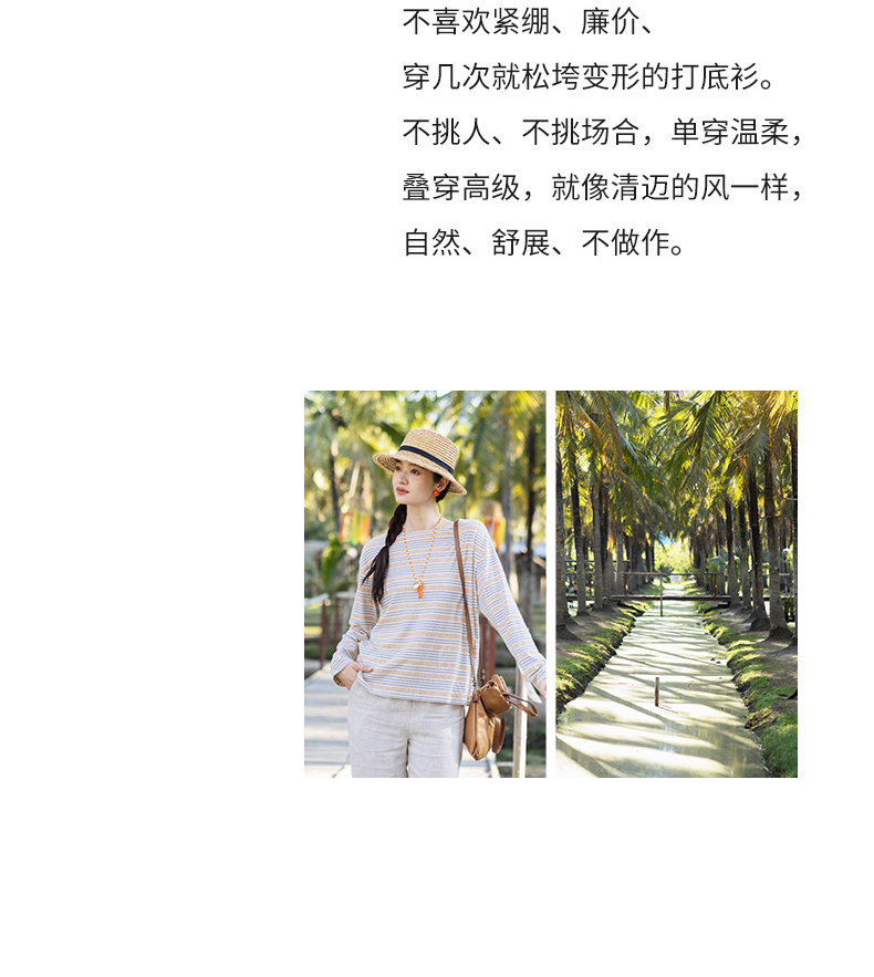 特绽放140朵/一字T*汉麻棉一字肩条纹长袖打底T恤女新款宽松上衣