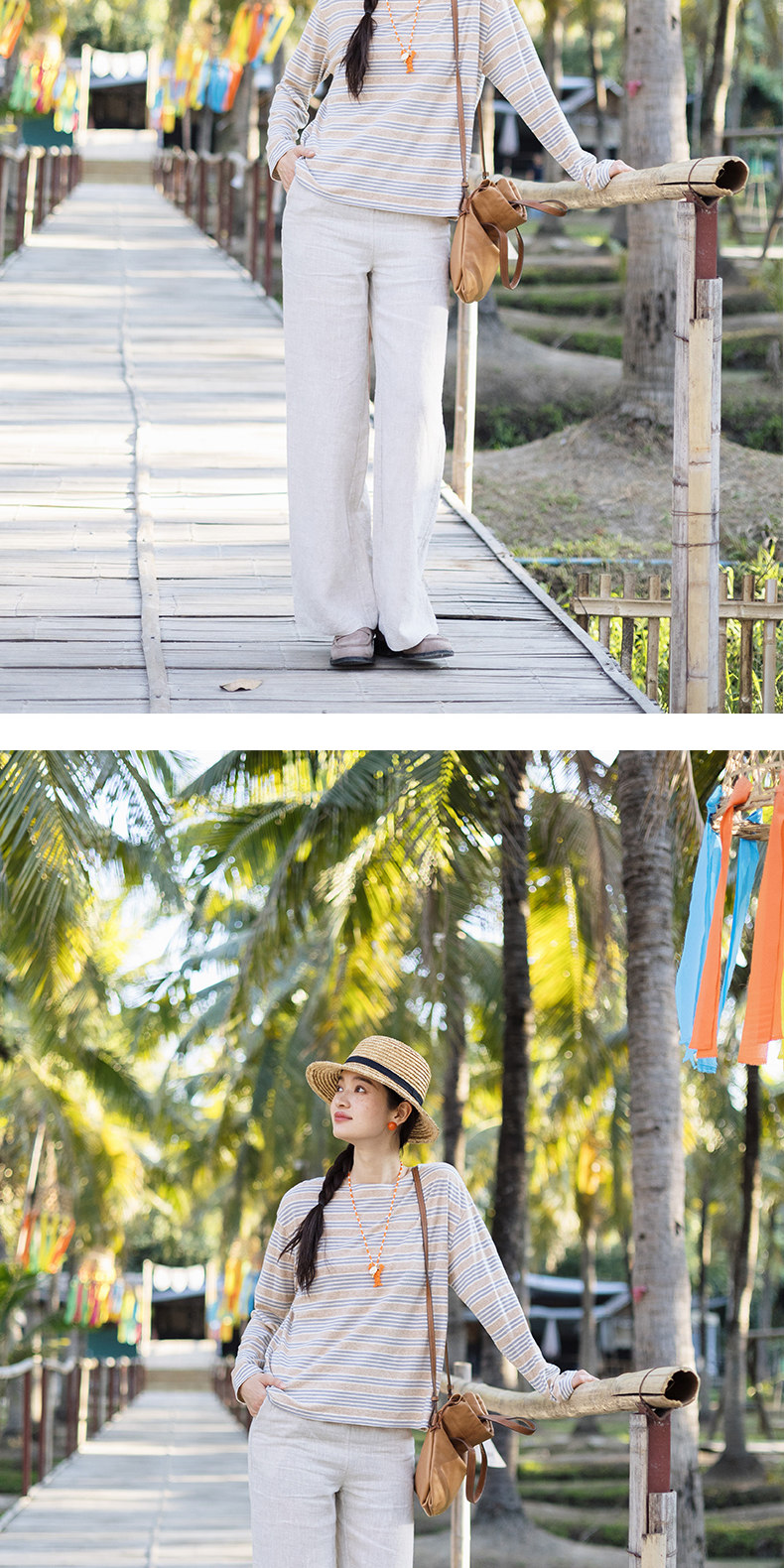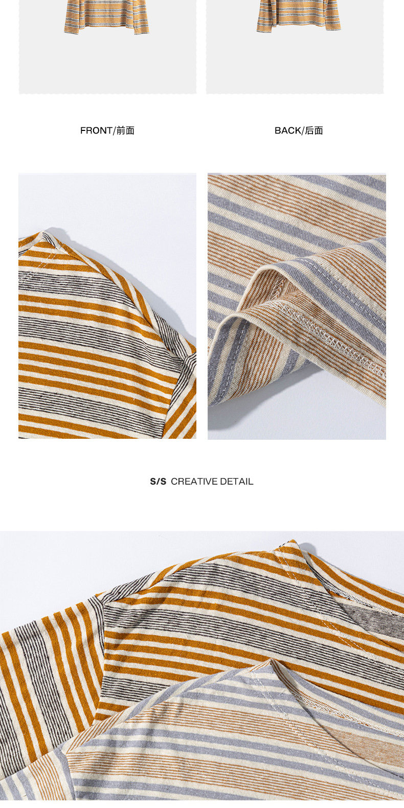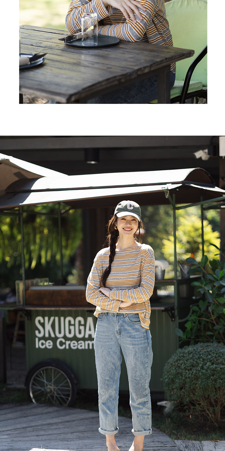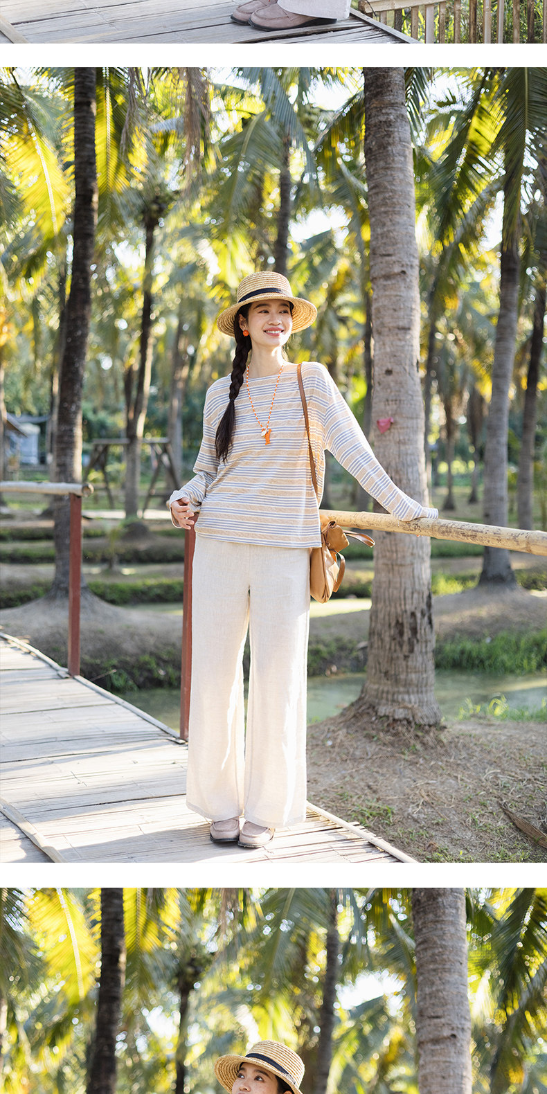 特绽放140朵/一字T*汉麻棉一字肩条纹长袖打底T恤女新款宽松上衣