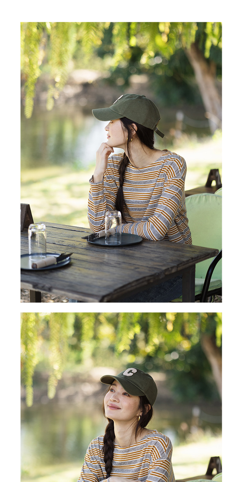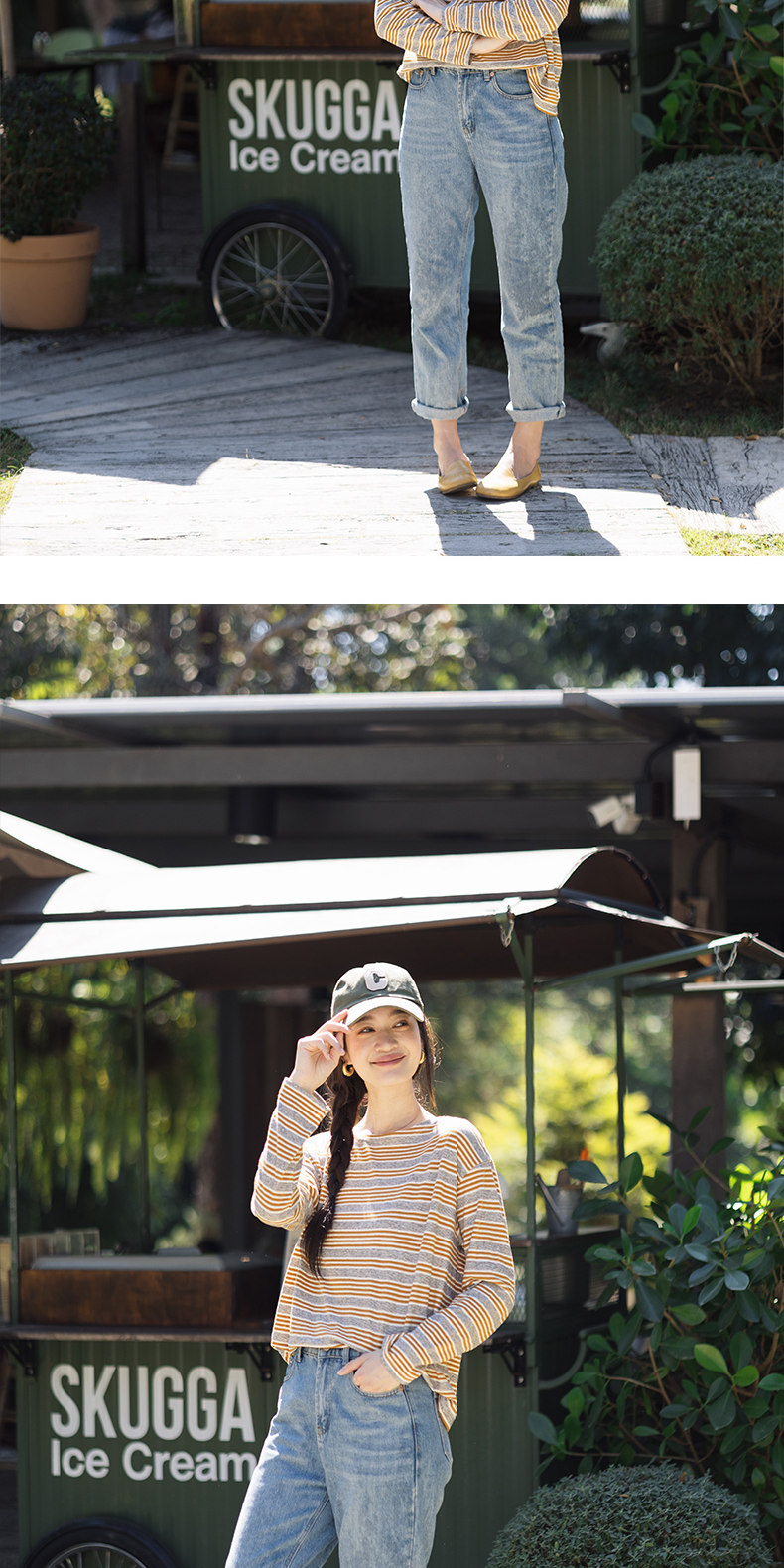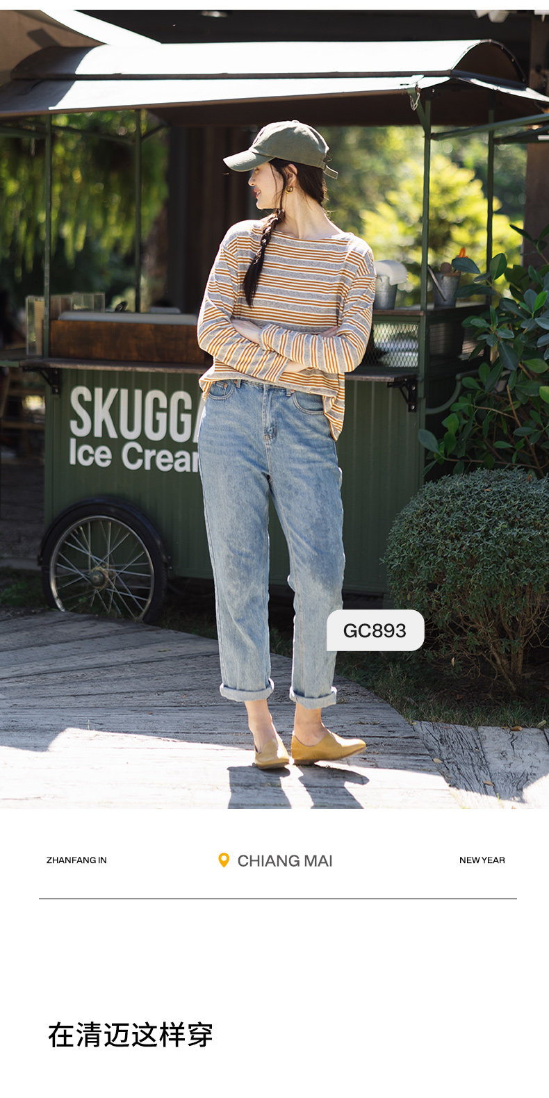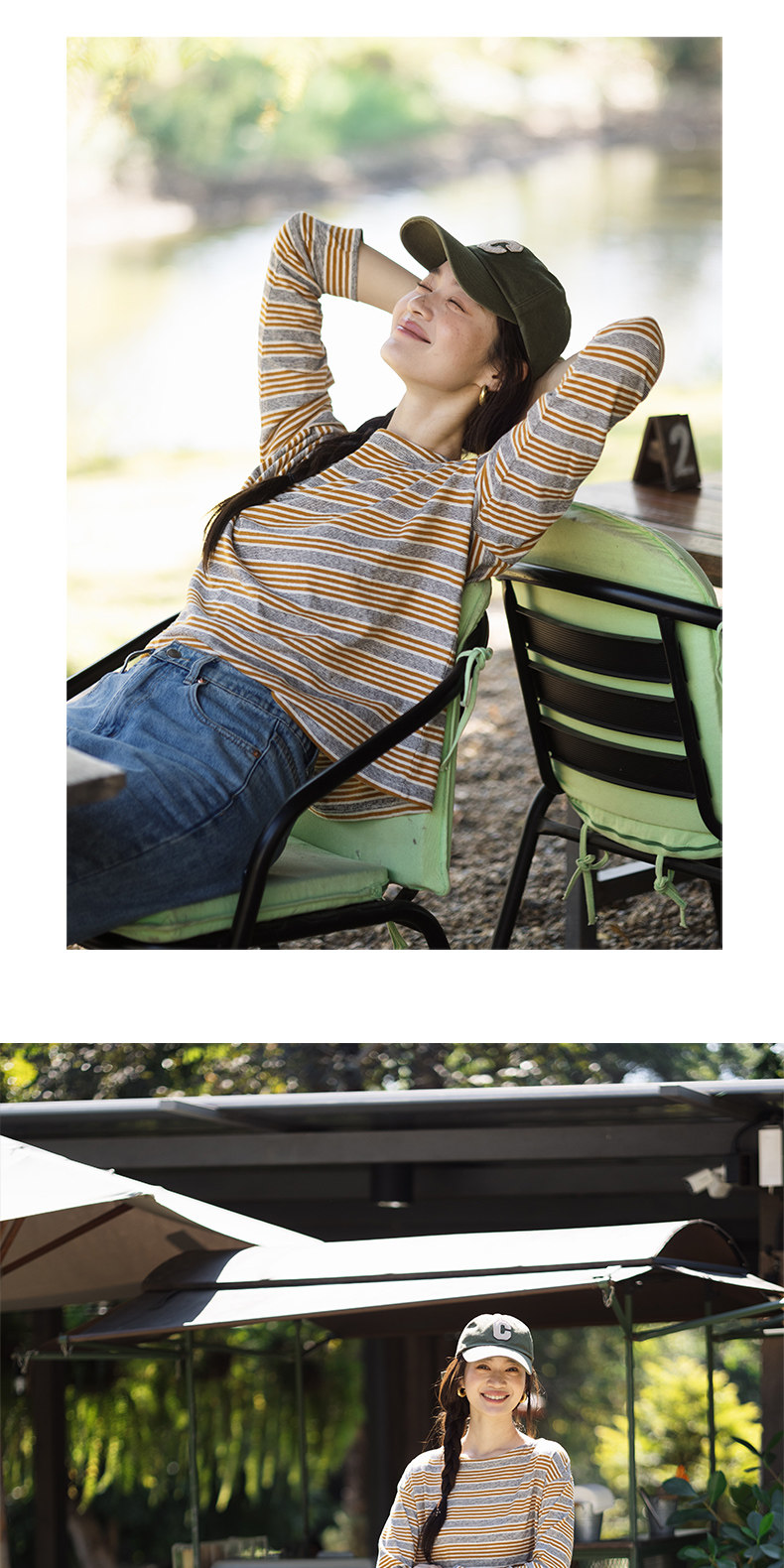 特绽放140朵/一字T*汉麻棉一字肩条纹长袖打底T恤女新款宽松上衣