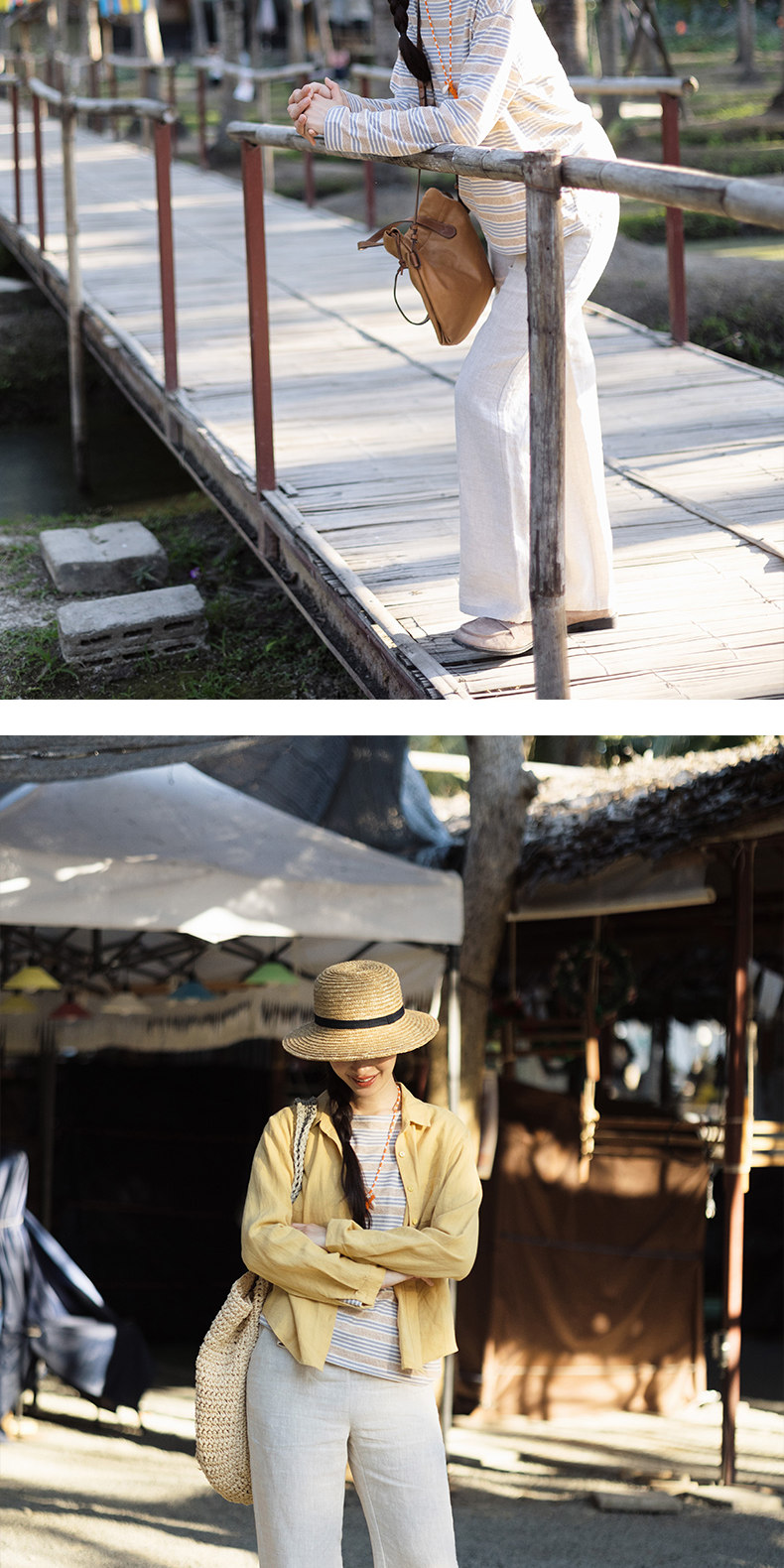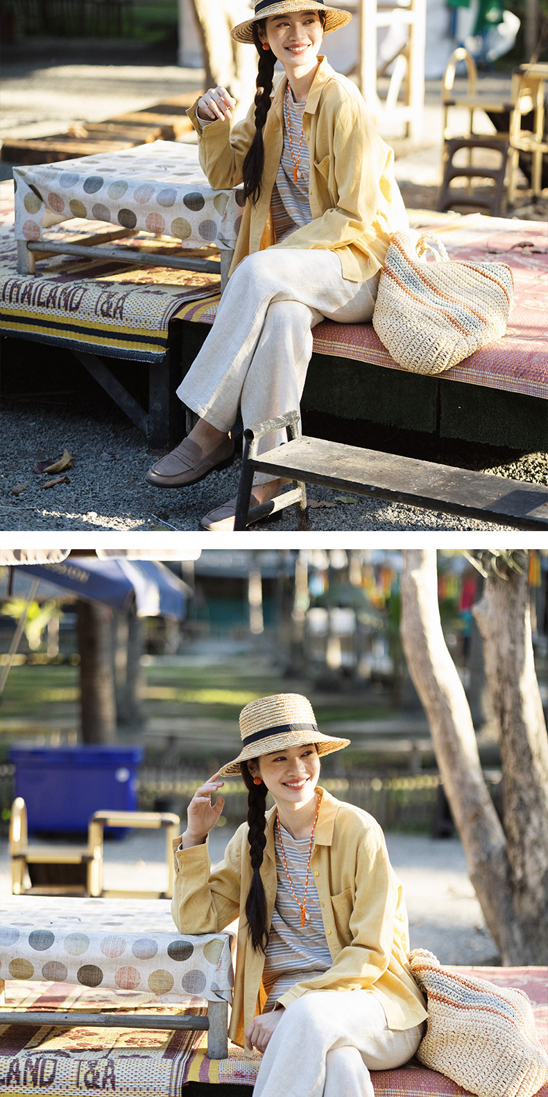 以天然亚麻为载体,融合热烈色彩与自在剪裁为身在城市、心怀远方的女性提供兼具美学与舒适的旅行着装