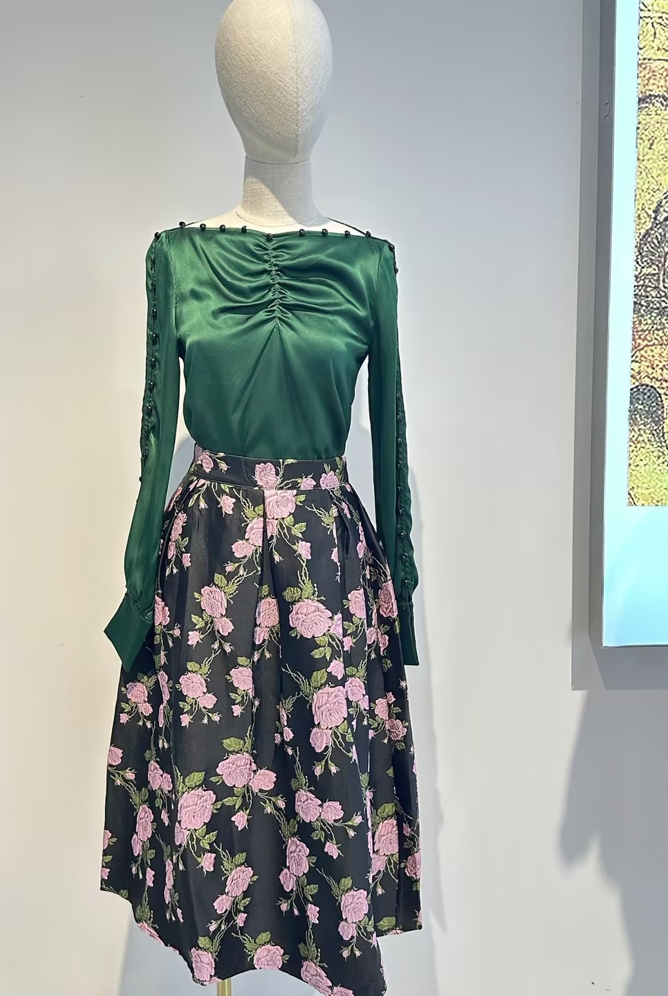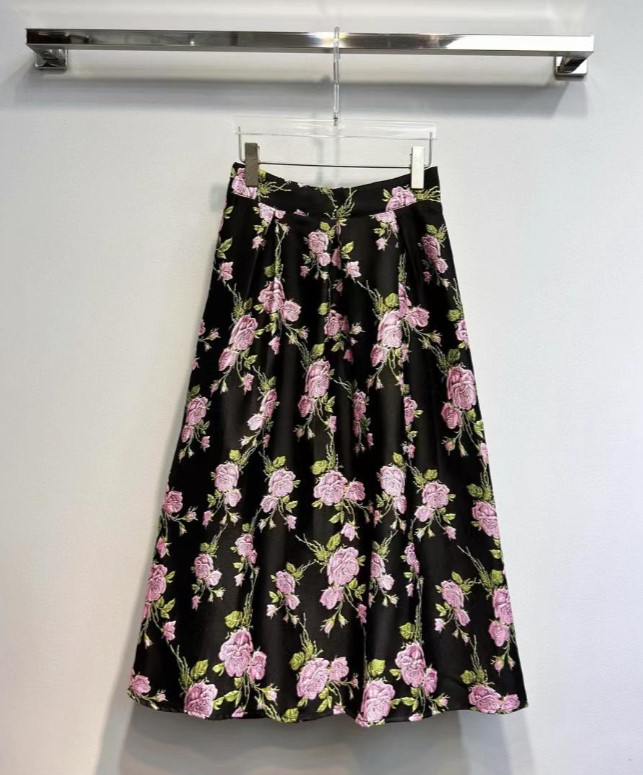 SZ1B56_ 漆黑色_半裙_春夏_高腰提花玫瑰大摆A字_高级女装_BERNIEELEN 伯妮斯茵