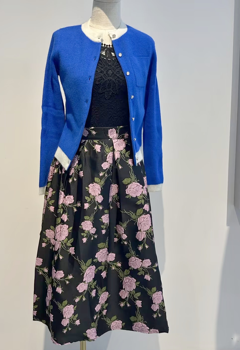 软糯樱花粉针织衫+黑底提花半裙CP