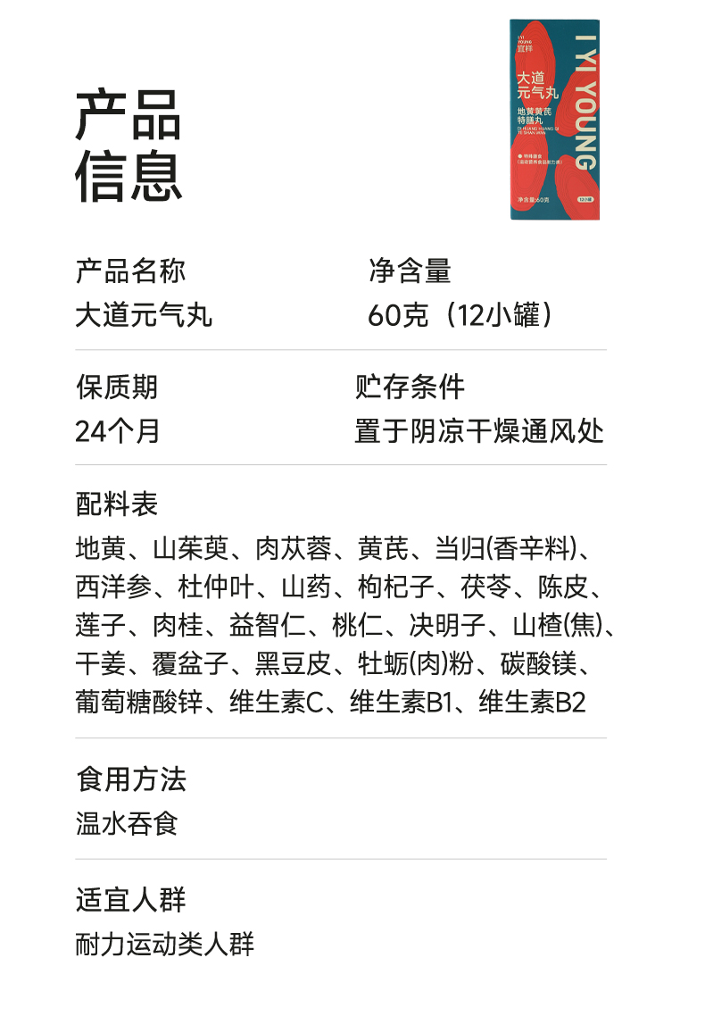 【11月新品】宜样大道元气丸5g*12罐/盒