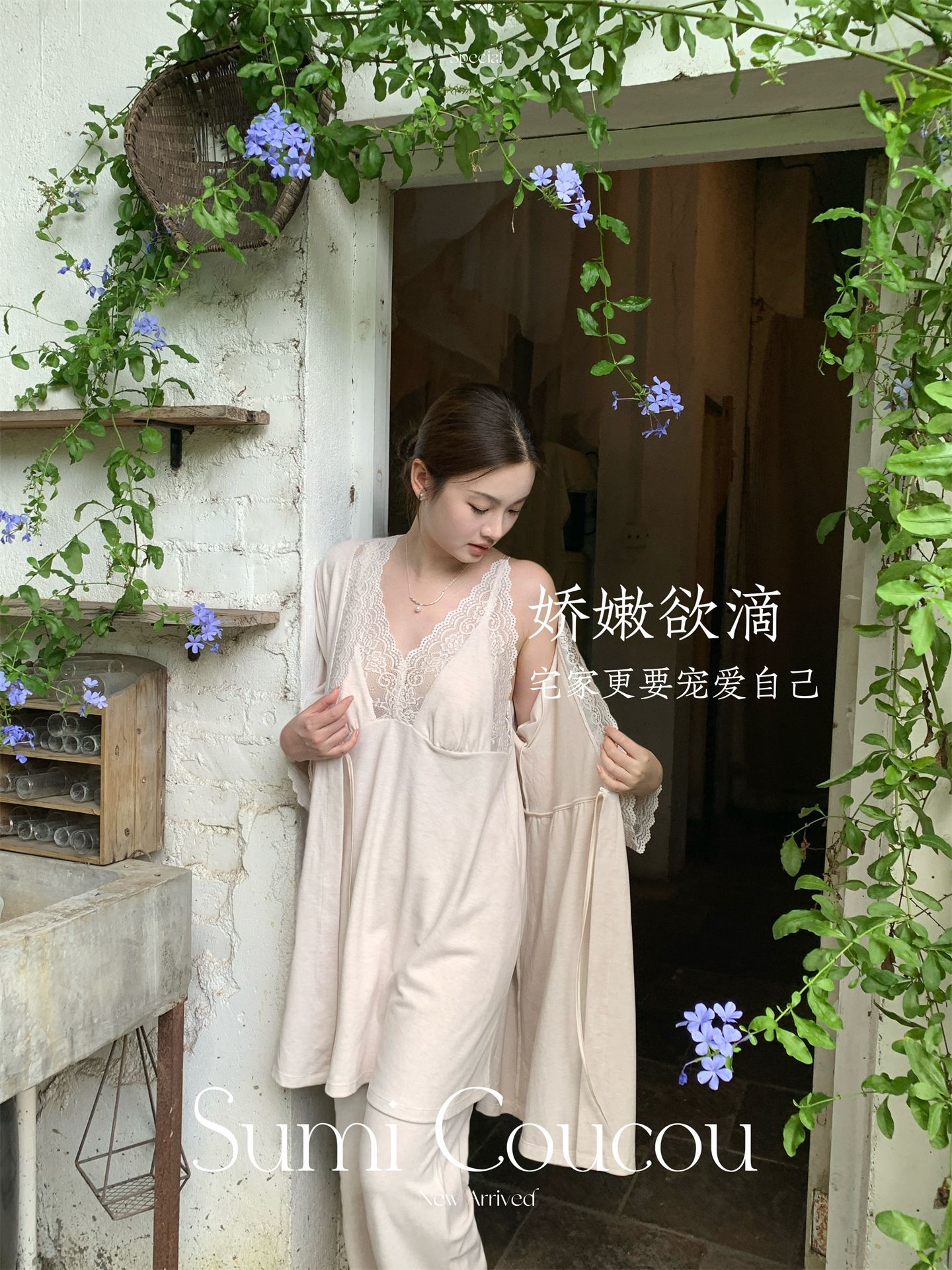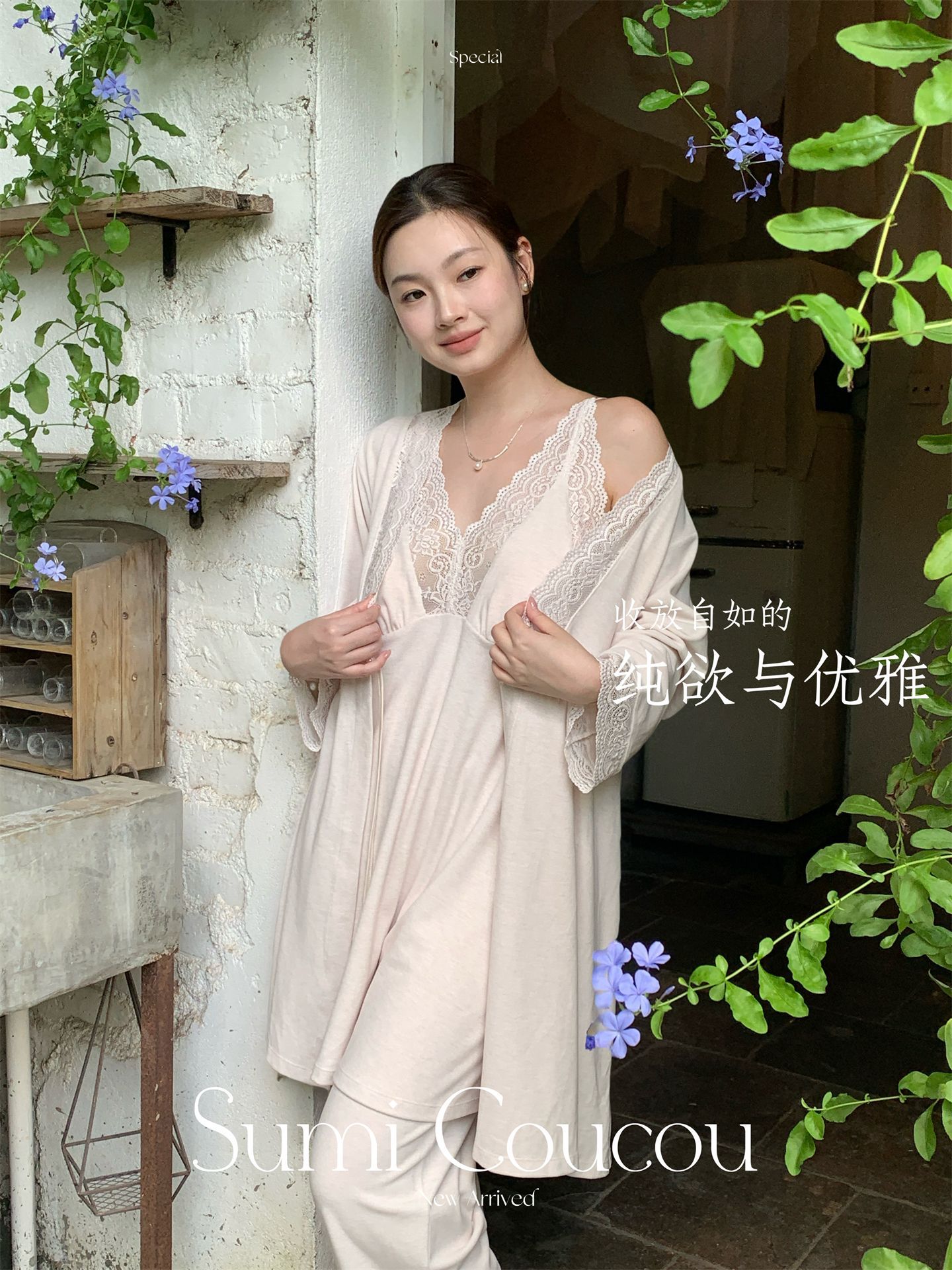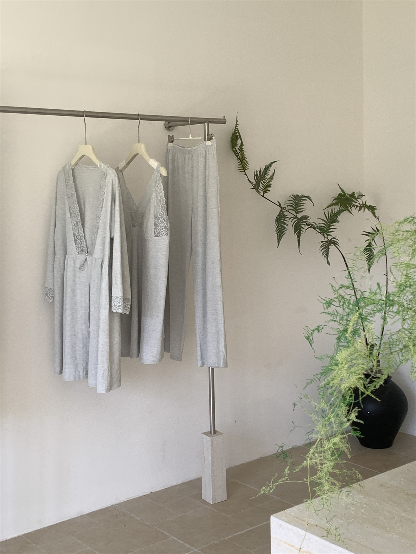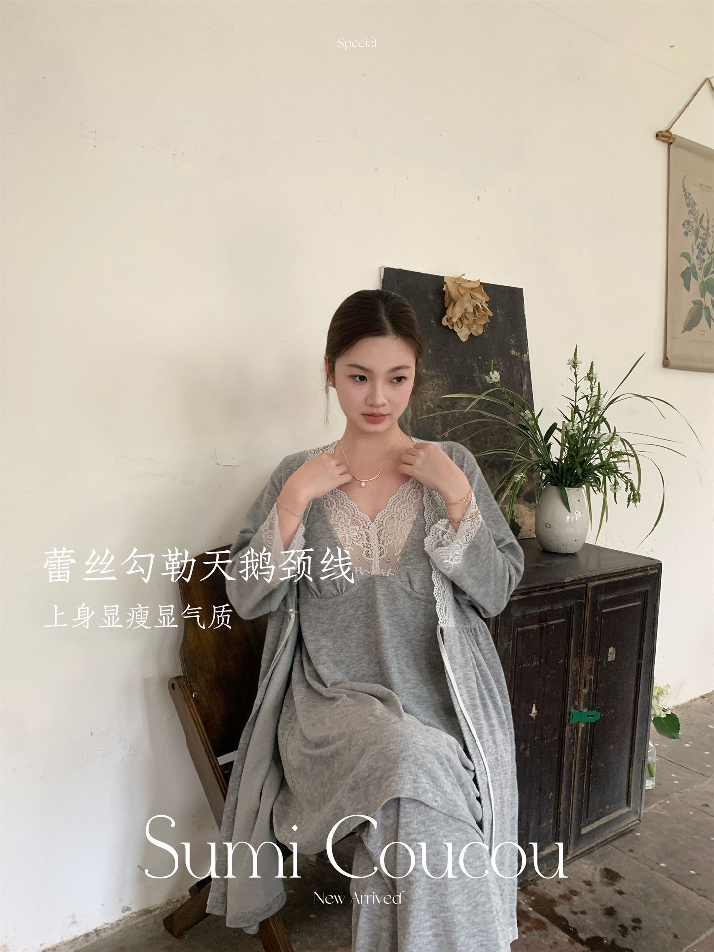 轻暖三件套!秋冬天鹅袍睡衣三件套 睡裙+裤子+外袍性感带胸垫睡袍家居服法式蕾丝秋冬季