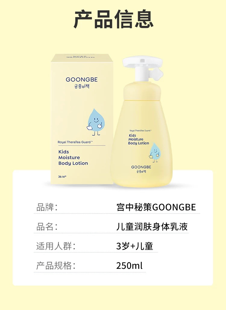 【长效保湿】宫中秘策Goongbe婴幼儿保湿乳 面部专用80 ml全身可用250ml清爽补水保湿深层滋养