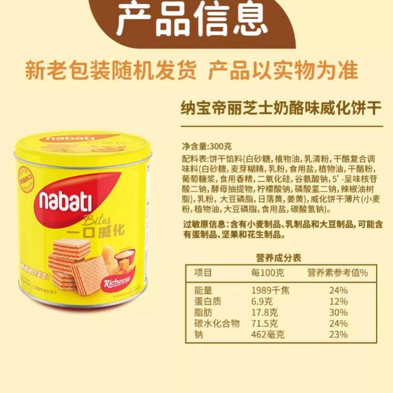 纳宝帝丽芝士 进口奶酪味威化饼干 300g/罐
