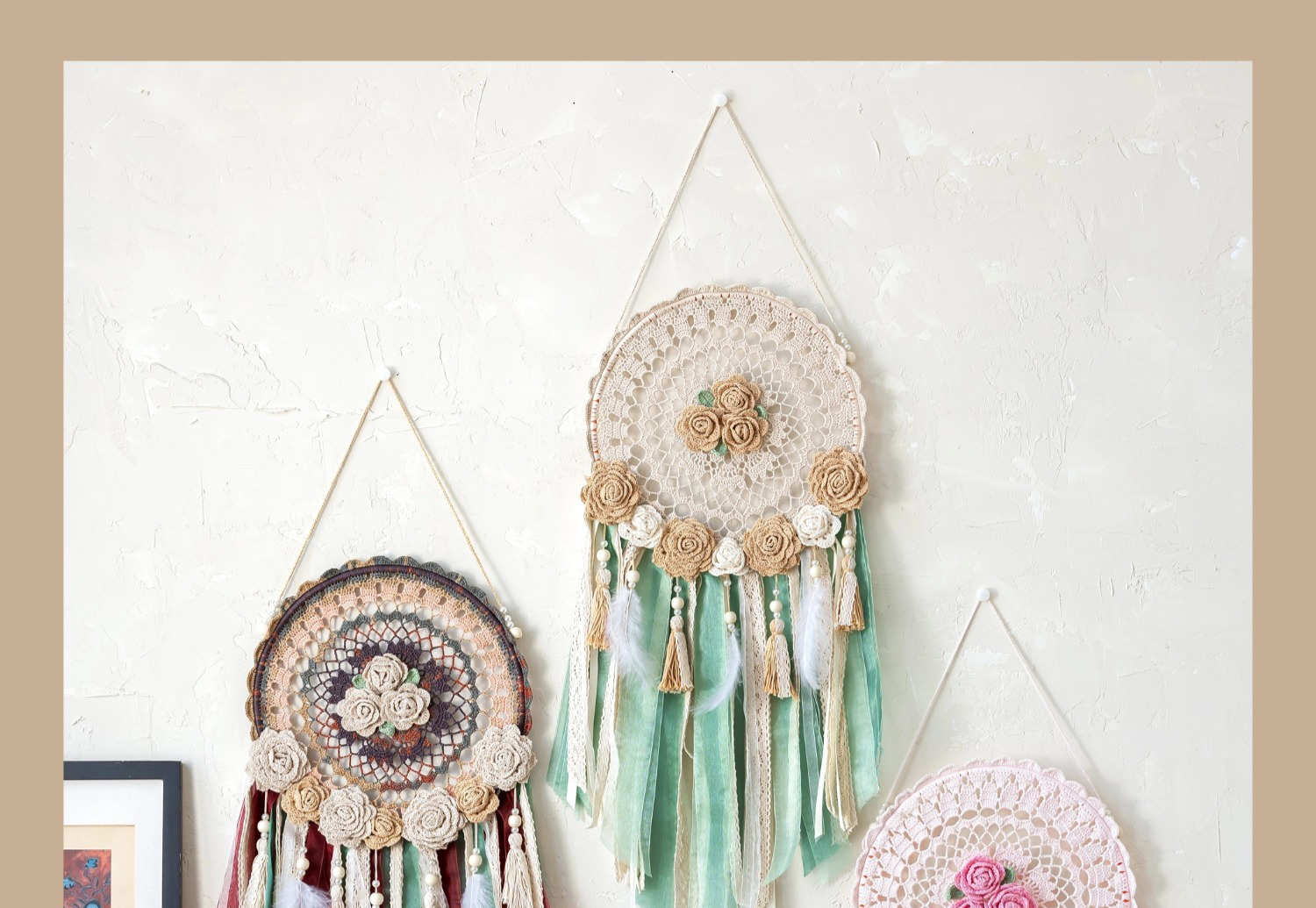 苏苏姐家蔷薇捕梦网手工diy编织钩针蕾丝线毛线团自制材料包