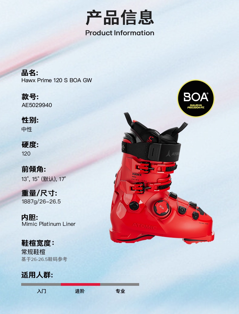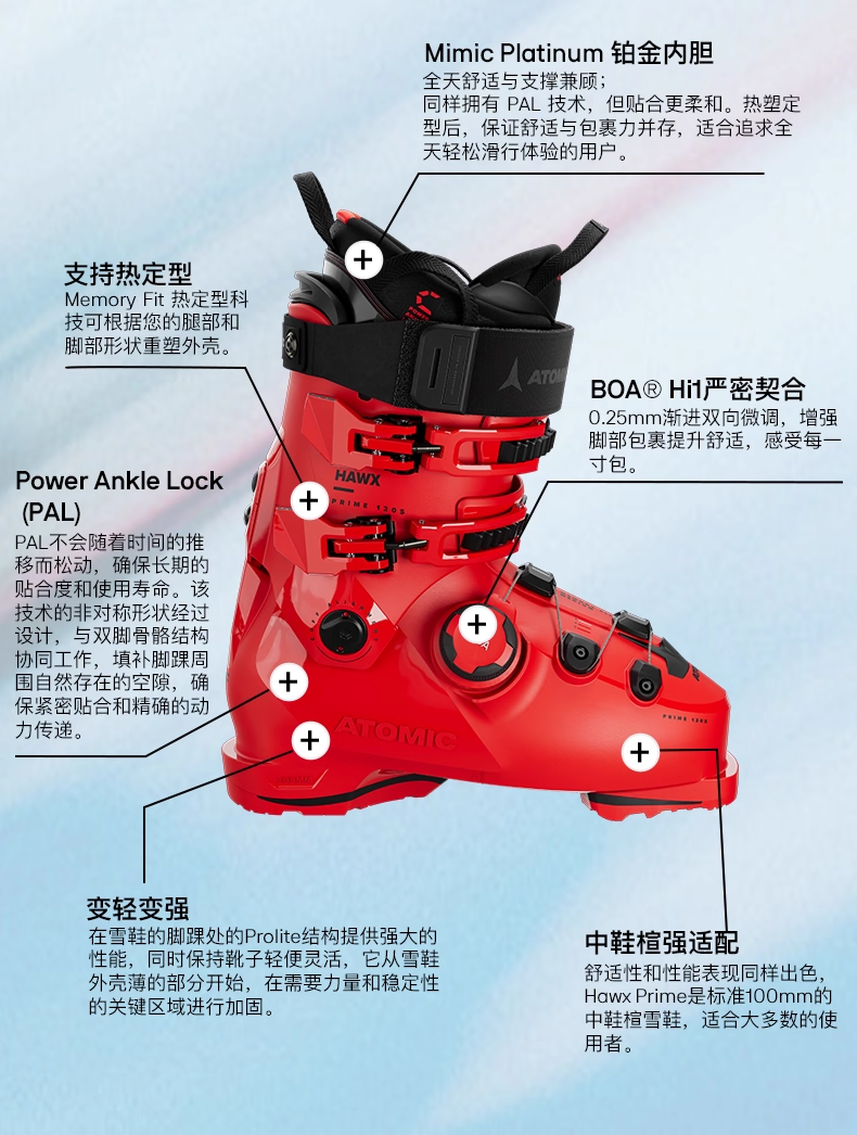 【新品到货】ATOMIC阿托米克双板雪鞋25/26常规鞋Hawx Prime 120 BOA滑雪鞋AE5029940