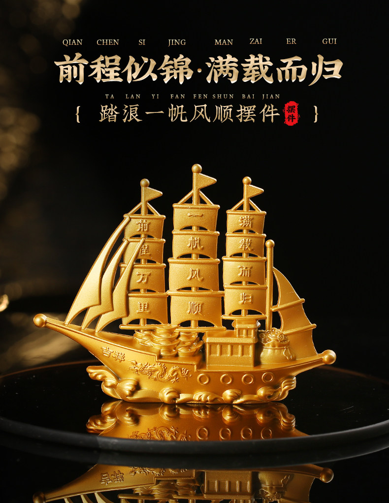 【祈愿吉品】踏浪一帆风顺摆件满载而归家居办公室酒柜装饰