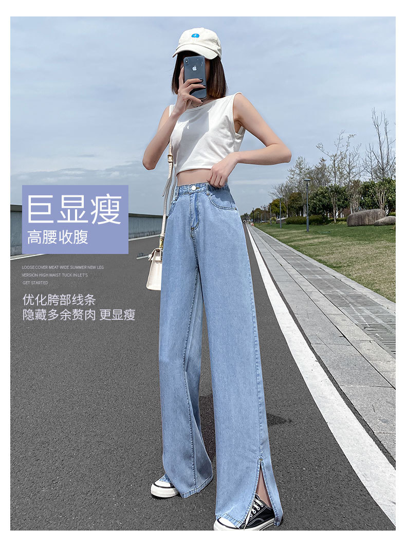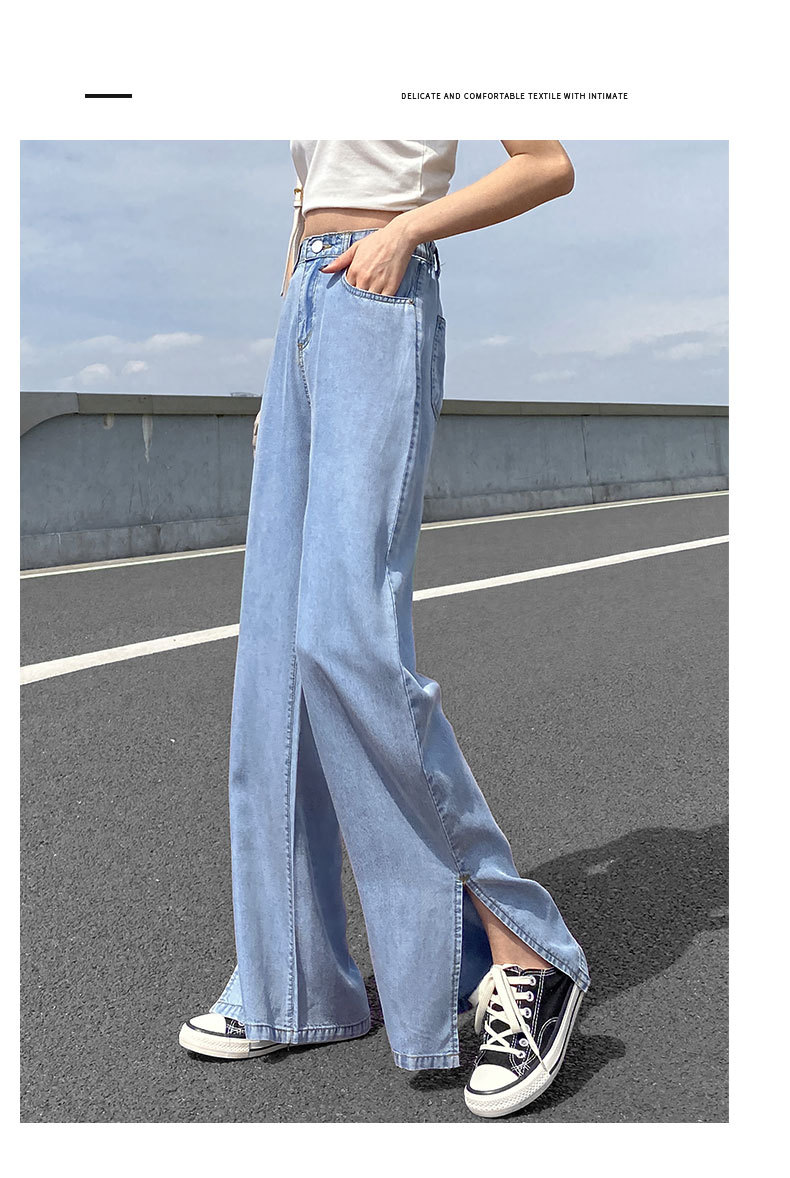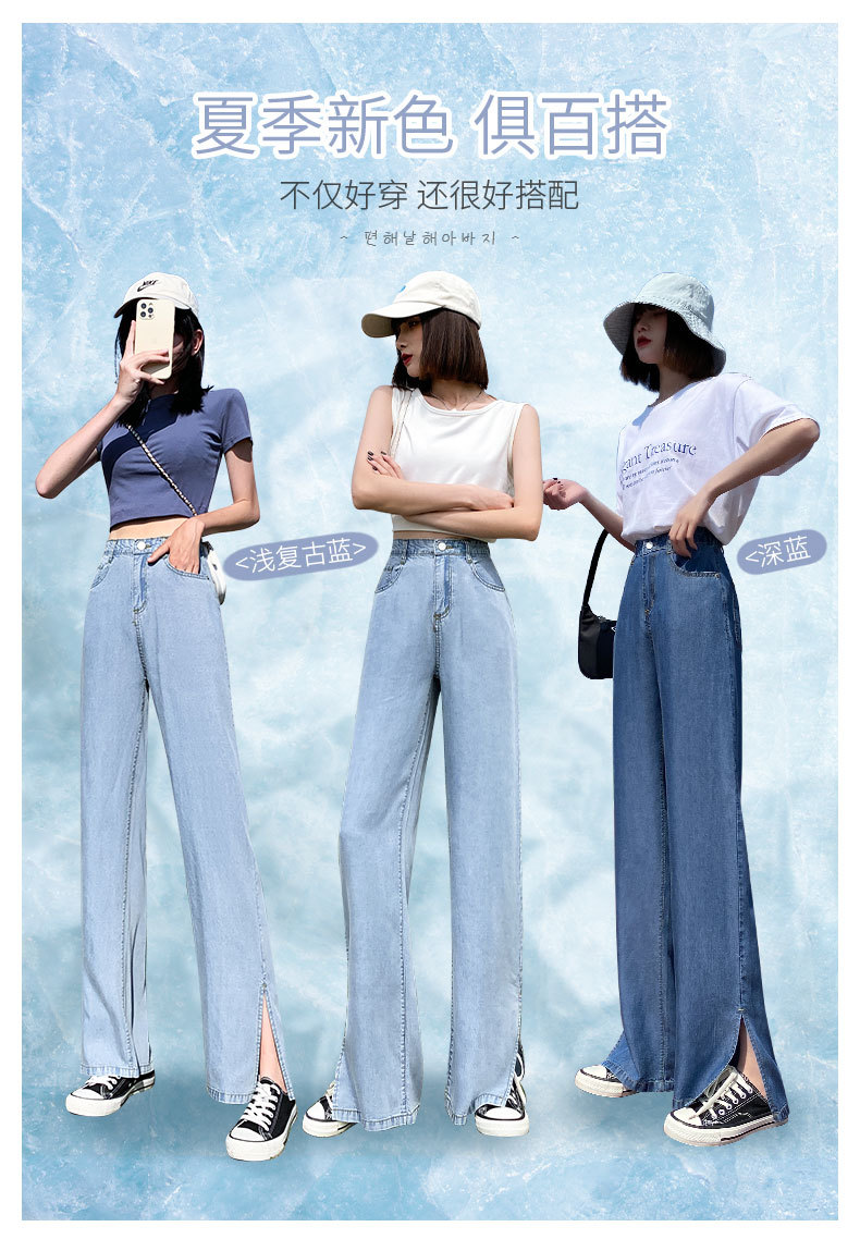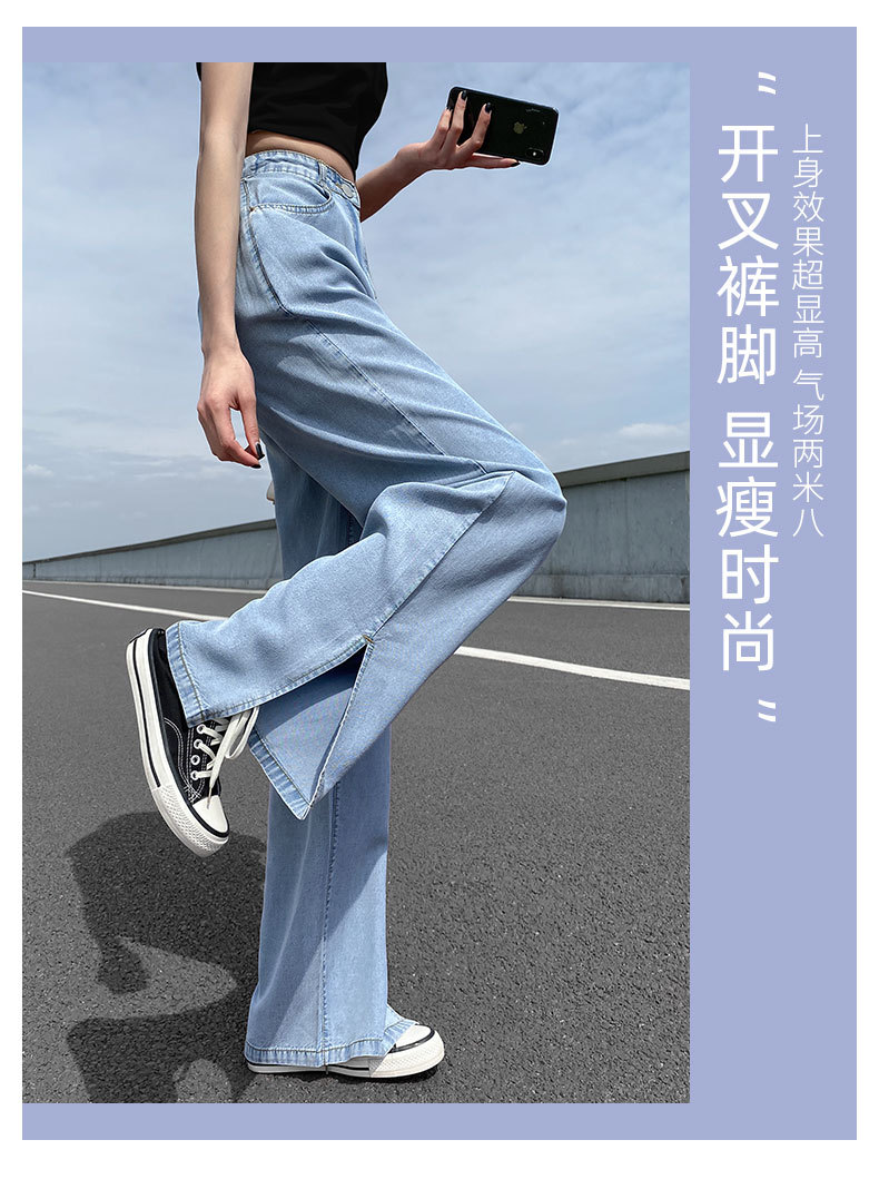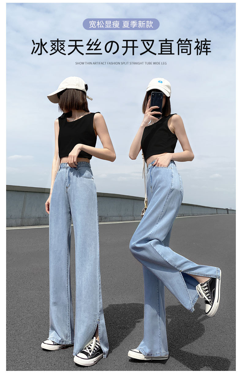 【服饰鞋包】开叉天丝牛仔阔腿裤女新款夏季薄款高腰垂感宽松直筒