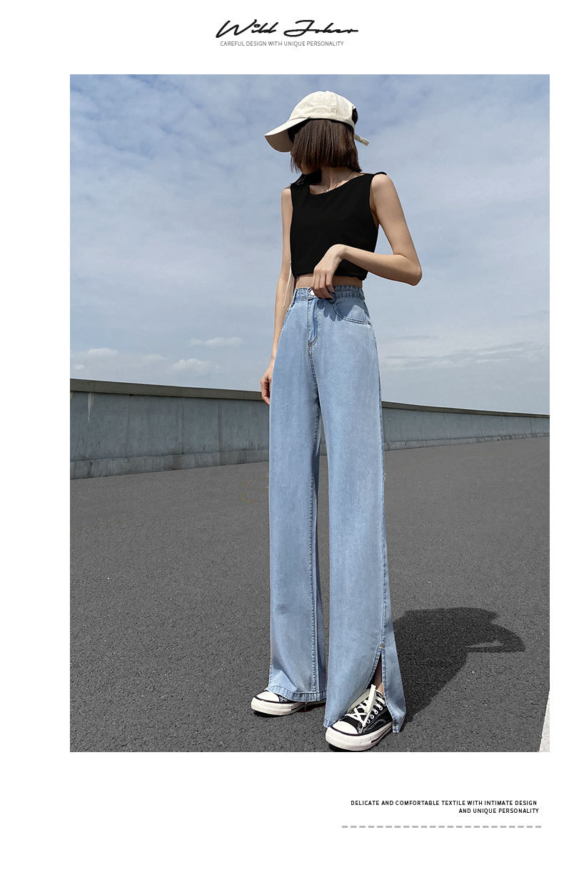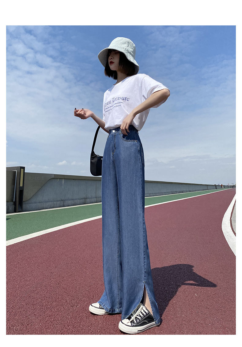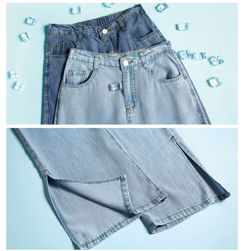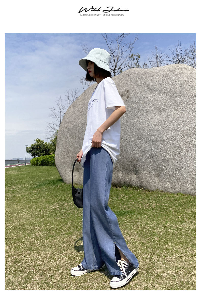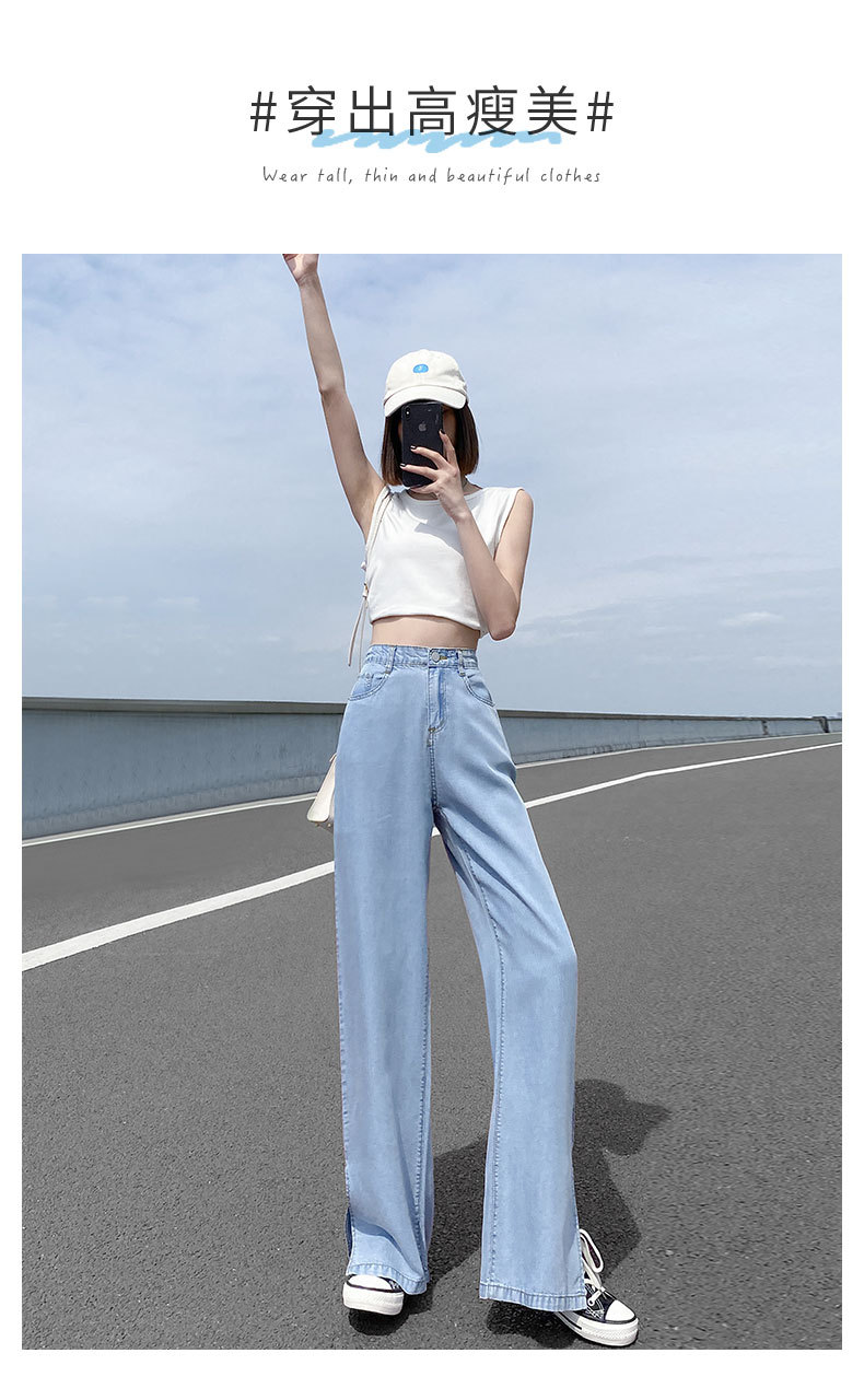 【服饰鞋包】开叉天丝牛仔阔腿裤女新款夏季薄款高腰垂感宽松直筒