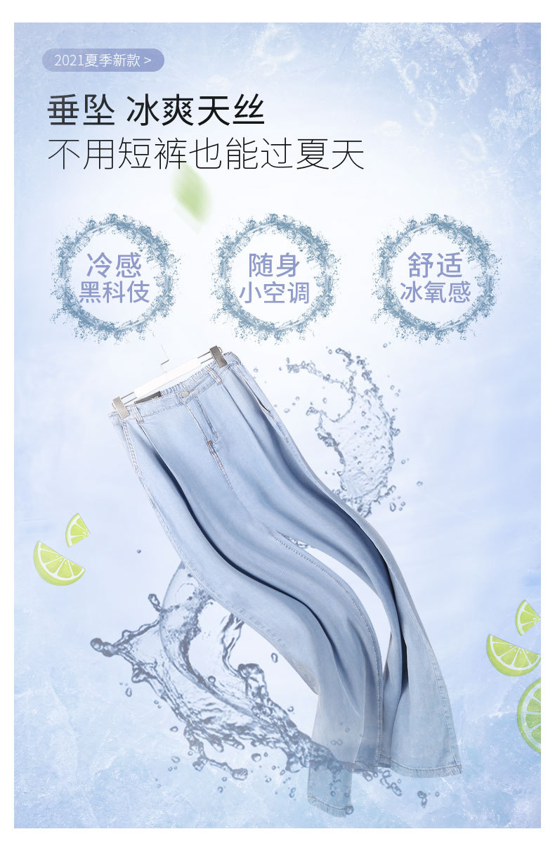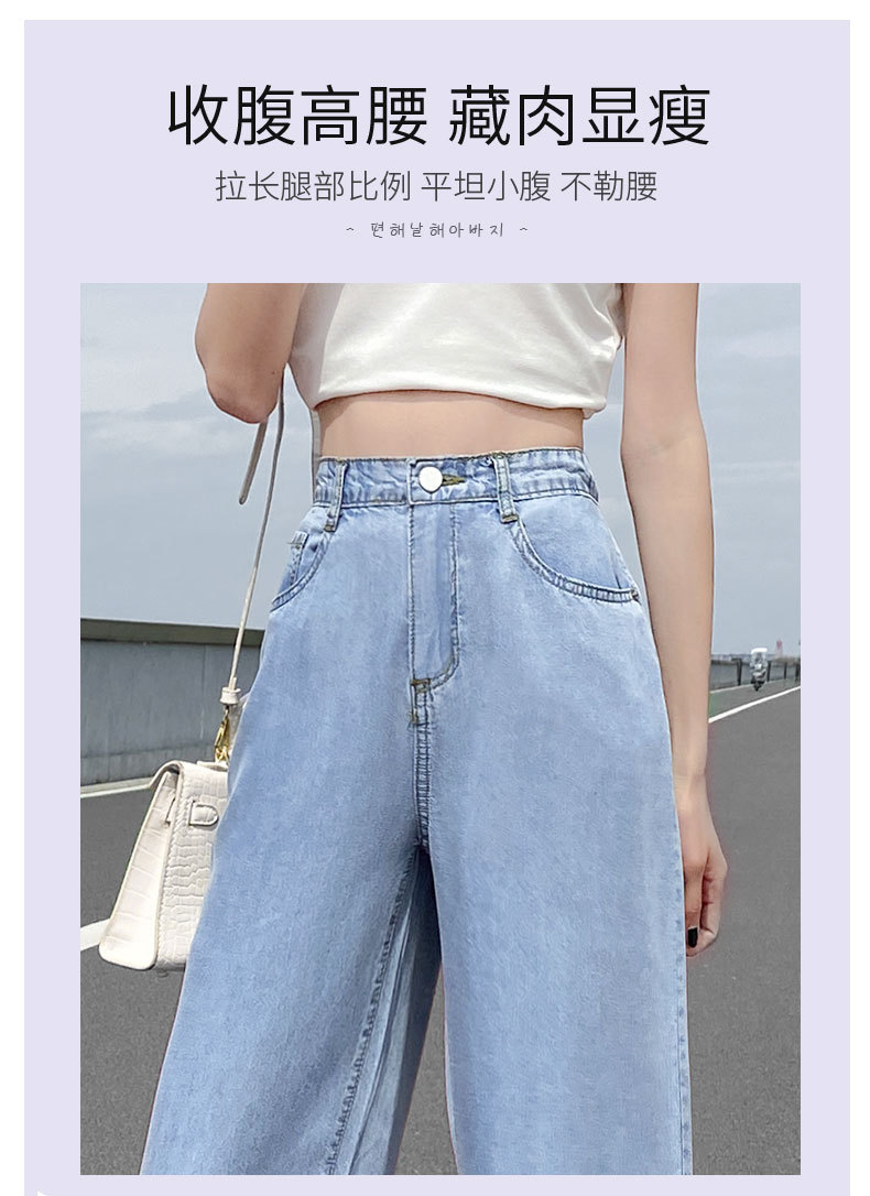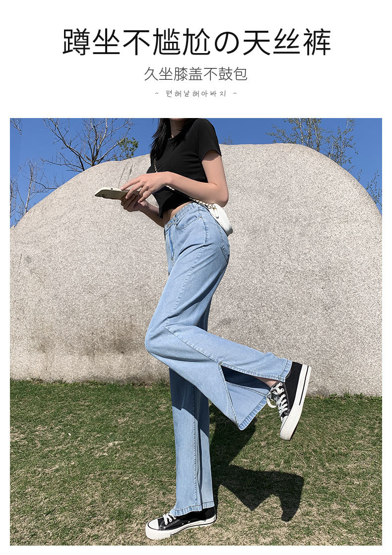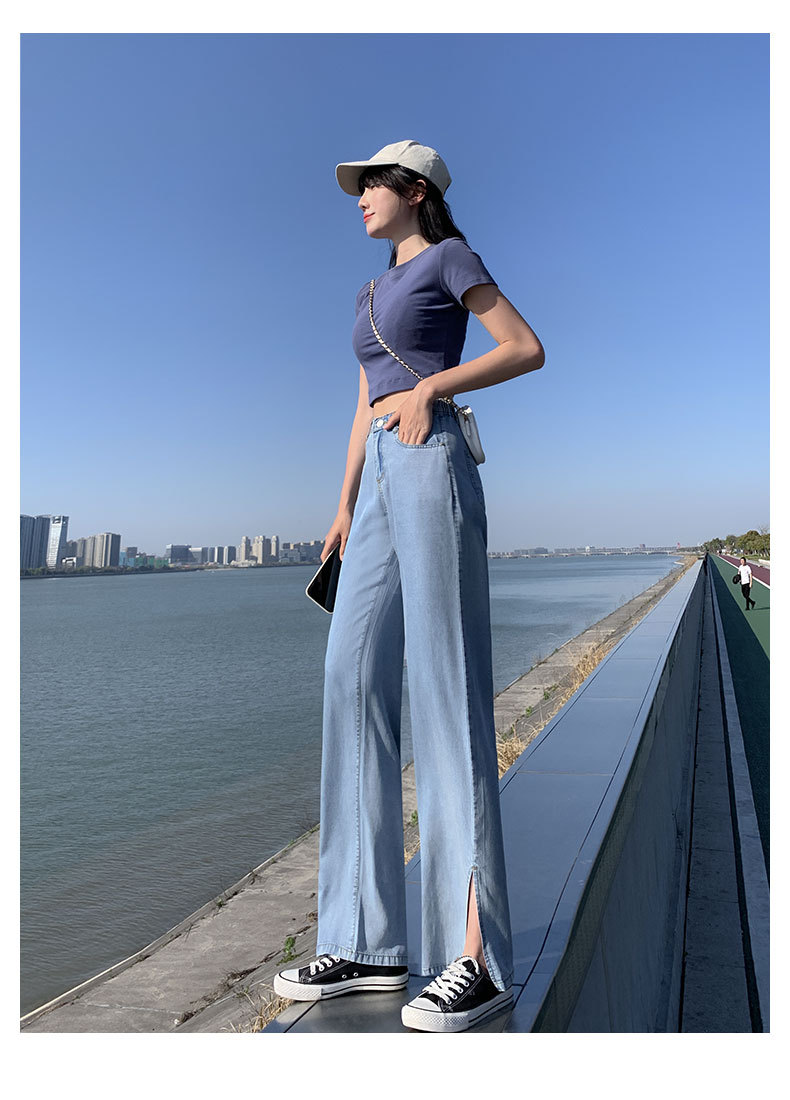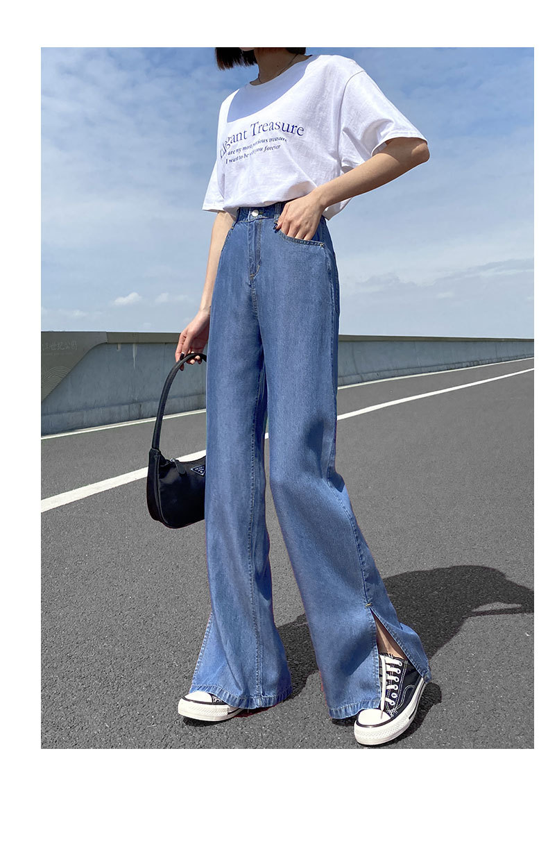 【服饰鞋包】开叉天丝牛仔阔腿裤女新款夏季薄款高腰垂感宽松直筒