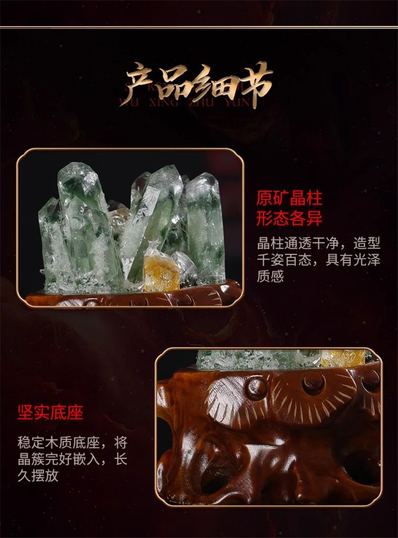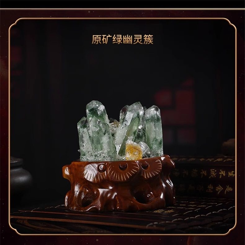 【祈愿吉品】原矿活水晶簇原石摆件绿幽灵聚宝盆乔迁新居