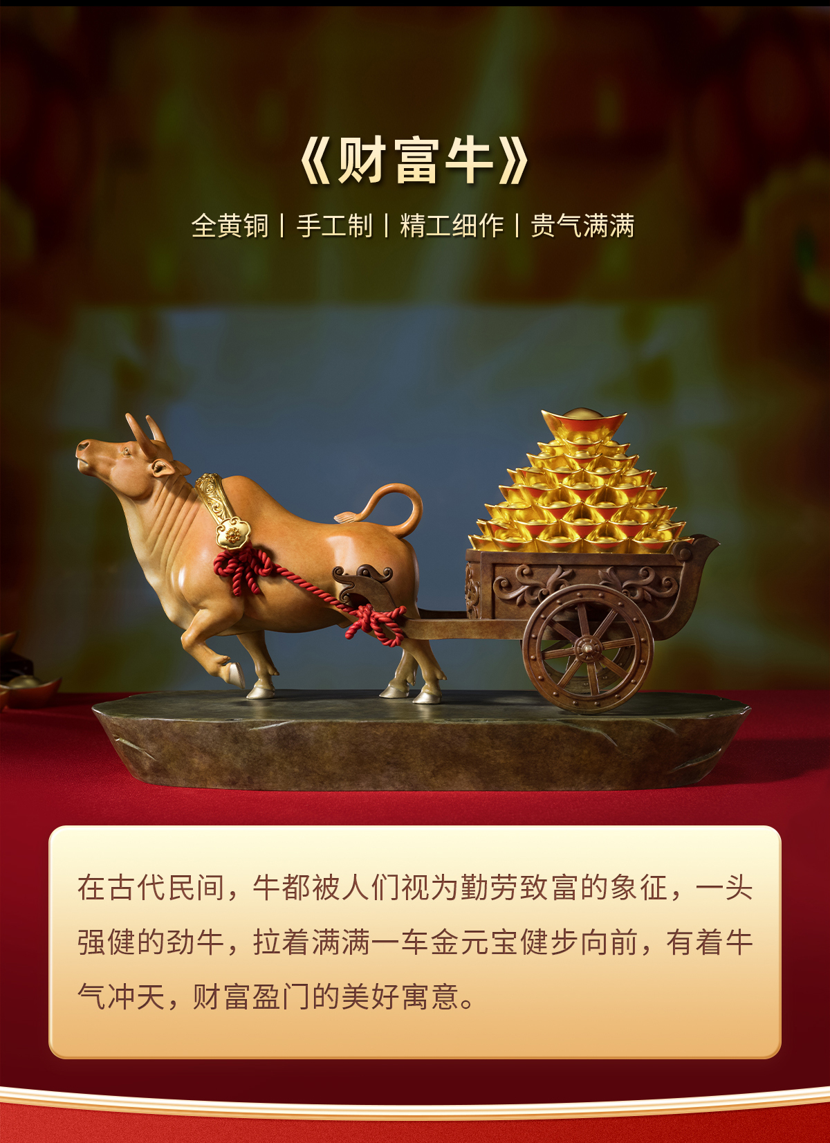 铜师傅《财富牛》客厅桌面铜牛摆件 家居装饰工艺品 开业摆件