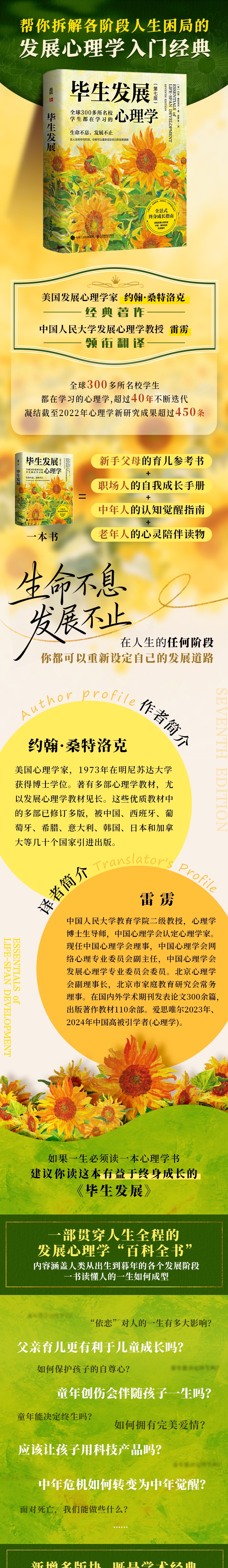 毕生发展 心理学第7七版桑特洛克毕生发展心理学入门雷雳领衔翻译发展心理学应用心理学书籍