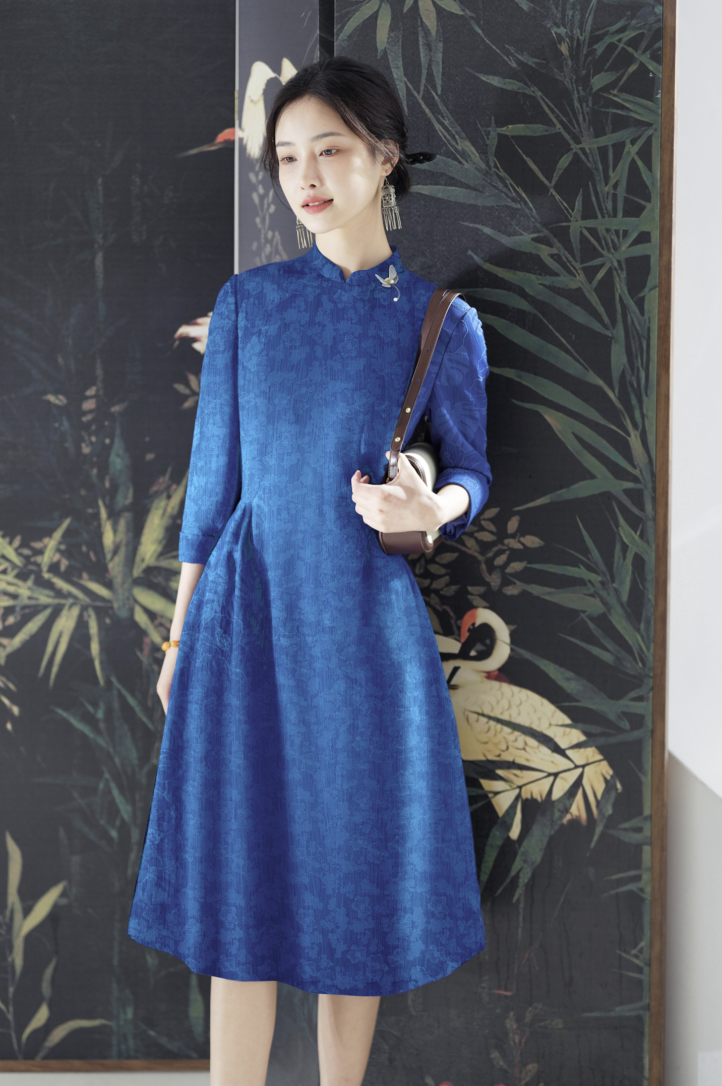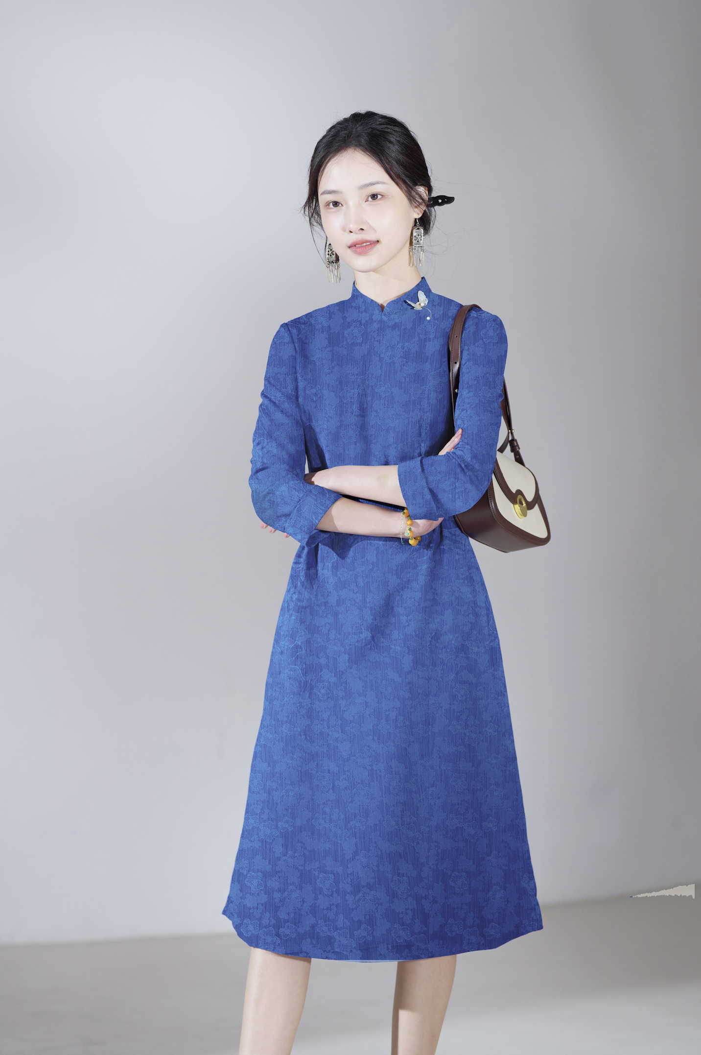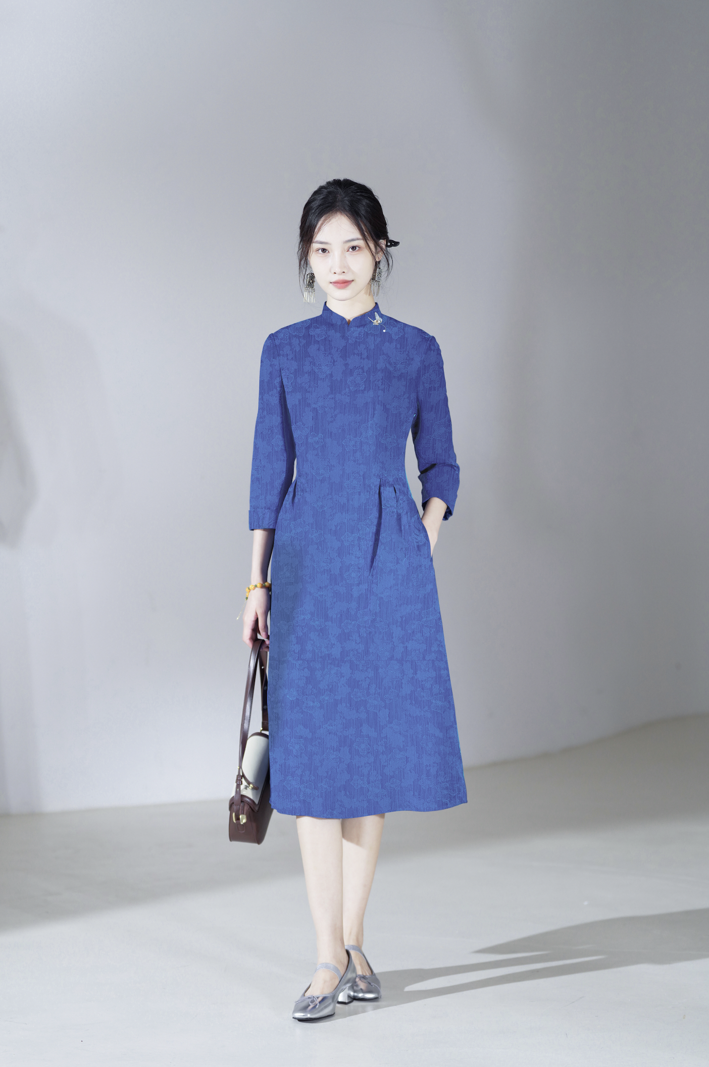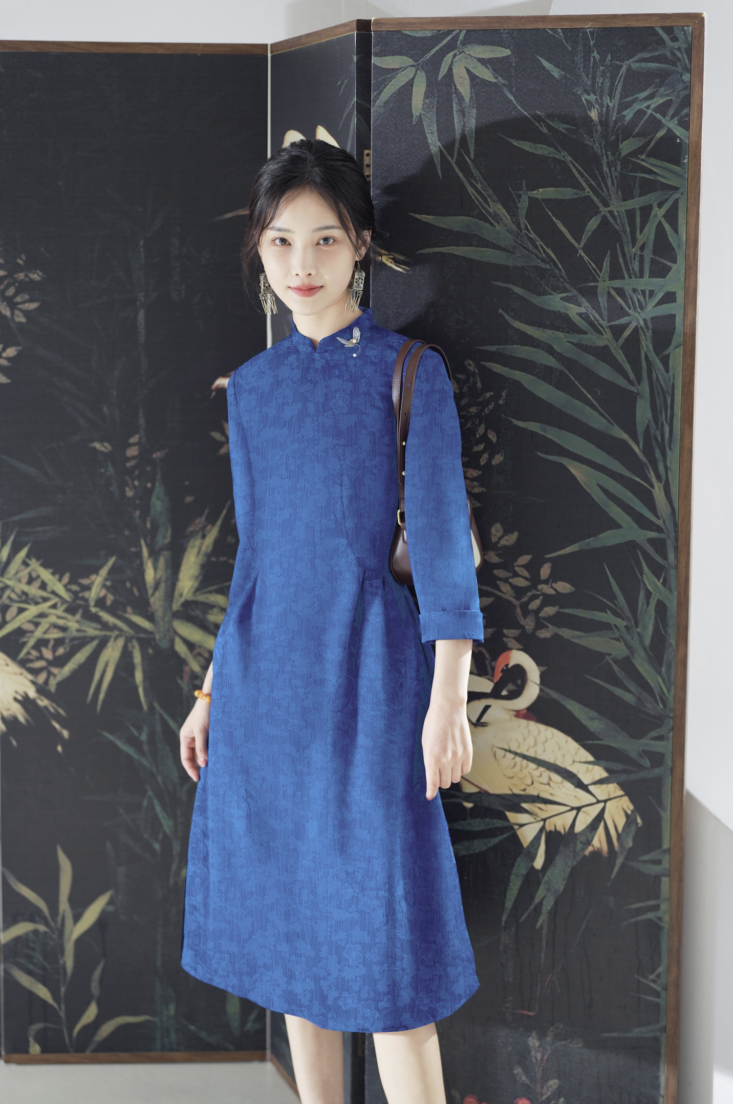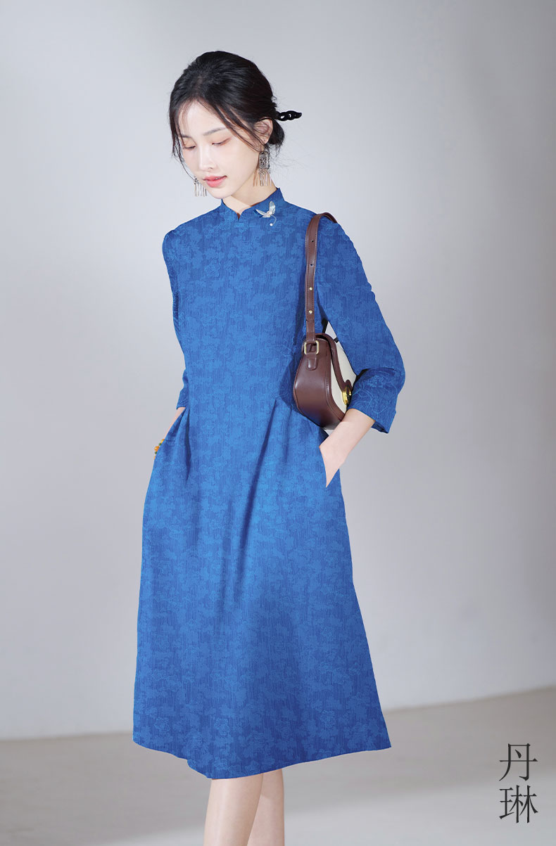 #知性文艺丹林蓝旗袍连衣裙「丹琳」