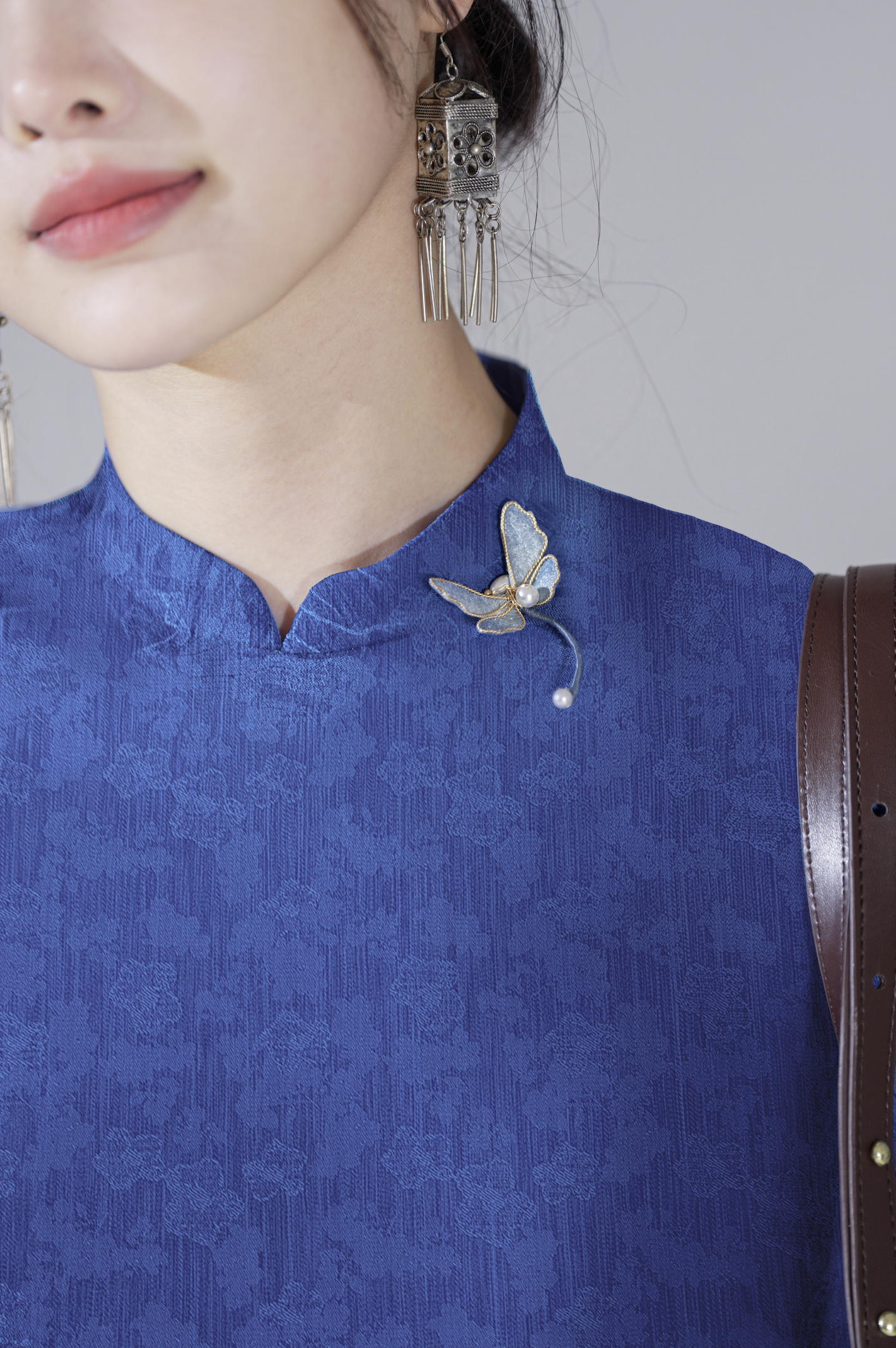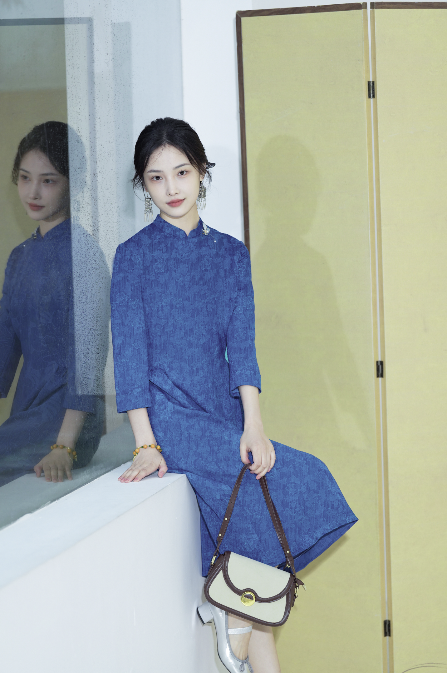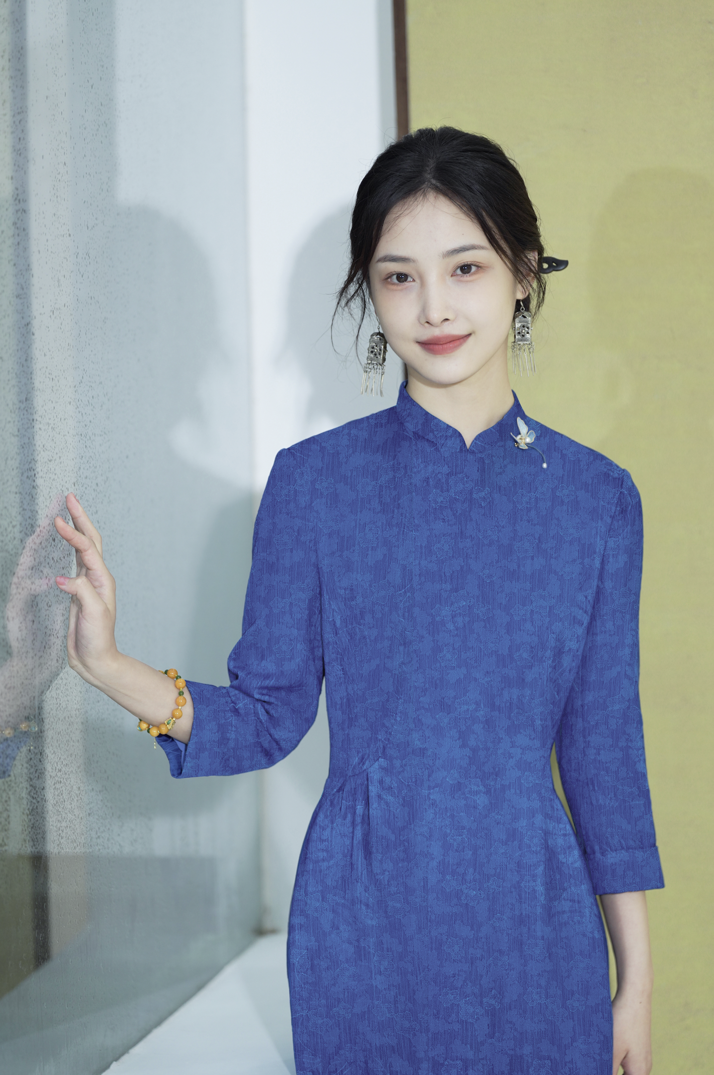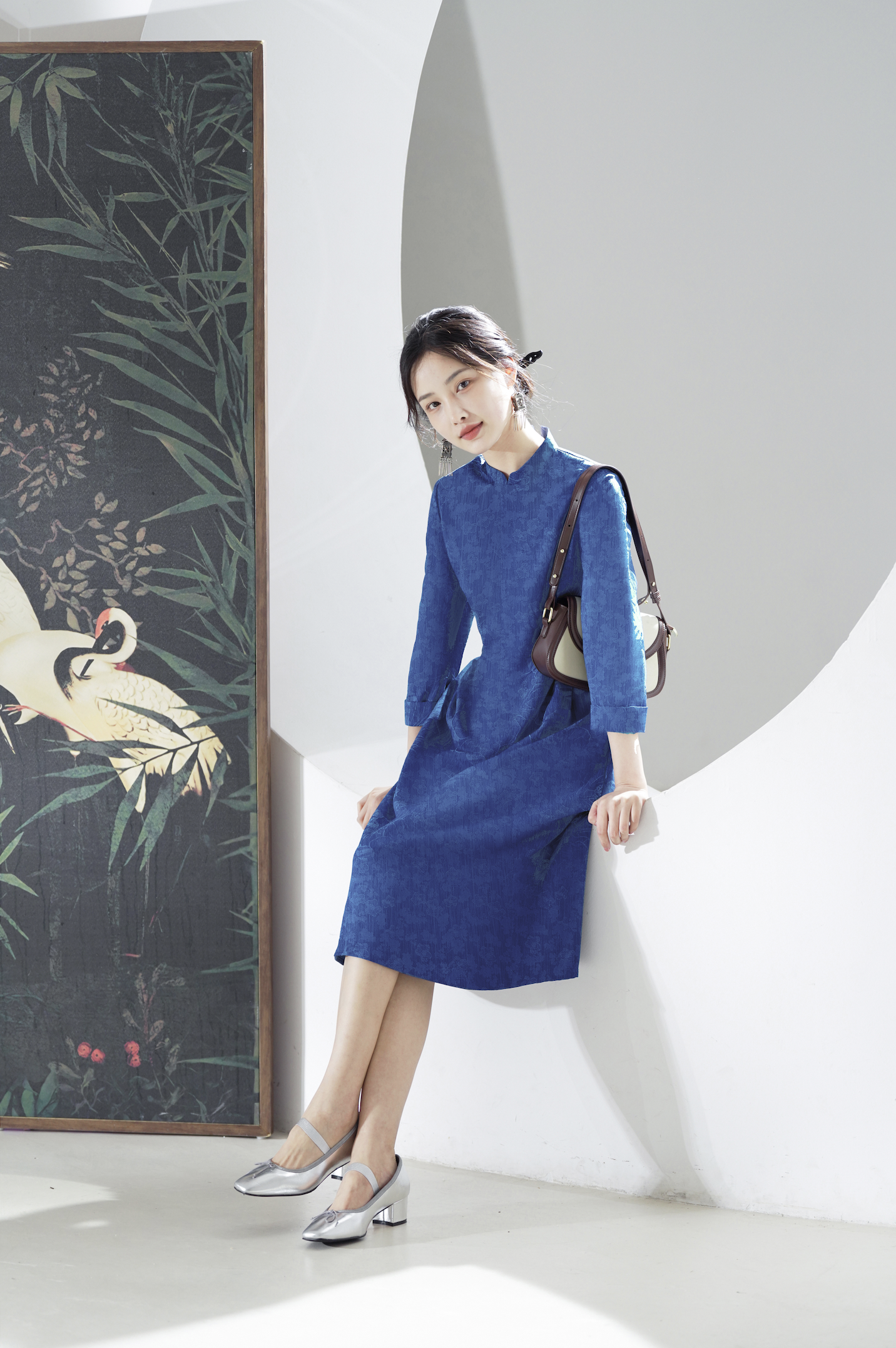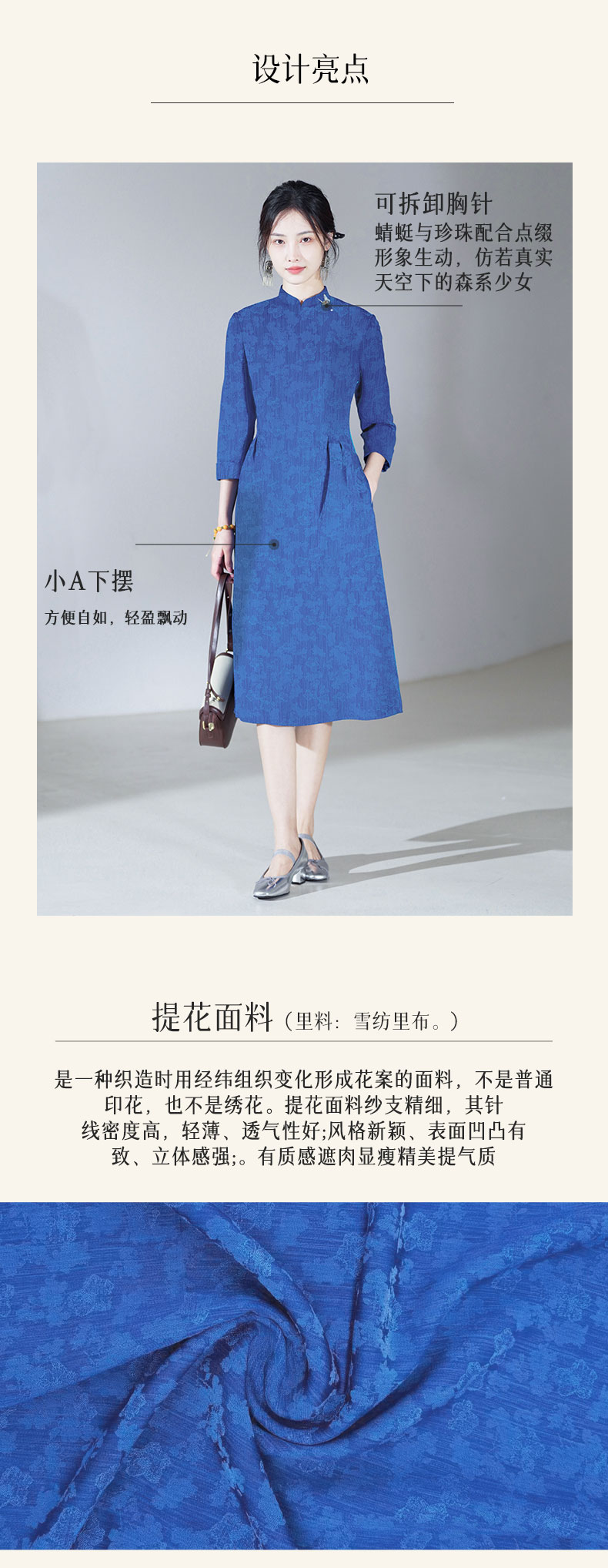 #知性文艺丹林蓝旗袍连衣裙「丹琳」