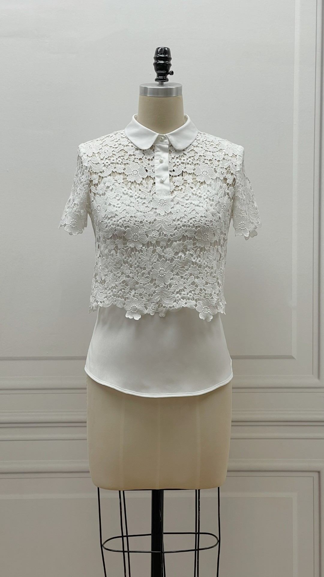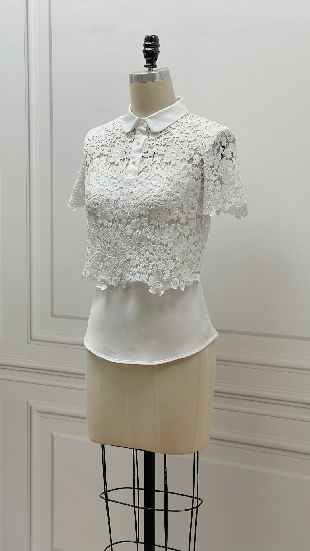 定制-轻奢Vintage-古着新穿-法式短款Lace上衣镂空修身 2202009