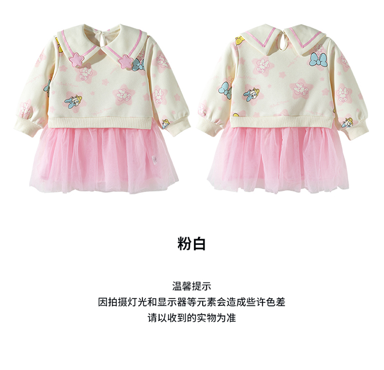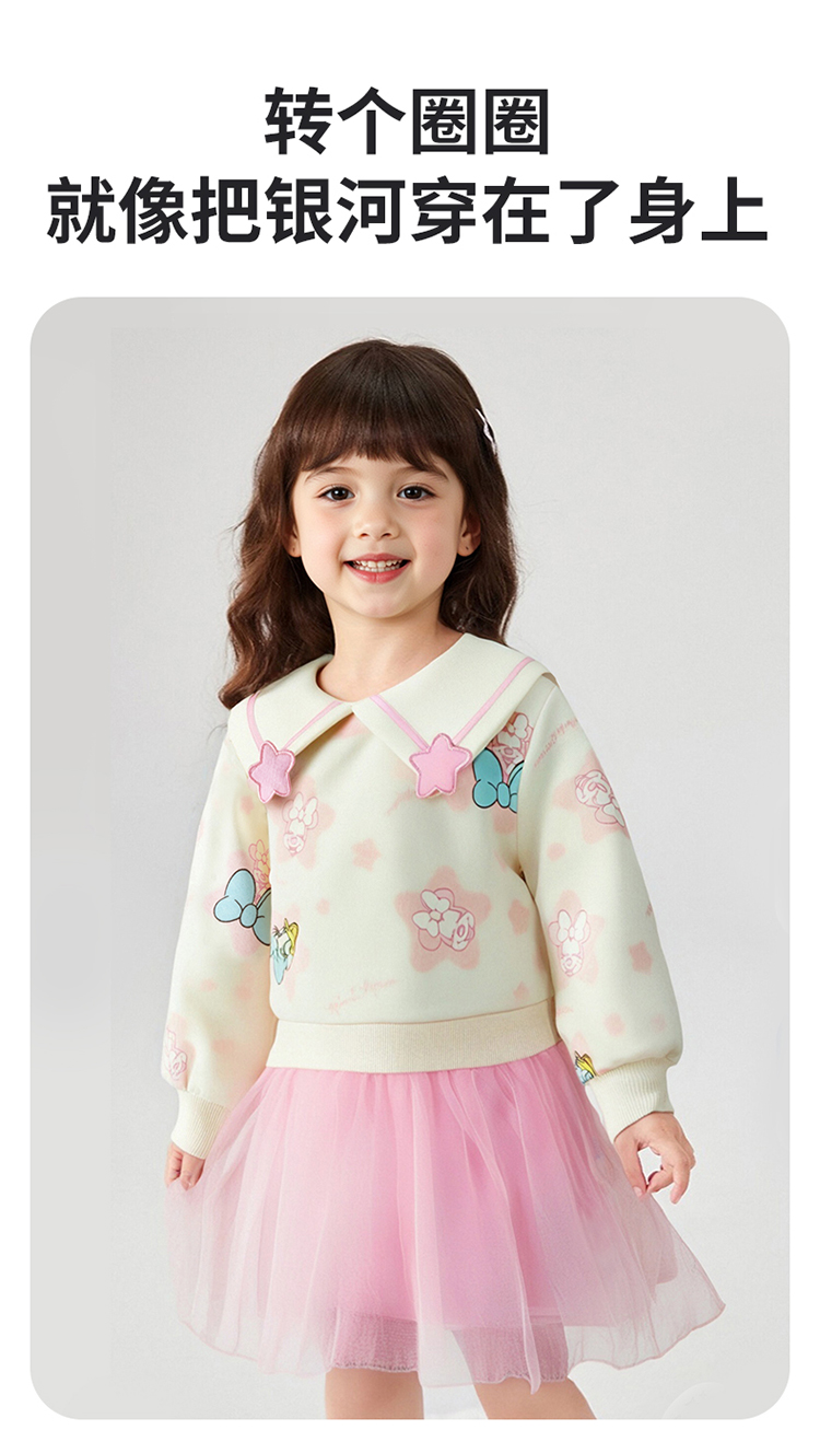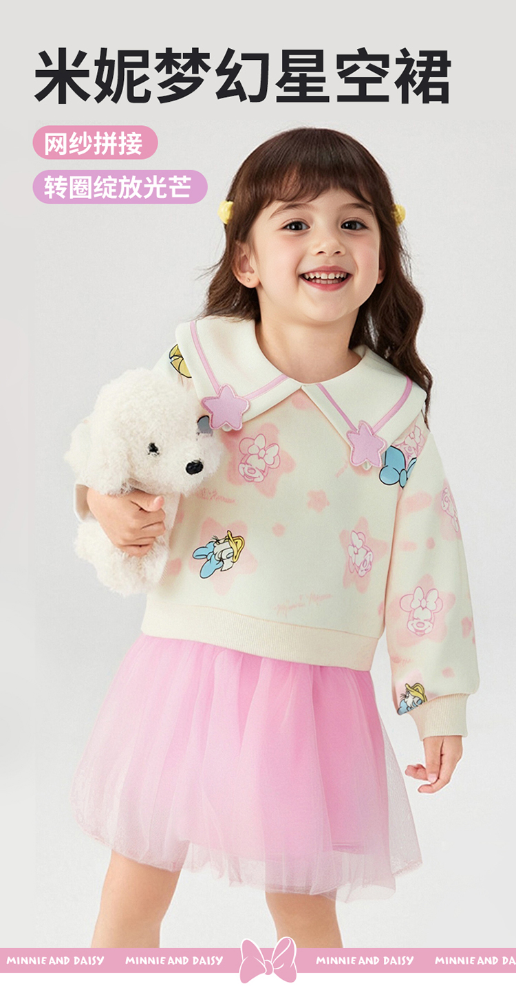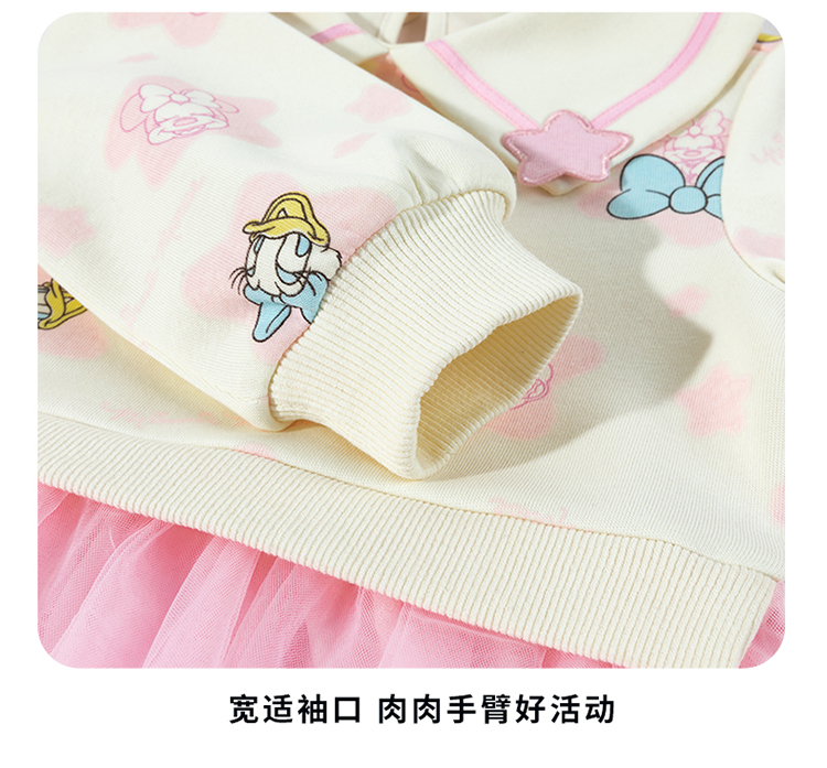 迪士尼童装春秋季女童洋气卫衣裙小女孩米妮黛丝印花长袖连衣裙ZD3EQ001