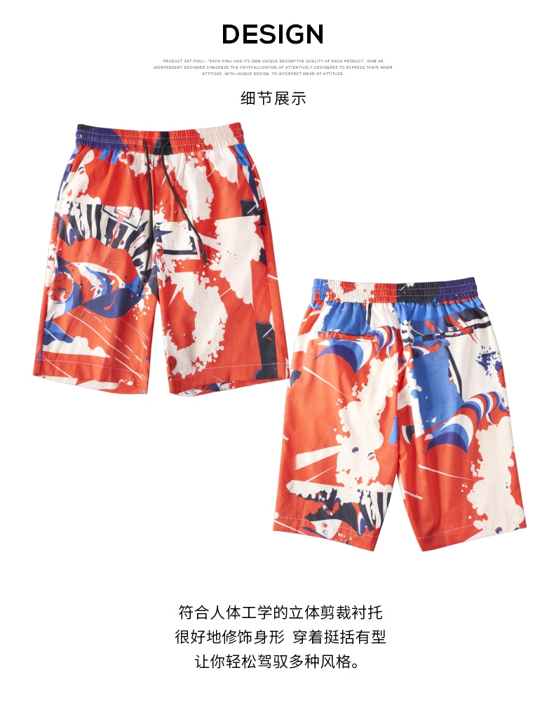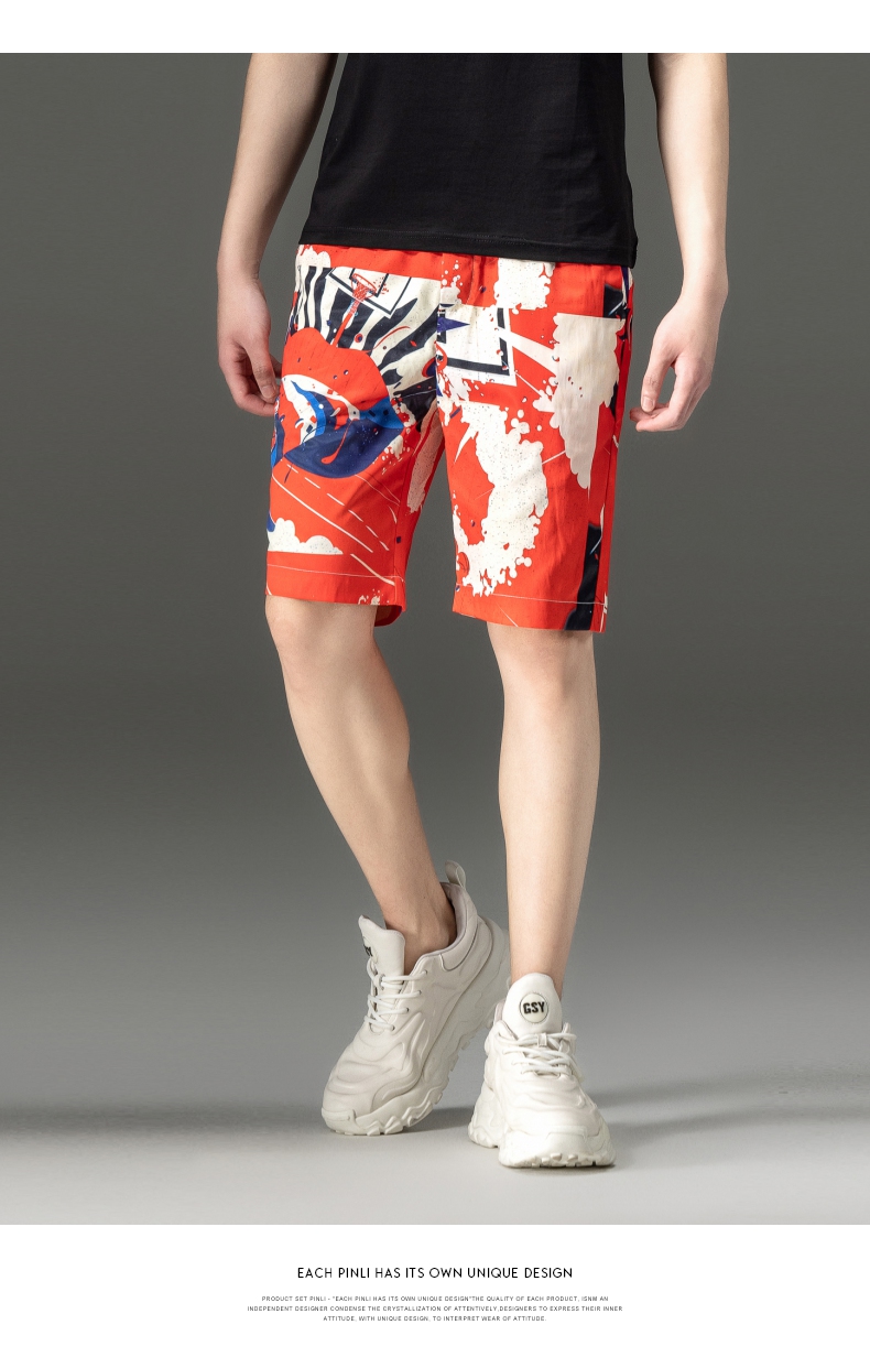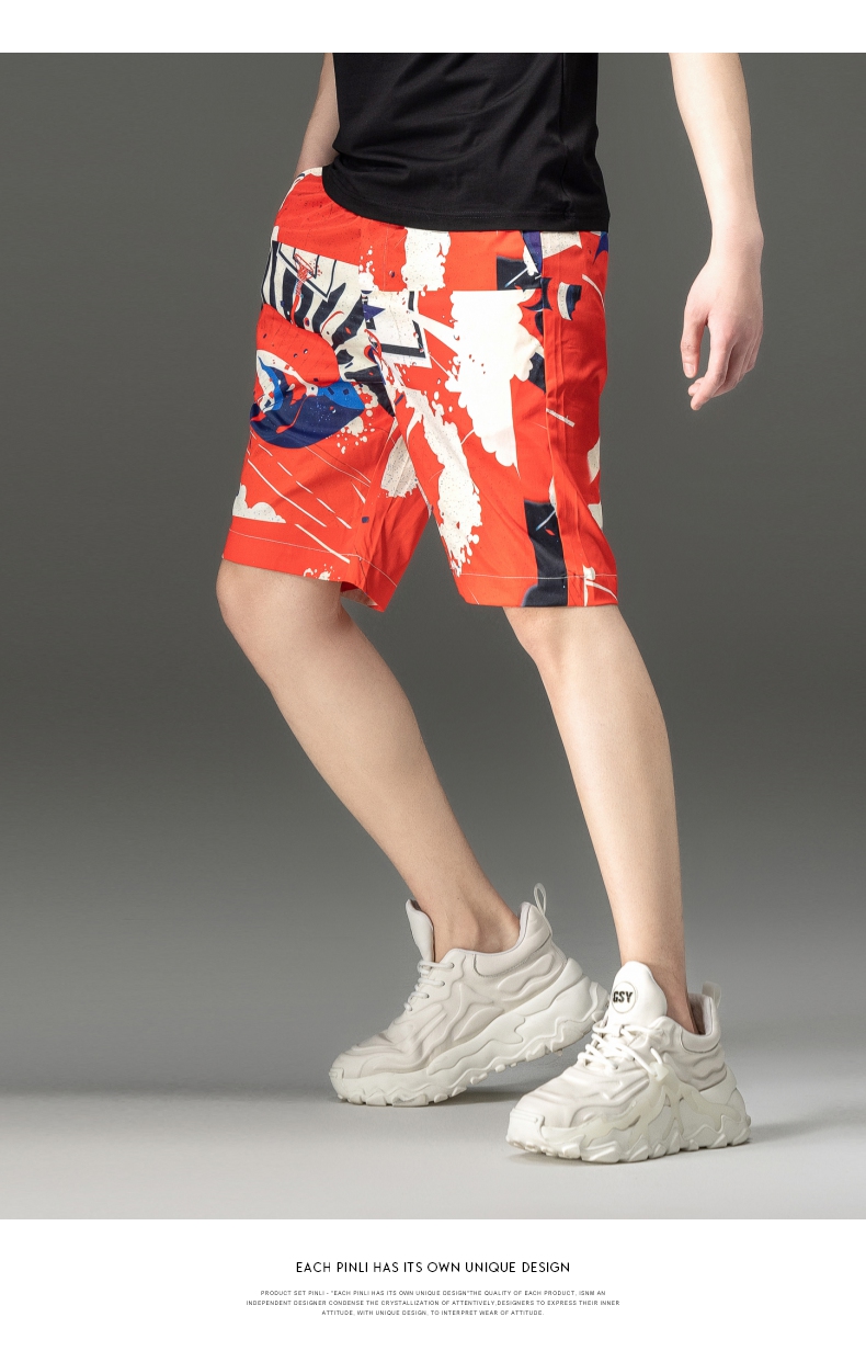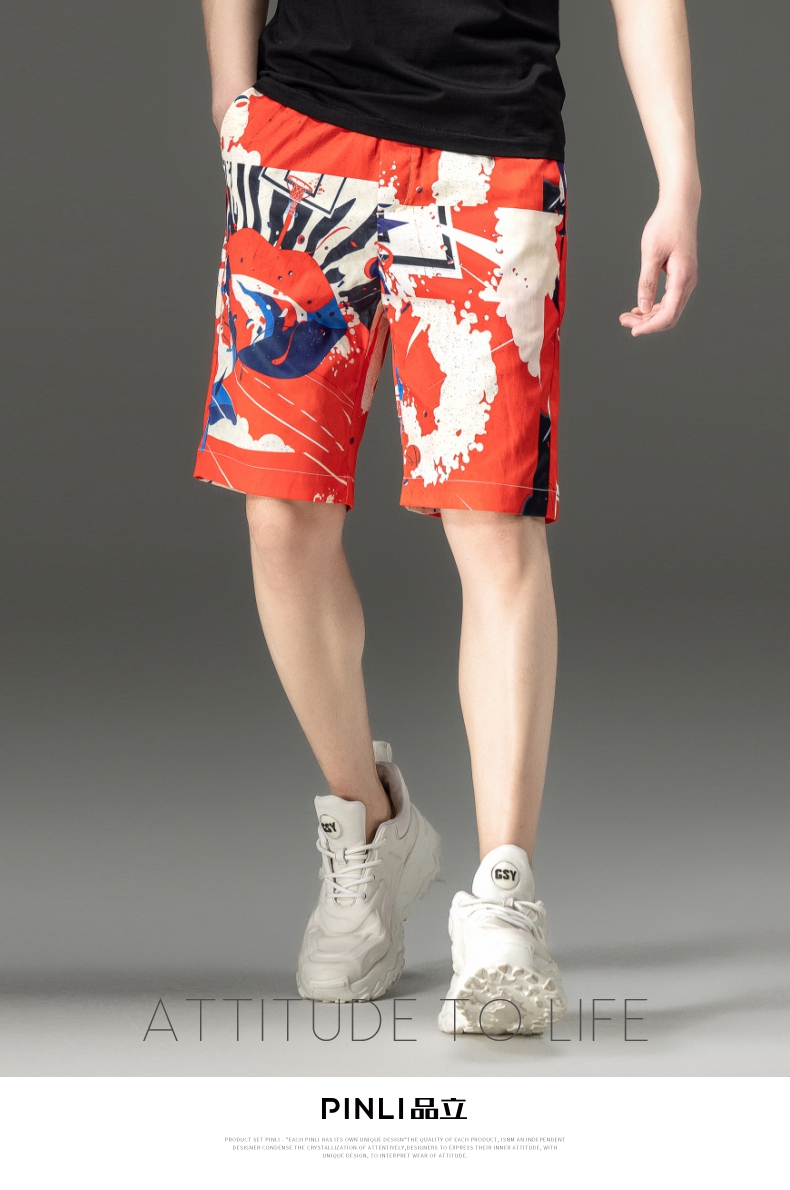 PINLI品立2024夏季新款男装裤子直筒印花休闲短裤潮牌百搭沙滩裤B242117034