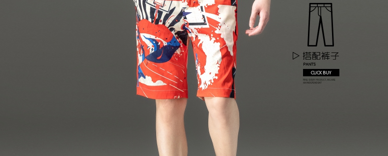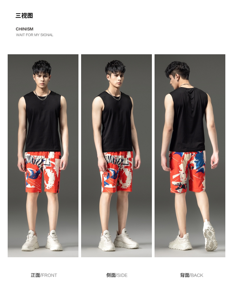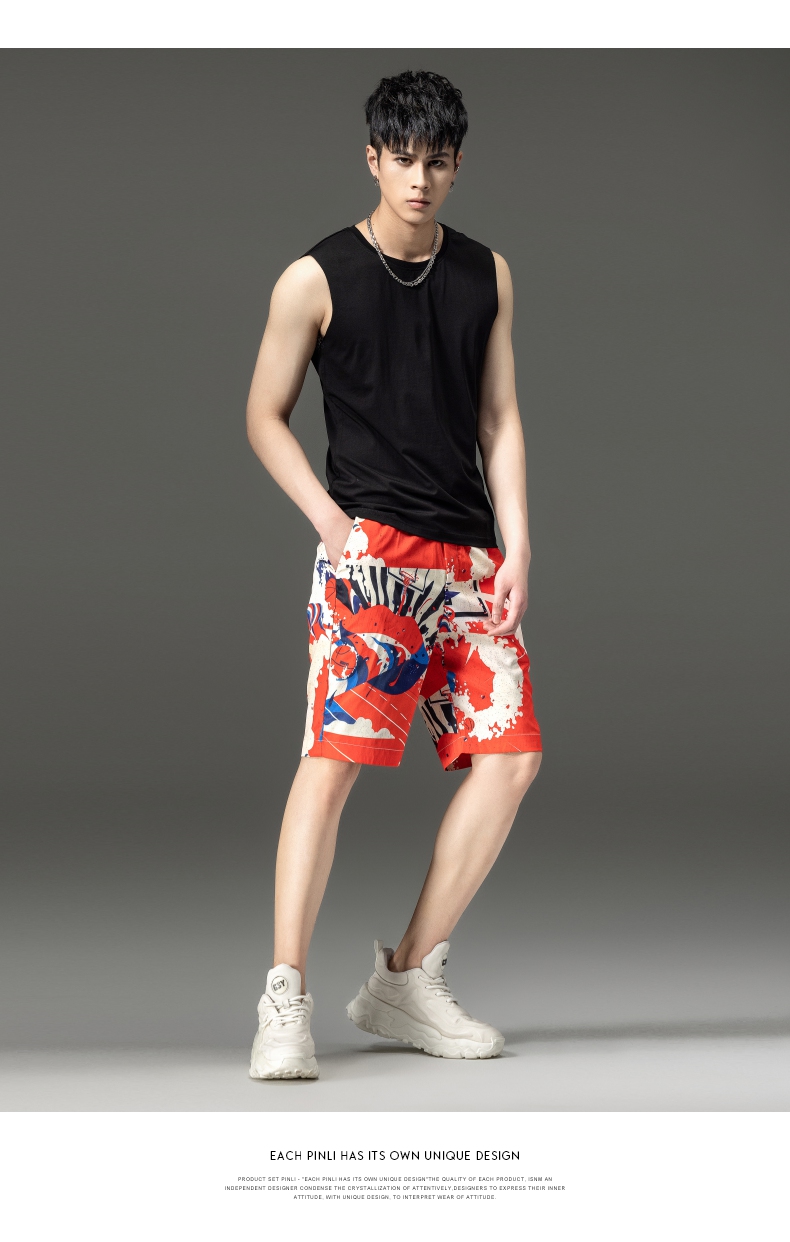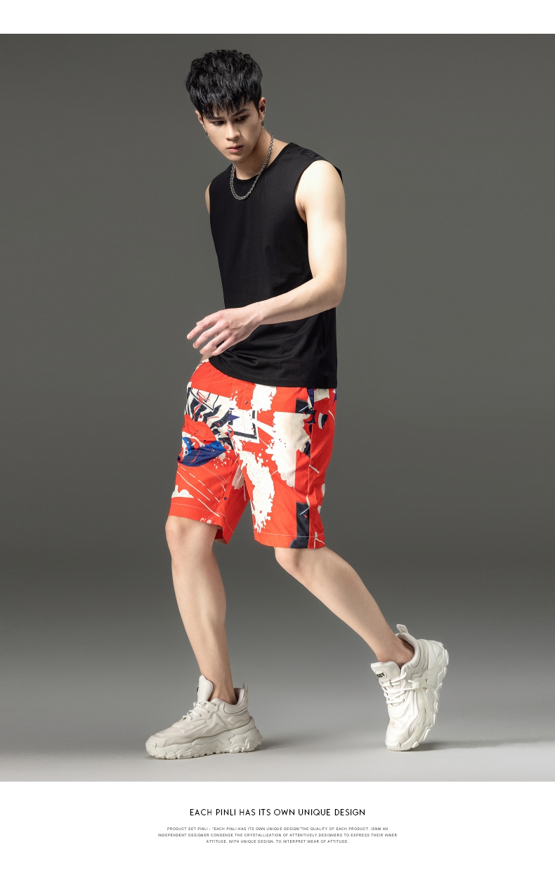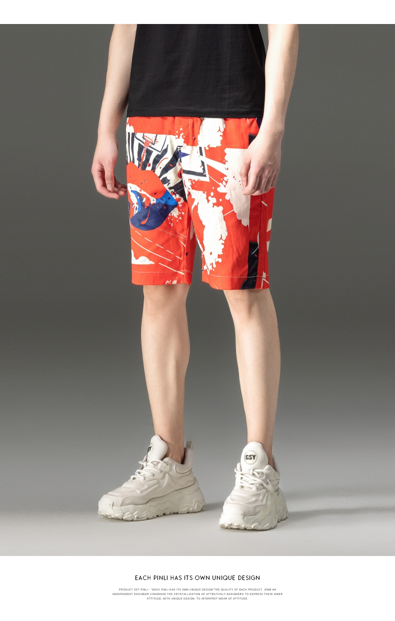 PINLI品立2024夏季新款男装裤子直筒印花休闲短裤潮牌百搭沙滩裤B242117034
