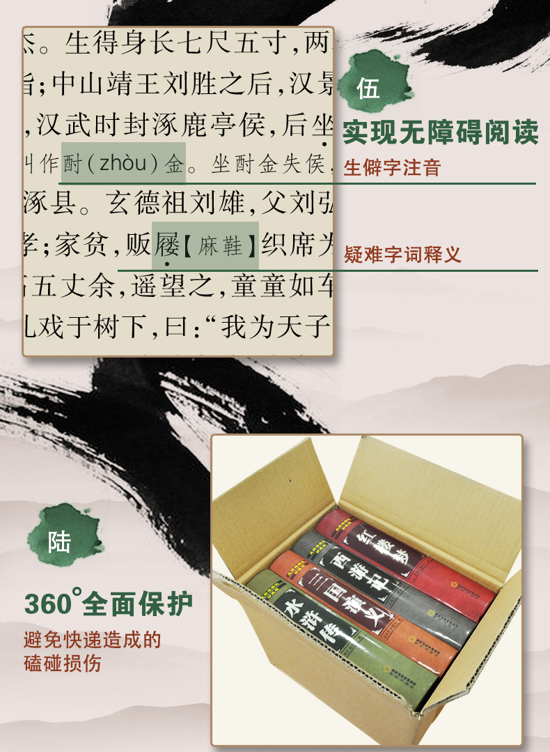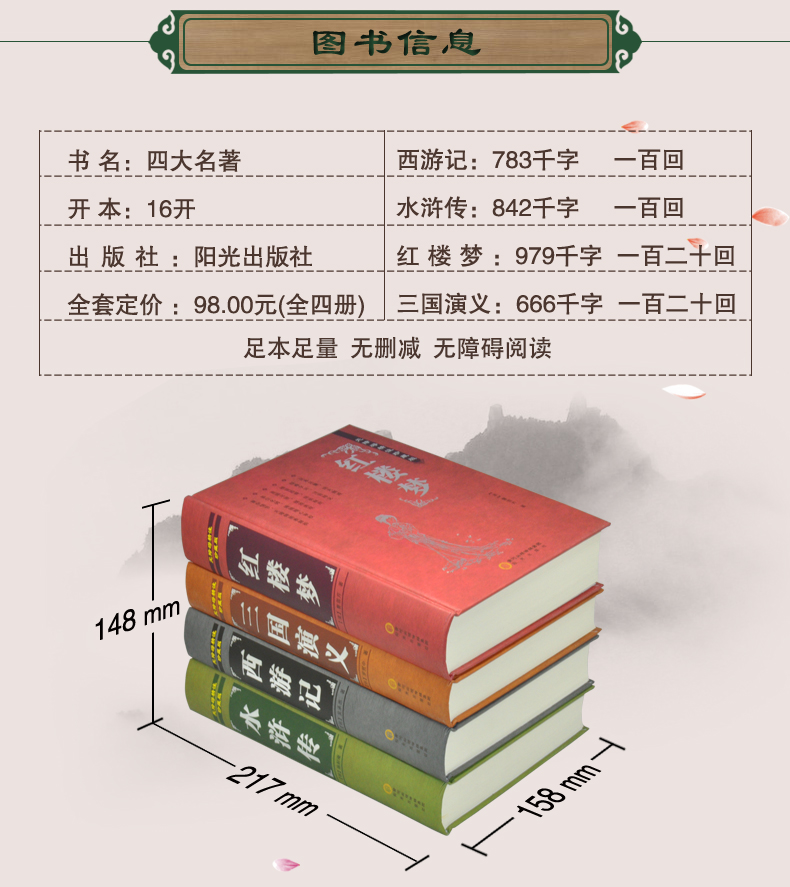 无障碍精注珍藏版四大名著全套原著正版4册精装 红楼梦三国演义水浒传西游记9-10-12-15岁中小学初中高中文学名著小说
