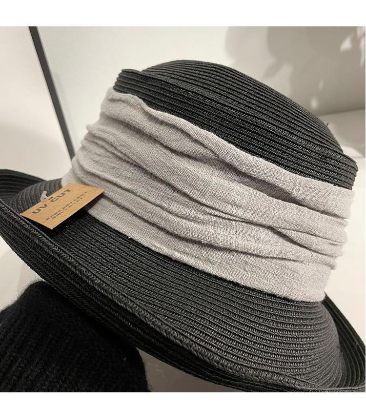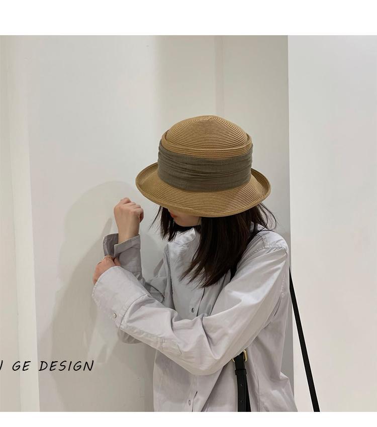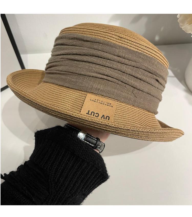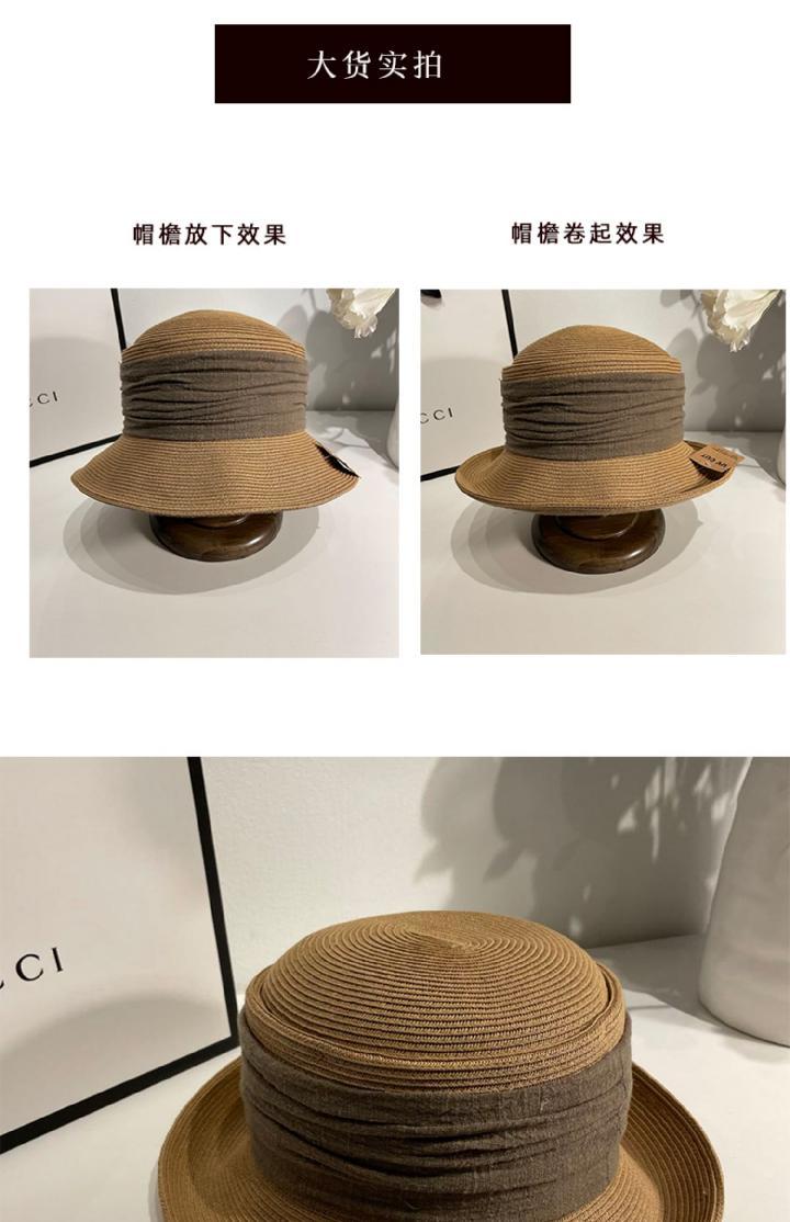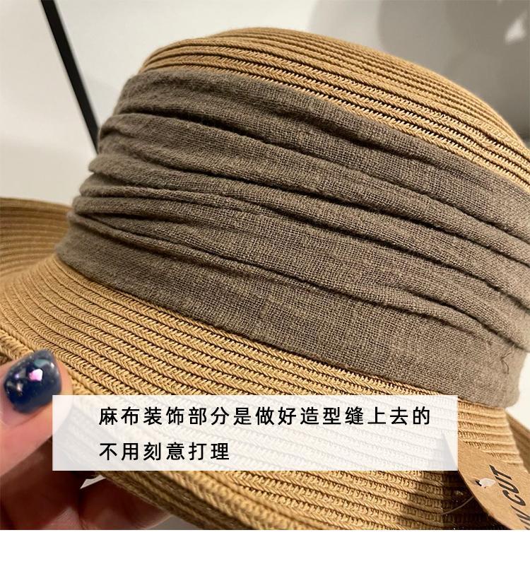 复古休闲手工草帽女夏季褶皱蝴蝶结遮阳帽