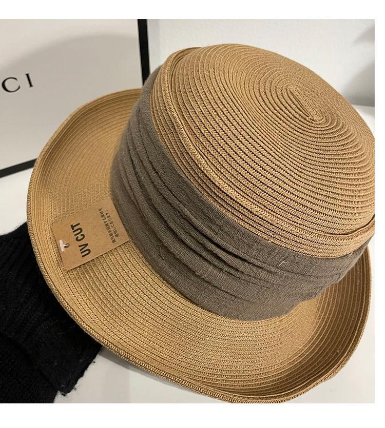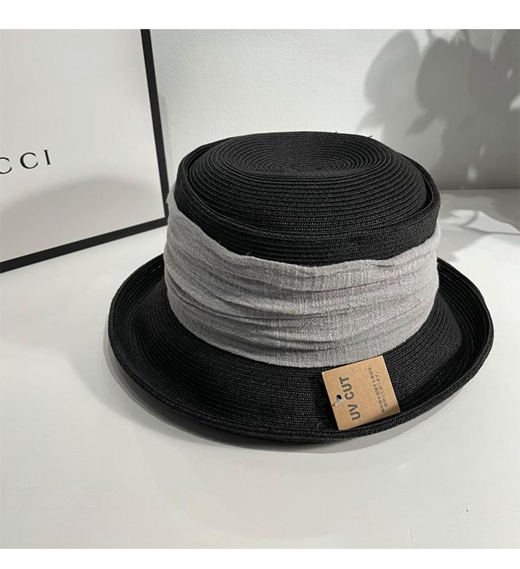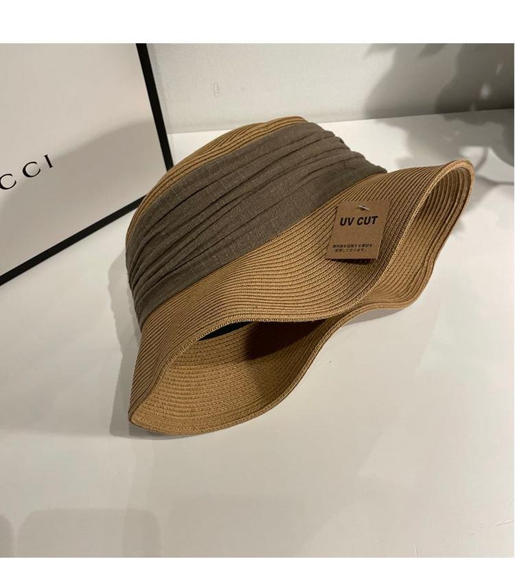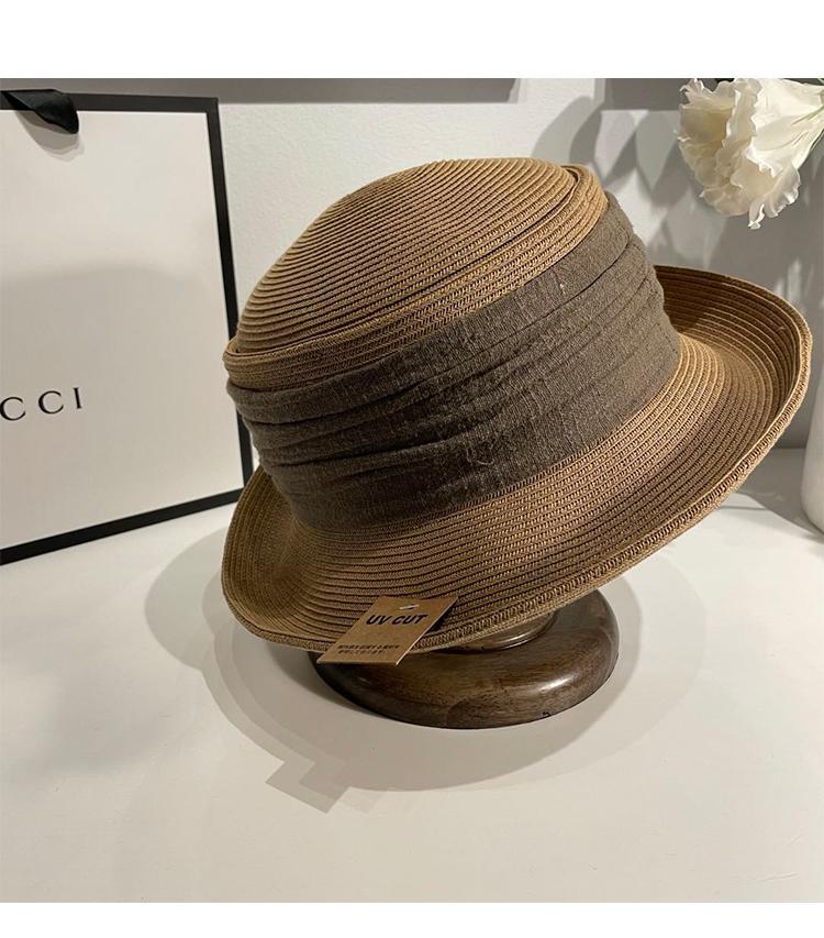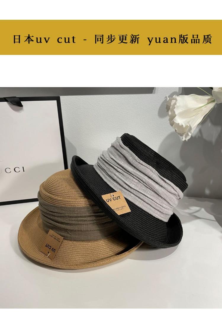 复古休闲手工草帽女夏季褶皱蝴蝶结遮阳帽