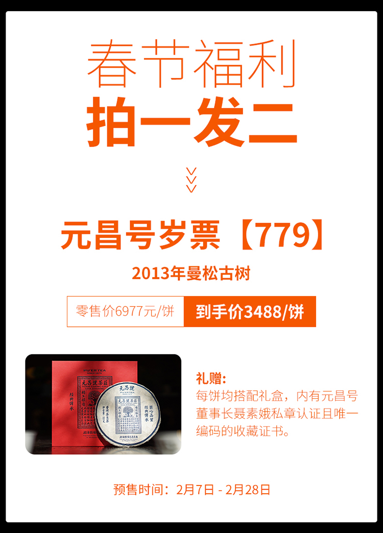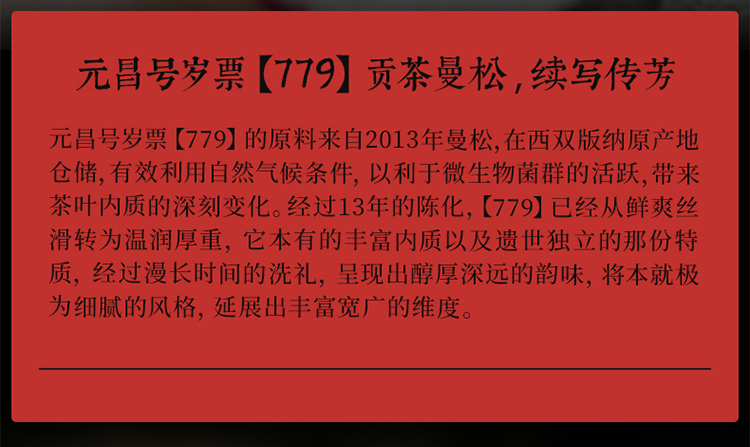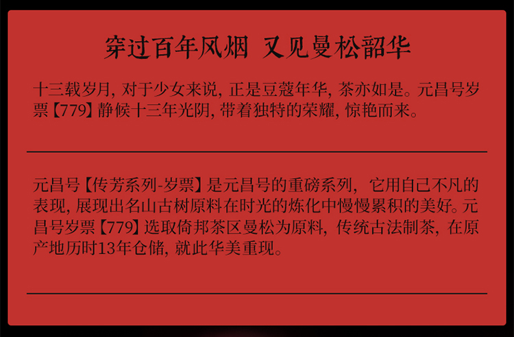 【元昌号】传芳系列岁票779典藏臻品十三年陈曼松357g生饼