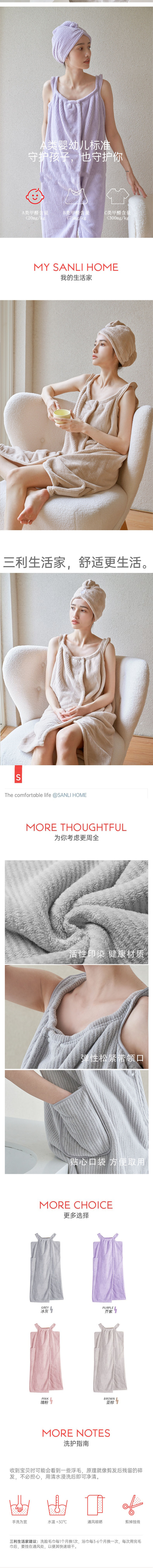 三利A类浴巾可穿可裹长款吸水速干不易掉毛浴裙女宿舍家用吊带浴袍