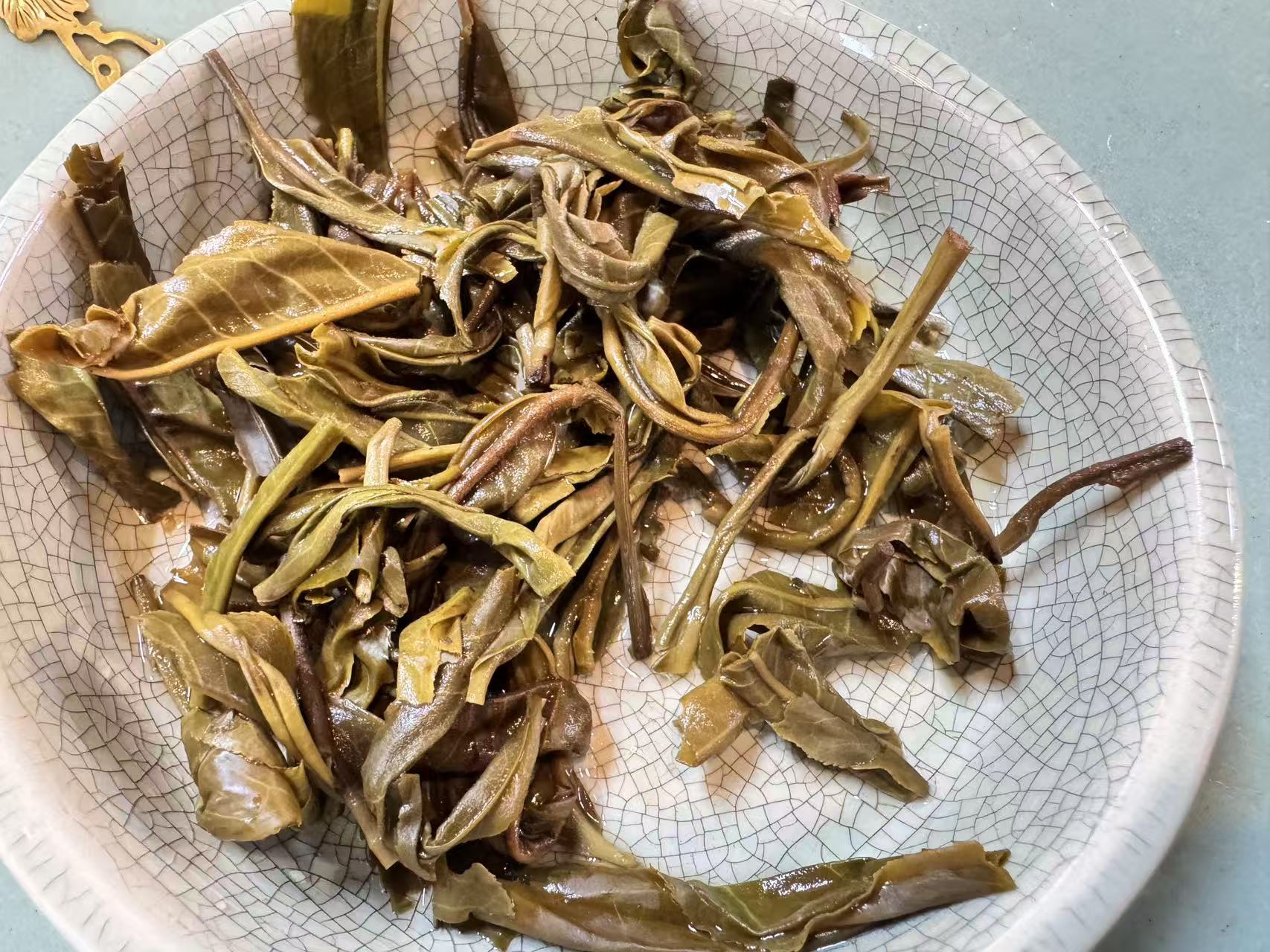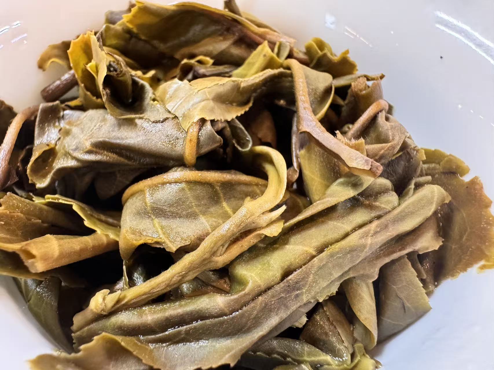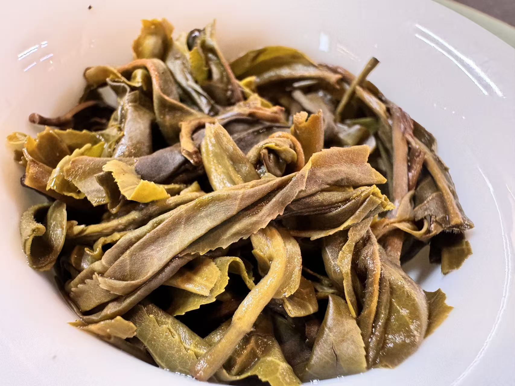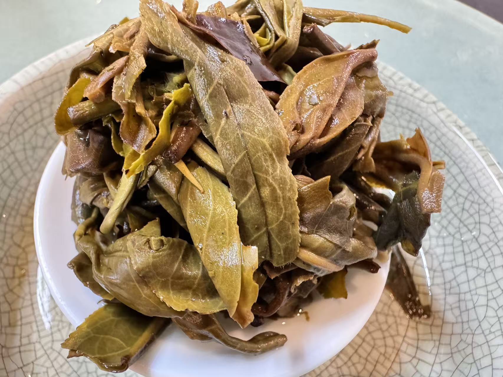 大家仔细观察上面的叶底,它的持嫩度秒杀很多上千的茶品,森林茶总是会有令人意想不到的特殊风味。
