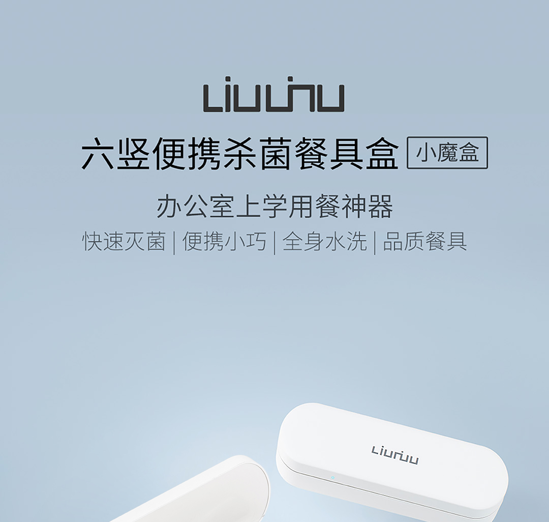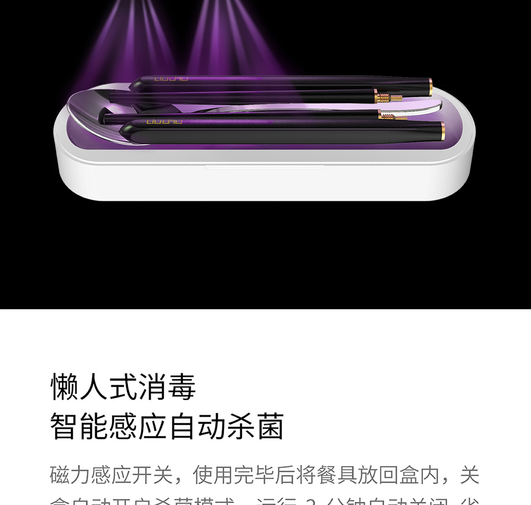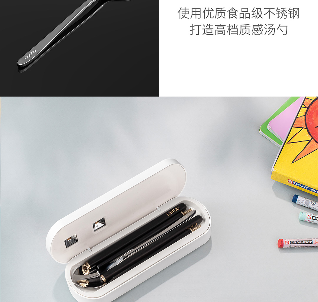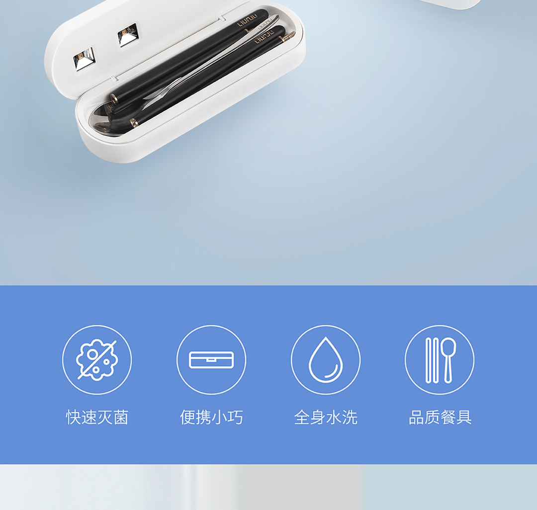 六竖 小MI 勺筷紫外线UV消毒收纳盒 筷子勺子便携餐具盒 套装 智能紫外线餐具盒