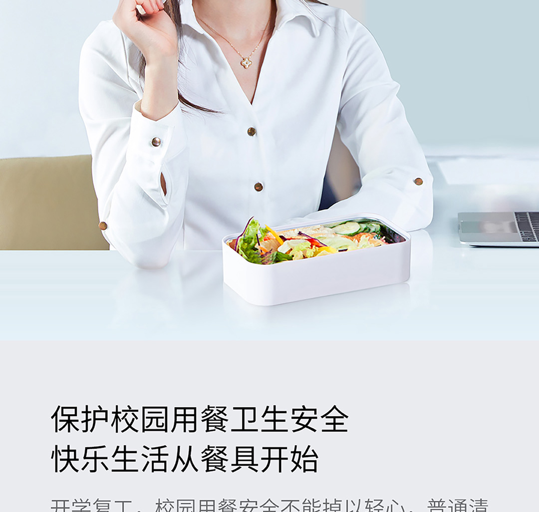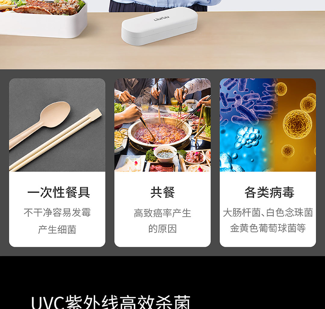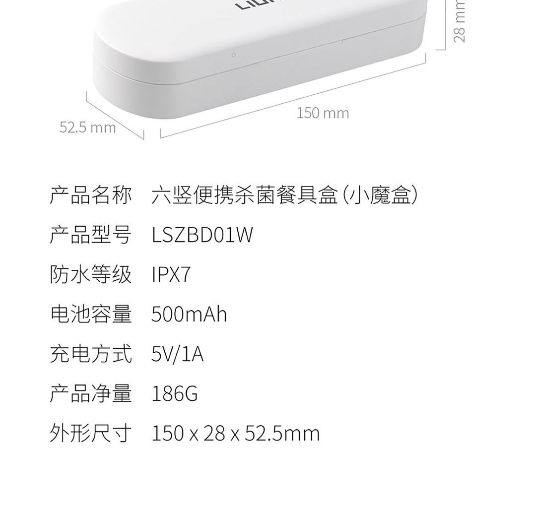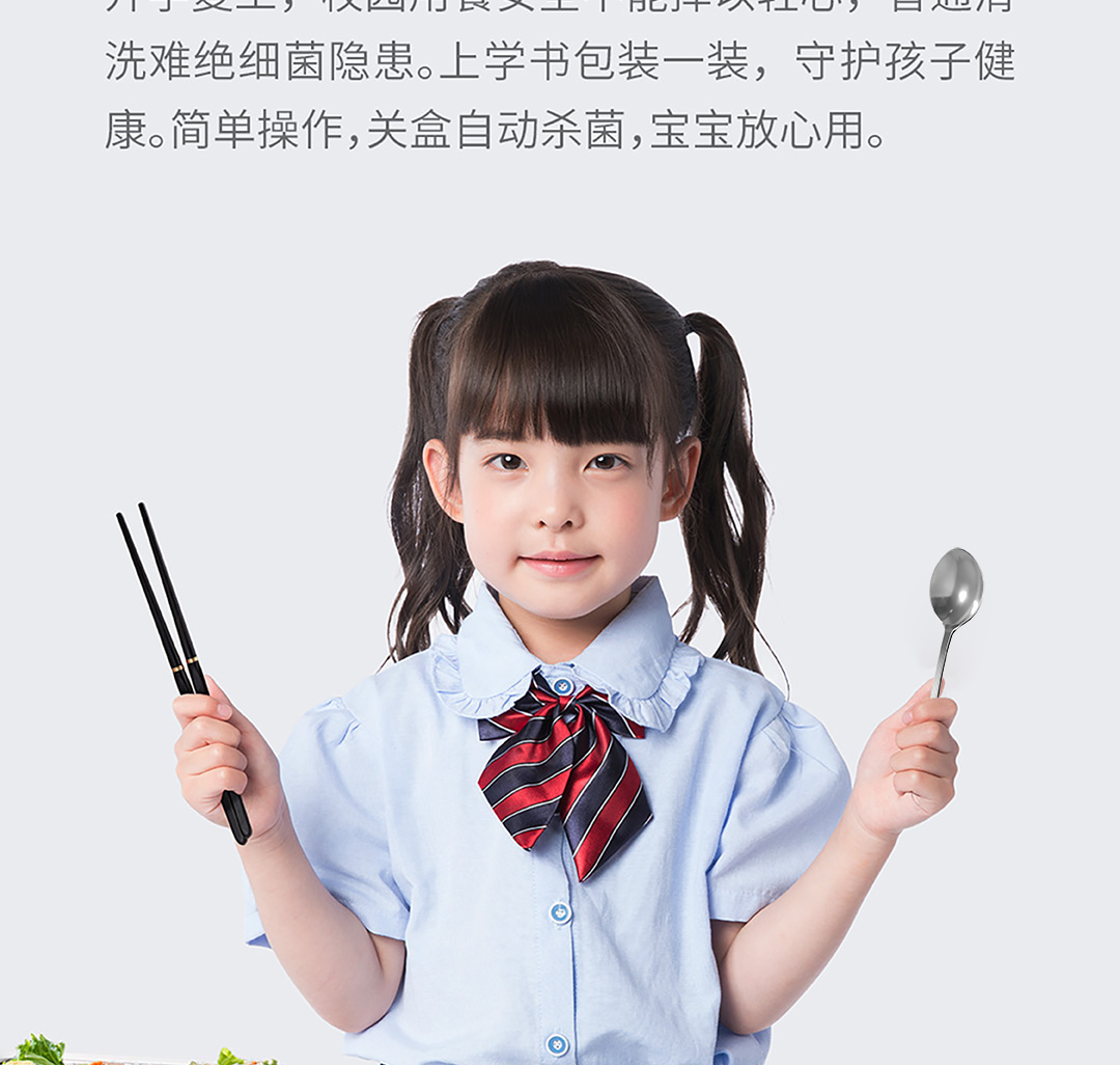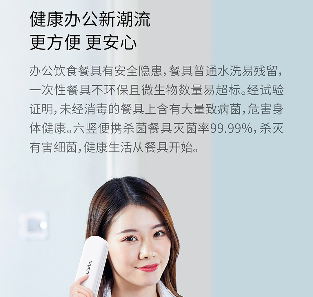 六竖 小MI 勺筷紫外线UV消毒收纳盒 筷子勺子便携餐具盒 套装 智能紫外线餐具盒