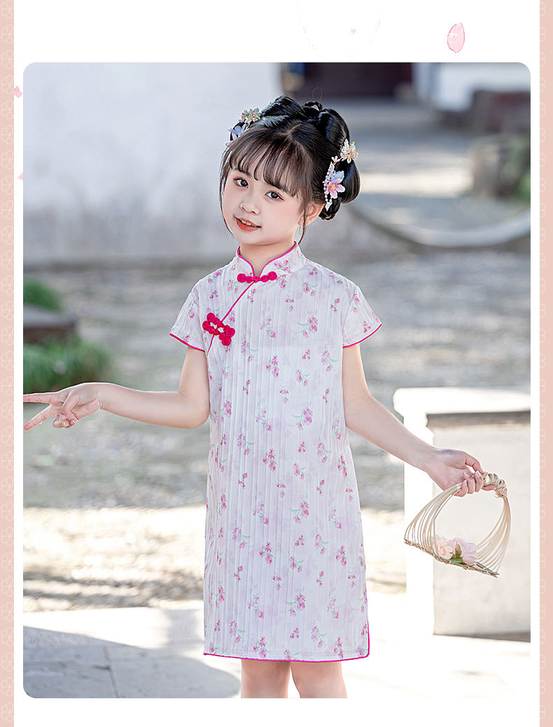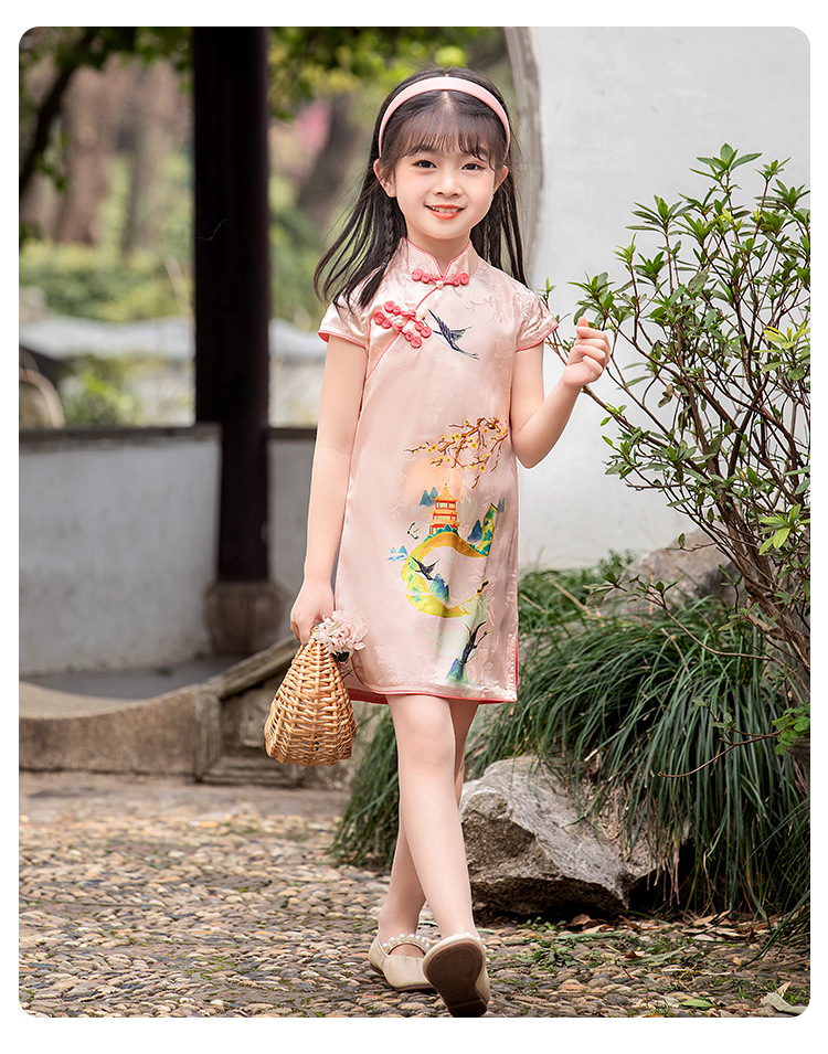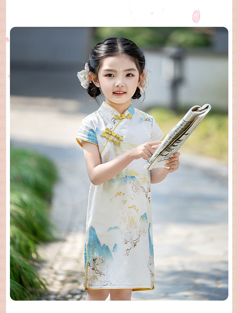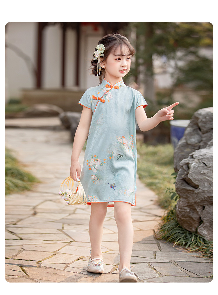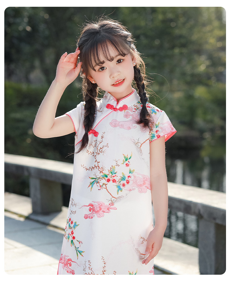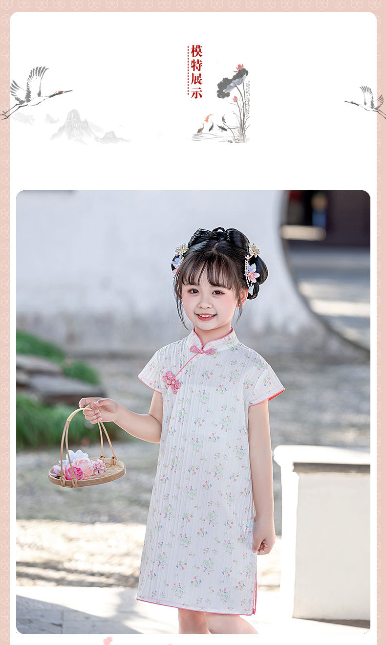 女童短袖旗袍裙24年夏季新款儿童中国风连衣裙复古宝宝汉服网红仙 _HLY