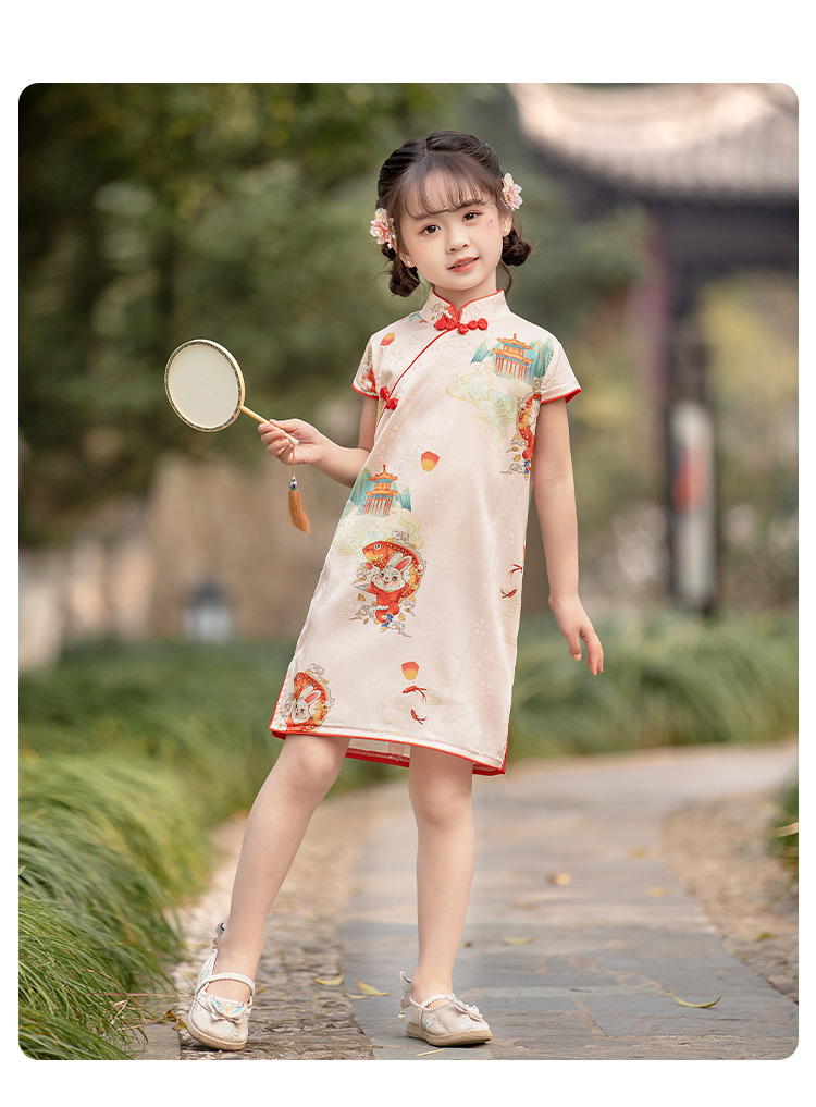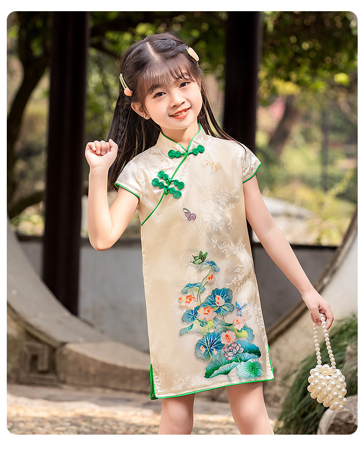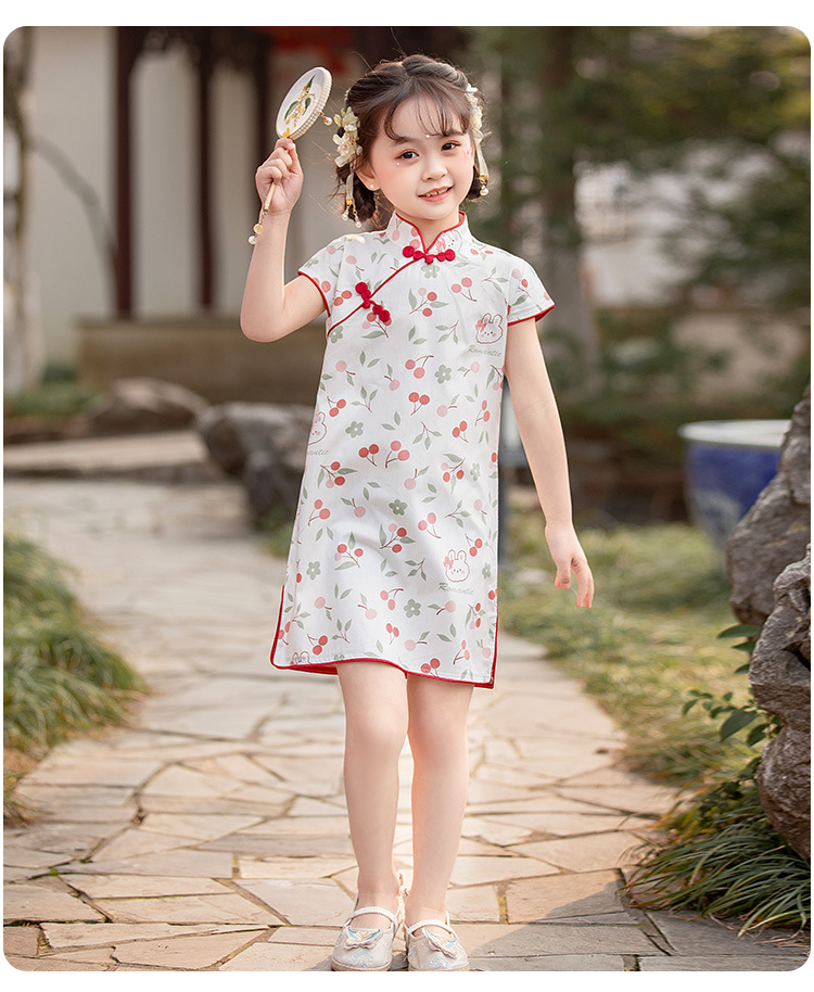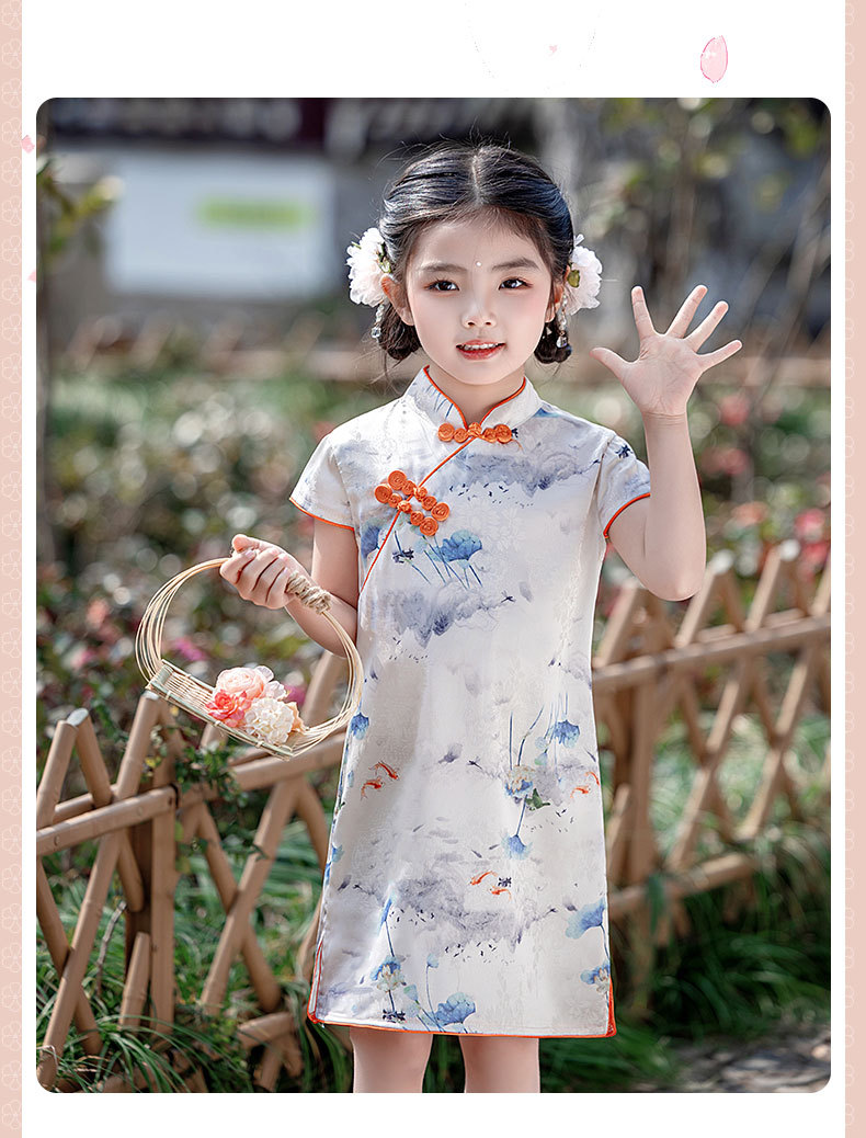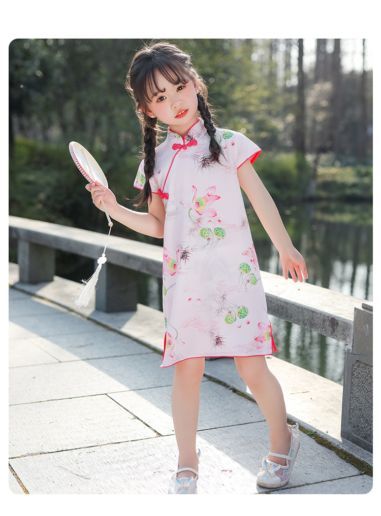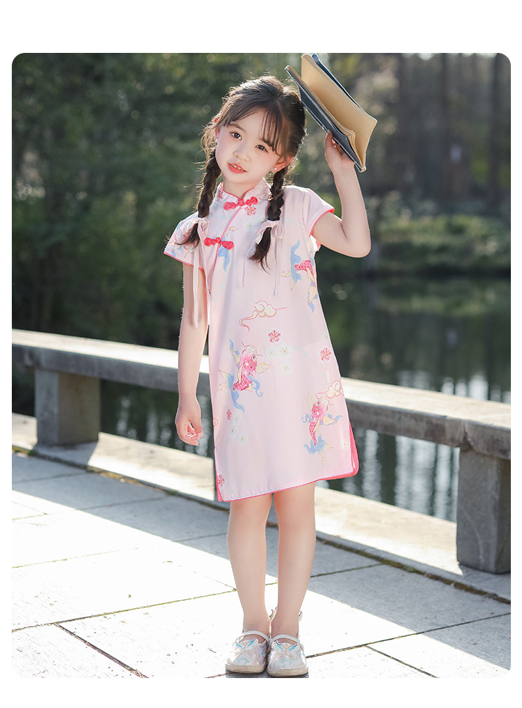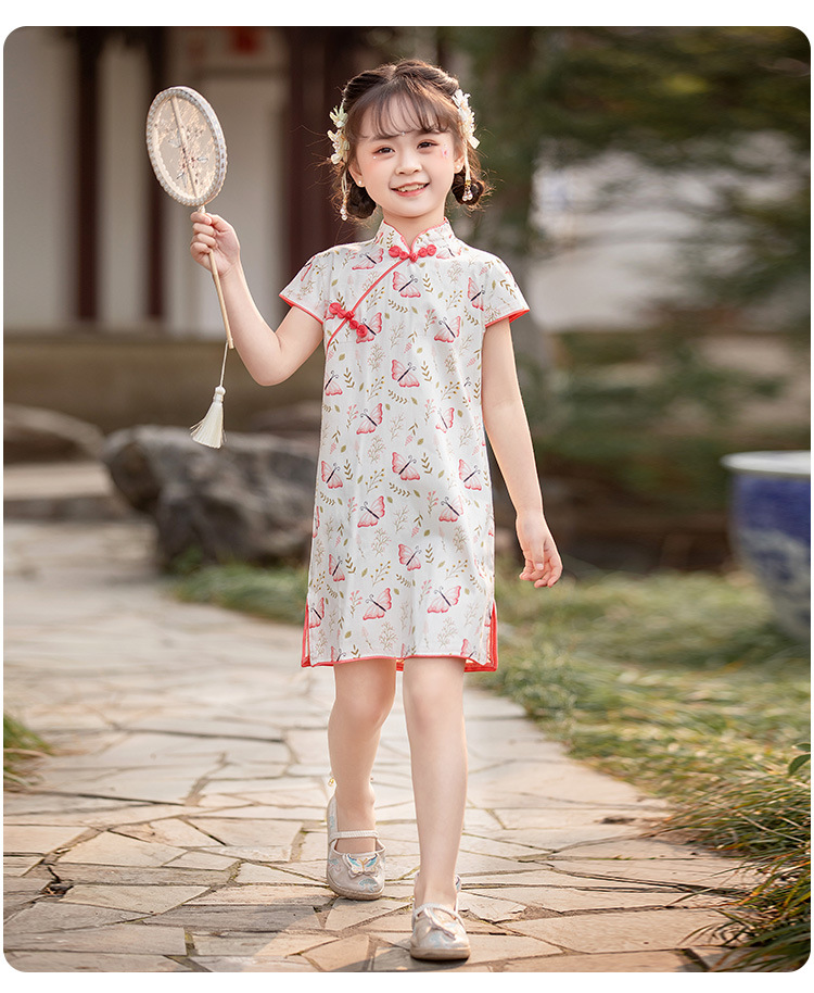 女童短袖旗袍裙24年夏季新款儿童中国风连衣裙复古宝宝汉服网红仙 _HLY