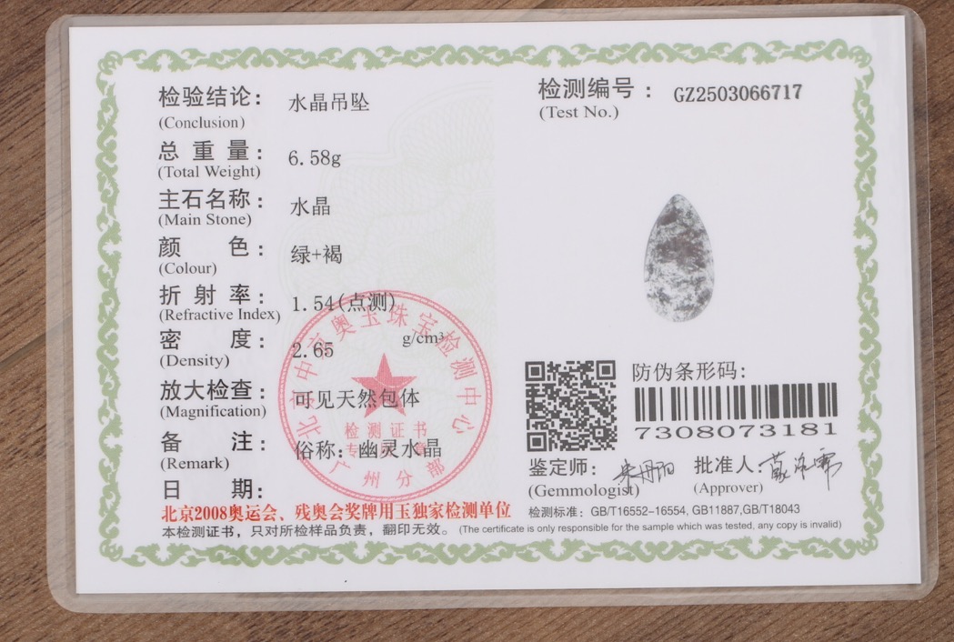 绿幽灵水晶吊坠 配精美挂绳