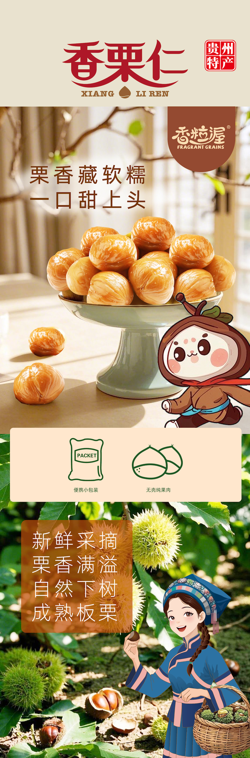 【深山甜栗 | 每单赠试吃装】望谟熟蒸板栗仁,产自地理标志产区,自然熟落、天生清甜,只用纯净水蒸制,不添加糖、香精、色素,独立充氮铝袋包装,踏春郊游必备零食!